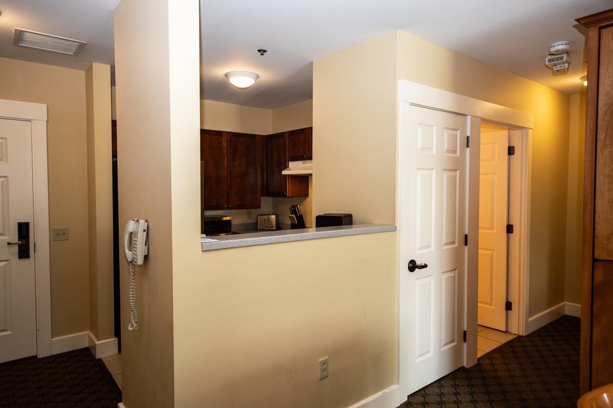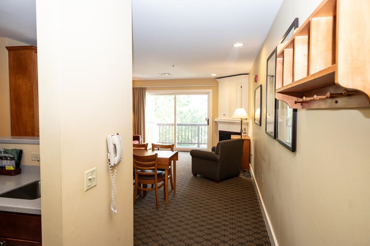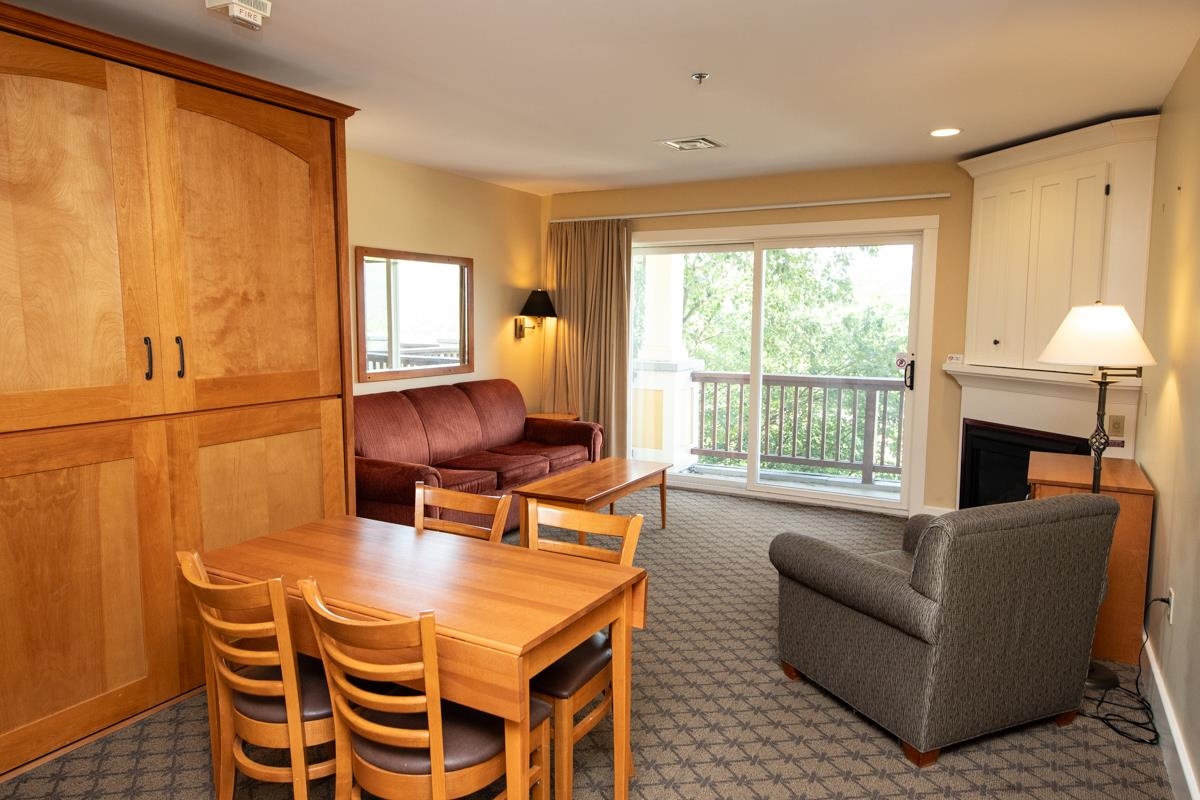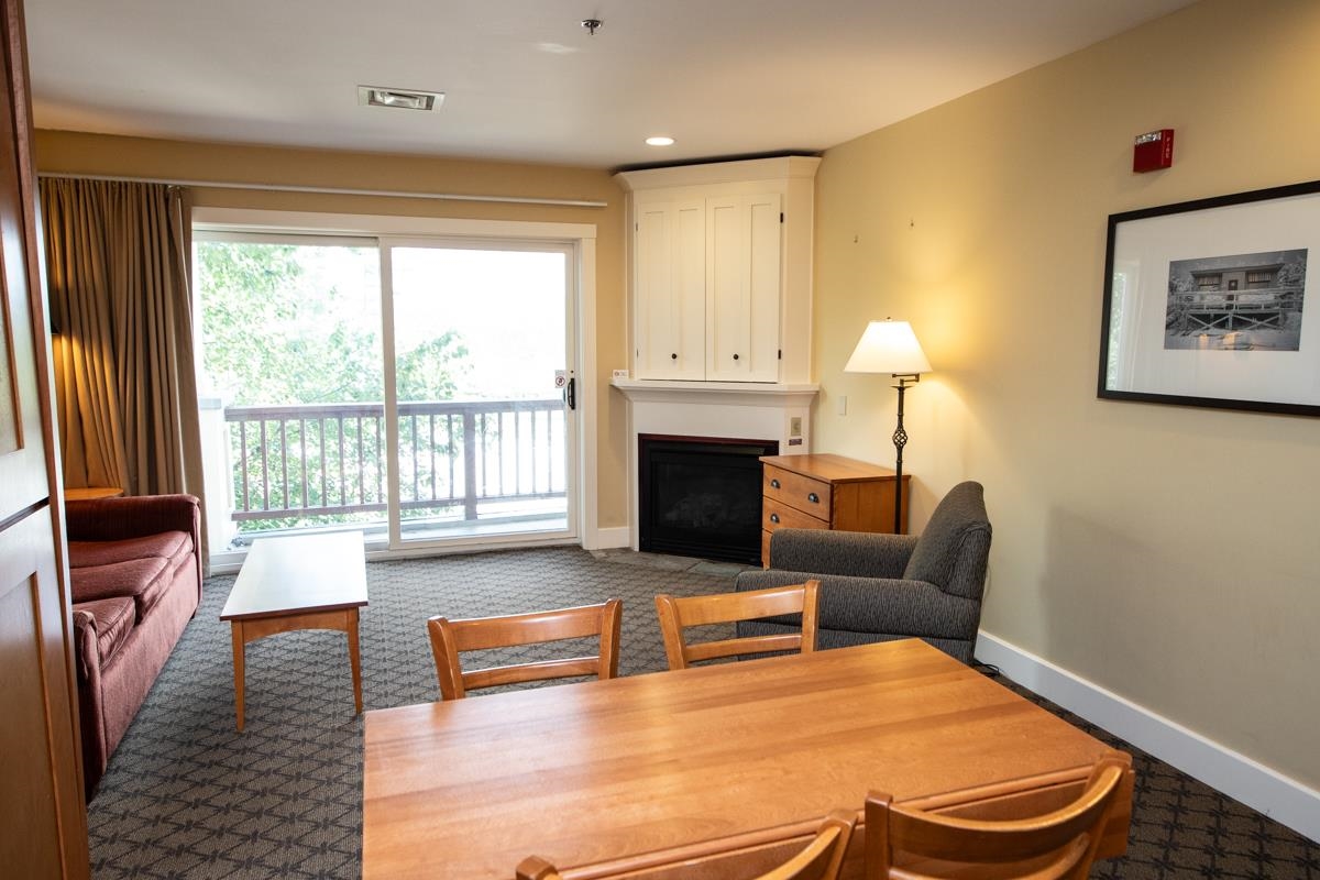 Jackson Gore Inn Unit 262 Quarter IV: Handicapped accessible one-bedroom residence at the heart of the renowned Jackson Gore Inn. This spacious unit comfortably sleeps six and is ideally located near the owners’ lounge and elevator for quick, convenient access to the lobby, front desk, and the popular Coleman Brook Tavern. Enjoy the comfort of slopeside living with easy access to dining, resort amenities, and year-round activities in the Jackson Gore. Okemo Mountain Resort offers true four-season enjoyment with skiing, adventure activities, pools, fitness facilities, and village conveniences just steps away. Unit K- HCP Features: One bedroom, sleeps six, King bed, Queen sleep sofa, Queen wall bed, full kitchen, 1.75 Baths, jetted bath tub, fireplace, entertainment center.