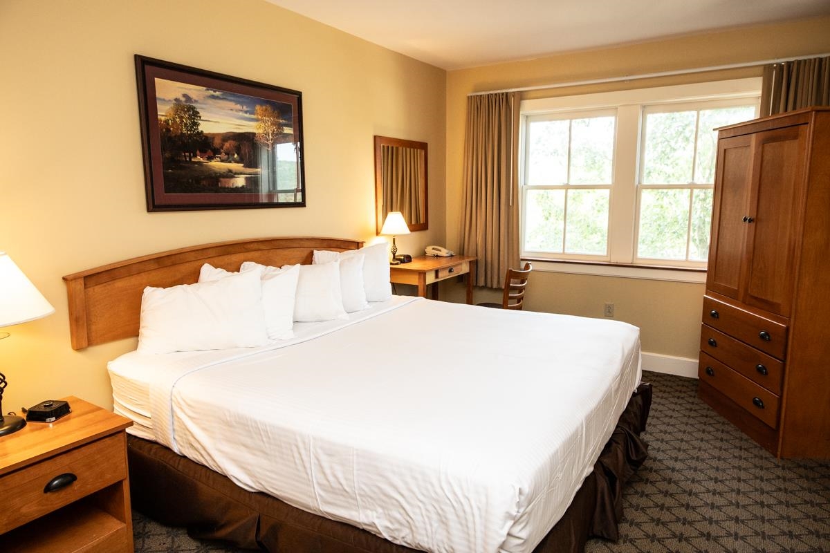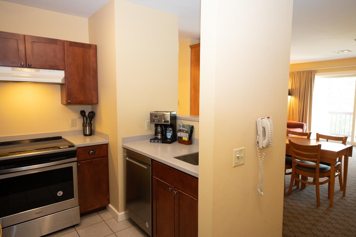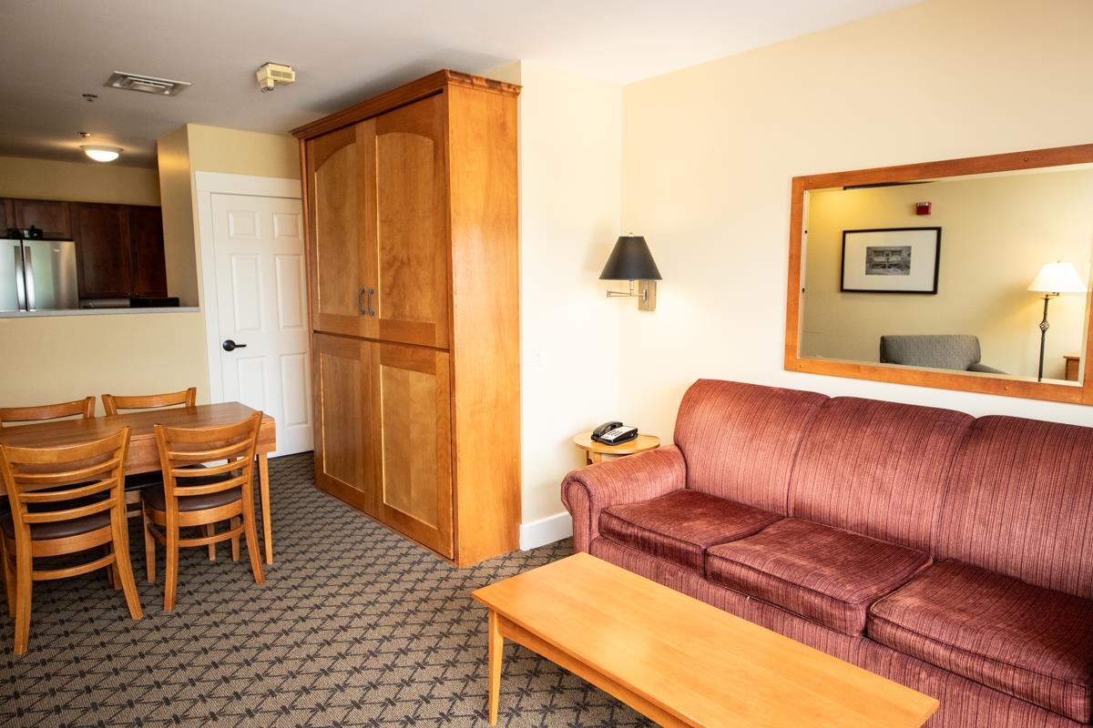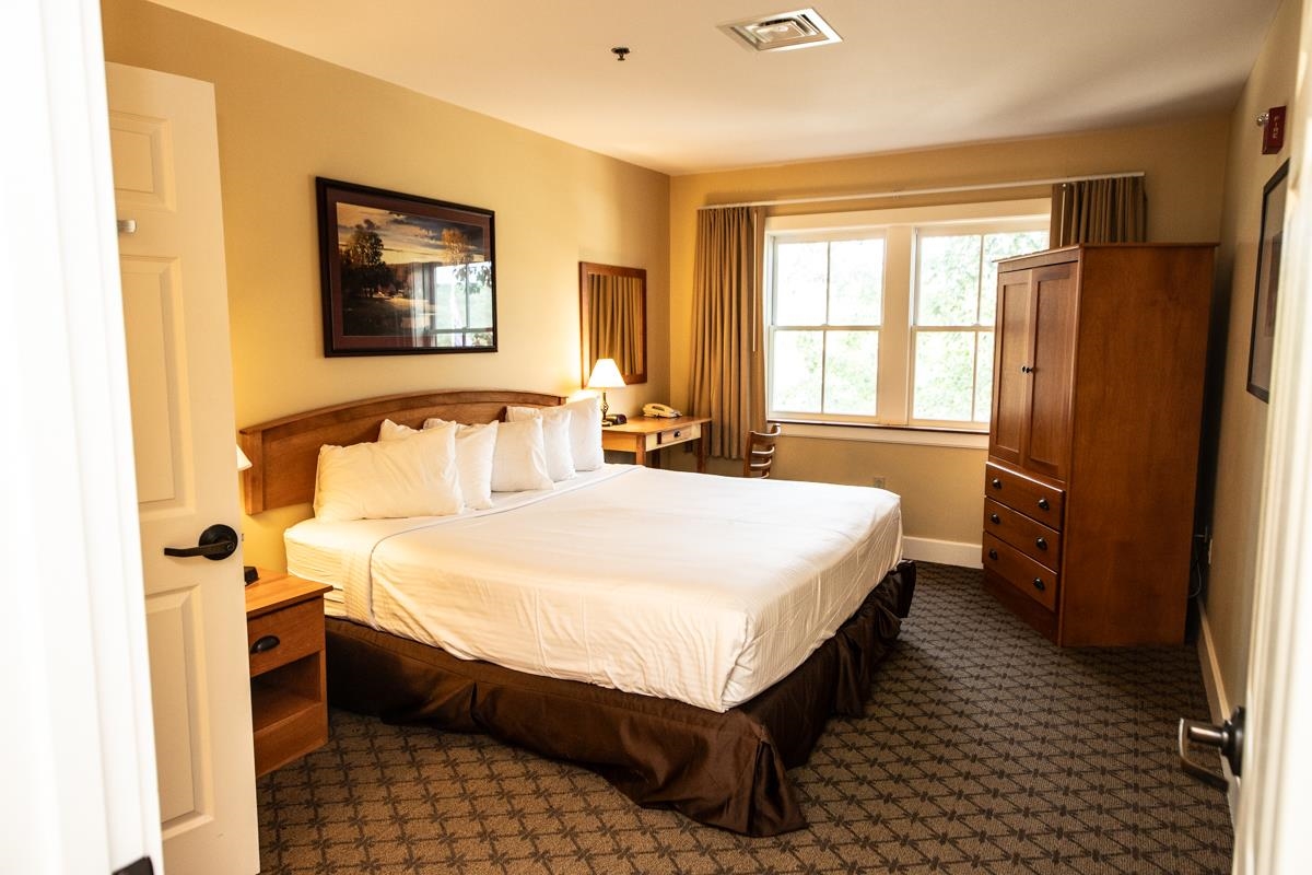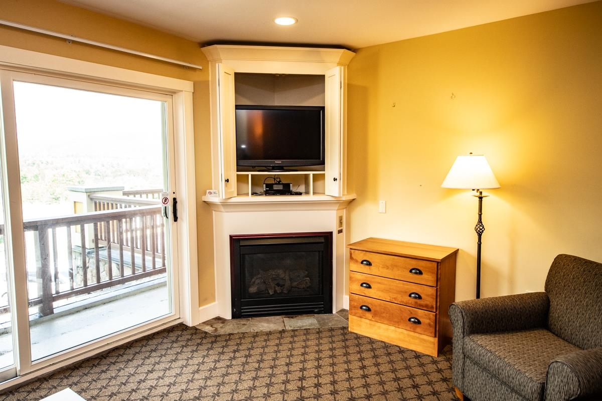 Jackson Gore Inn Unit 262 Quarter IV: Handicapped accessible one-bedroom residence at the heart of the renowned Jackson Gore Inn. This spacious unit comfortably sleeps six and is ideally located near the owners’ lounge and elevator for quick, convenient access to the lobby, front desk, and the popular Coleman Brook Tavern. Enjoy the comfort of slopeside living with easy access to dining, resort amenities, and year-round activities in the Jackson Gore. Okemo Mountain Resort offers true four-season enjoyment with skiing, adventure activities, pools, fitness facilities, and village conveniences just steps away. Unit K- HCP Features: One bedroom, sleeps six, King bed, Queen sleep sofa, Queen wall bed, full kitchen, 1.75 Baths, jetted bath tub, fireplace, entertainment center.