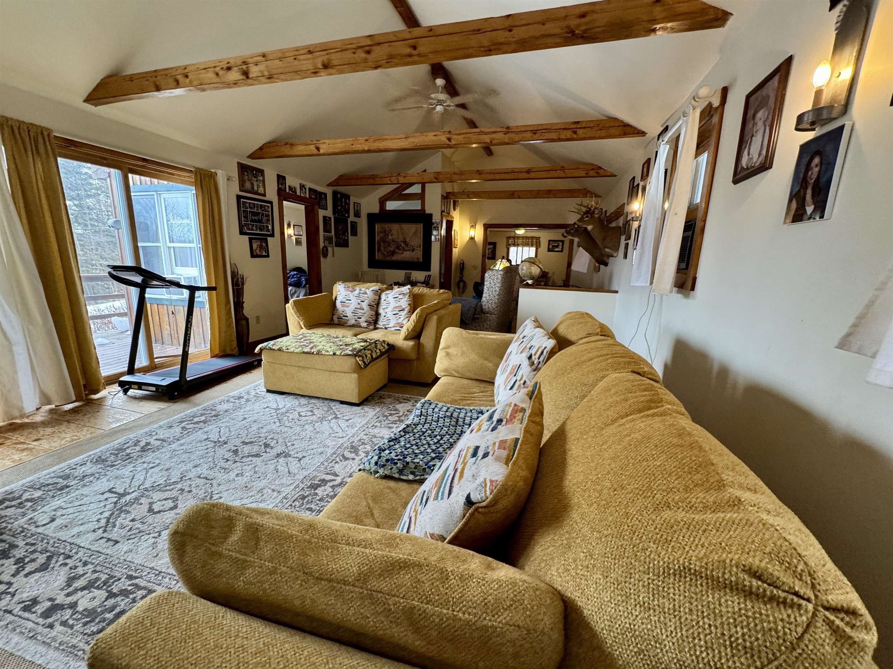 Tucked back from a privately maintained dead-end road on 2.1 acres of rolling, secluded land, this split level log cabin style home is plug and play ready for a new occupant. The large circular driveway welcomes visitors and residents to the property, allowing for ample parking space for work vehicles or recreational toys. The screened-in porch provides access to the kitchen of the home as well as an open dining area, which continues into a large living space with vaulted ceilings. The room adjacent the access to the large deck could be used as a bedroom or as an office, and the access to the eastern-facing deck from the living area provides incredible natural light. The upper level of the home has a landing space and a bedroom adjacent. The lower level of the home provides additional finished living space with a walk-in closet and doors that exit below the deck, as well as partial unfinished spaces that walk out to the yard at level with sizable doors for movement of equipment/supplies/toys. This home has been lovingly cared for and provides easy access to the benefits of living full time or recreating within the region. Access the ATV or snowmobile trails from any of the local tie-ins, bring water recreation to Halls Lake, the Groton State Forest lakes, or the Connecticut River. Balance work, life, and play, all within the same property and while gazing east into New Hampshire. Cross the state border for access to an entire second state's worth of opportunity. Newbury, Vermont is known as a quintessential town, come and see this natural beauty.