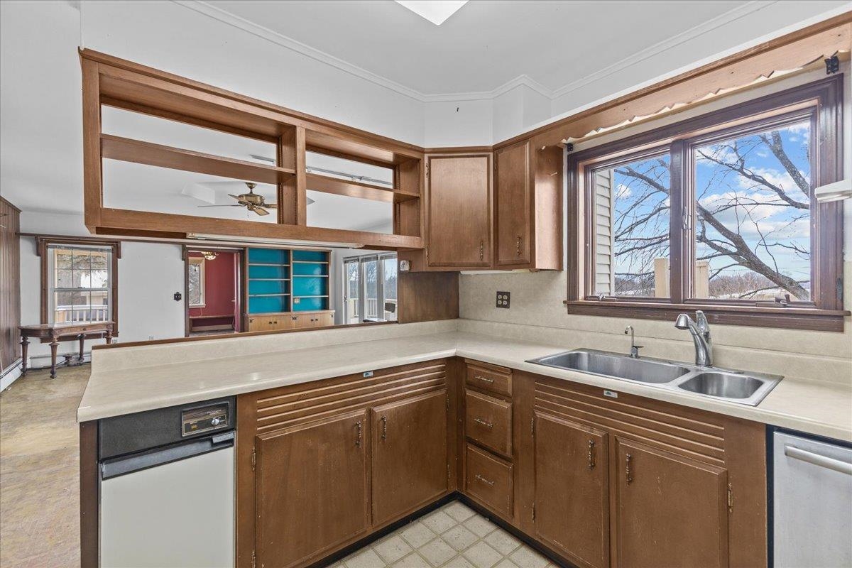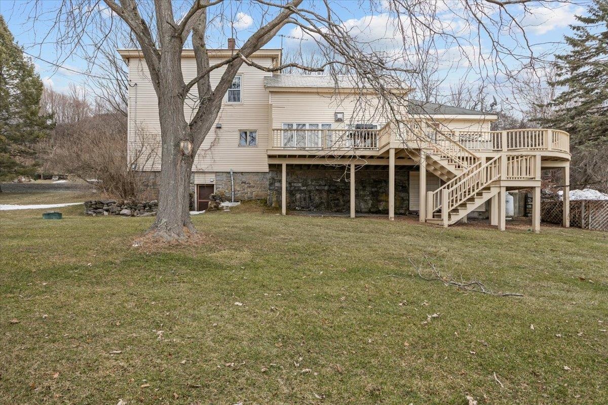 Rare opportunity with incredible garage space and mountain views. Restore the charm and unlock the potential of this historic Vermont farmhouse. Built in 1860 and set on 1.95 acres with beautiful mountain views, this property offers a rare opportunity for the right buyer to bring a classic home back to life while enjoying an exceptional country setting. The home offers three bedrooms, two full bathrooms, and first-floor laundry, along with timeless farmhouse character waiting to be refreshed. A covered front porch welcomes you in, while the durable slate roof speaks to the quality and craftsmanship of the era. A rear deck overlooking the yard provides the perfect place to relax and take in the surrounding mountain views and peaceful countryside. For those needing extra space, the property includes two detached garages. The first is a two-car garage built in the 1970s, while the second is a larger two-level garage built in the 1990s with room for multiple vehicles. The larger structure offers radiant heat on both levels, water service, and a finished area above that can serve as a workshop, hobby space, storage area, or additional workspace. With nearly two acres, scenic views, and significant outbuilding space, this property offers tremendous potential for someone ready to invest a little vision and effort to restore its original beauty. A rare opportunity to create something special in a quiet Addison country setting.