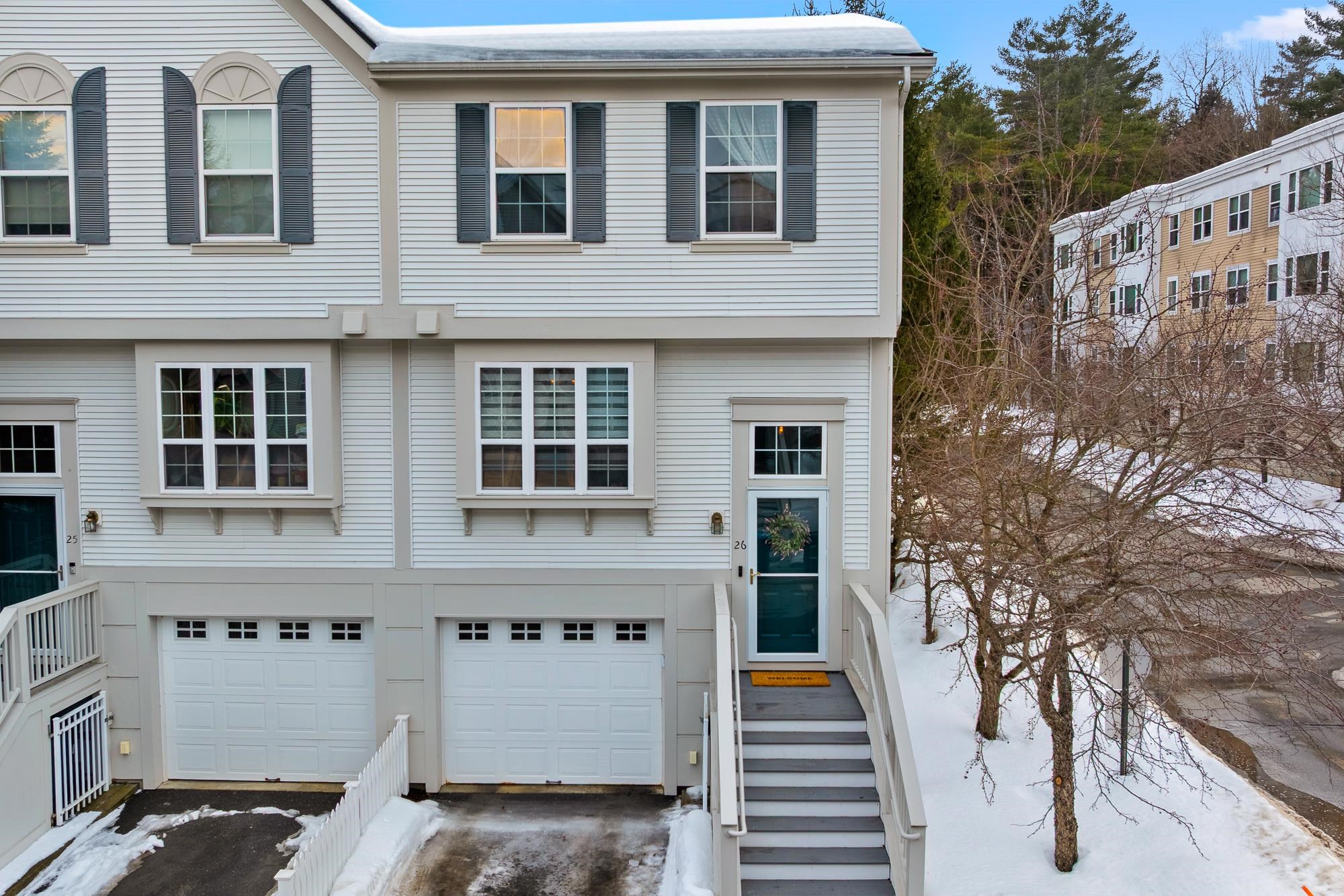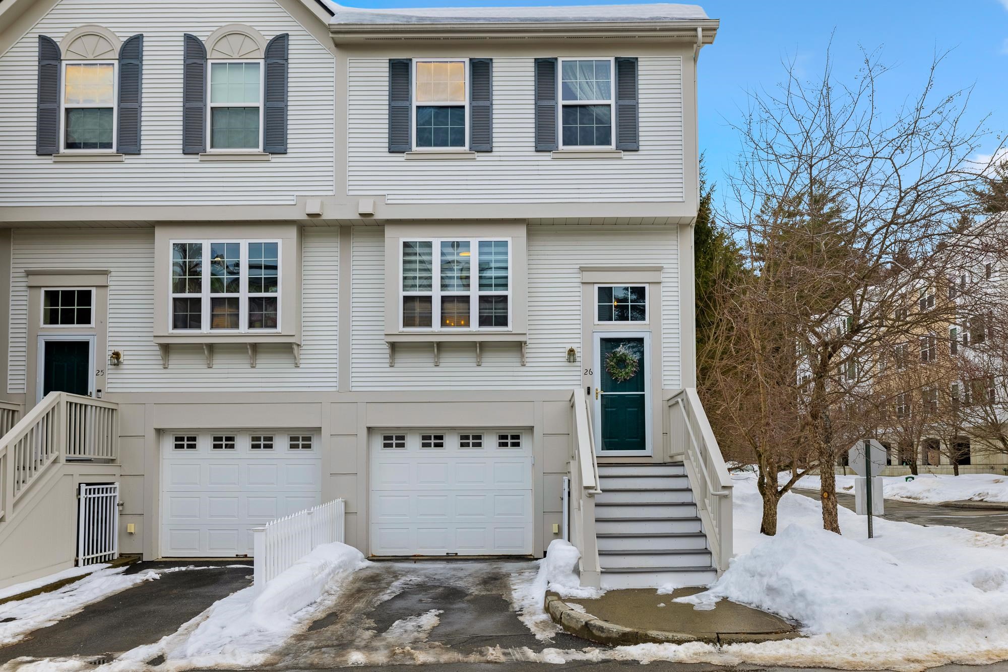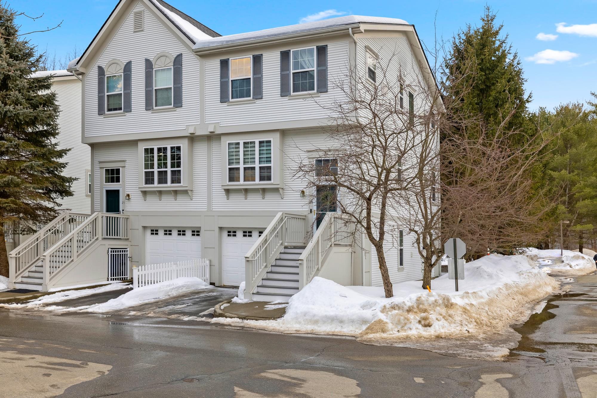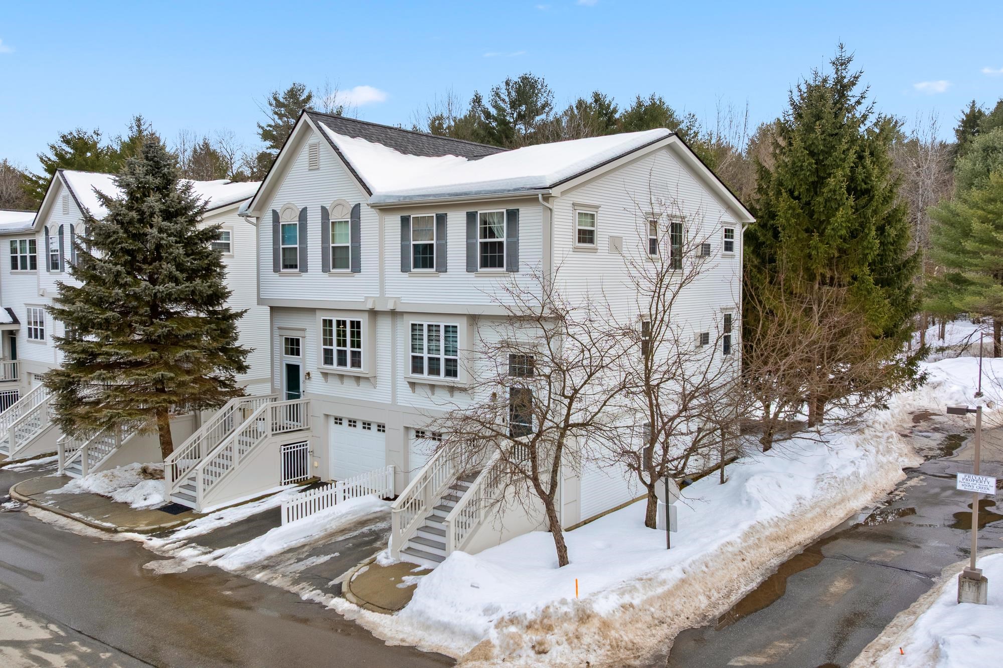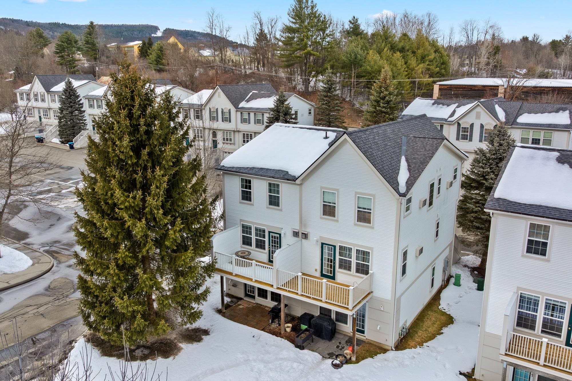 Bright and sunny, this beautifully updated Stony Brook condominium offers effortless living in a prime location. The open floor plan is enhanced by gleaming hardwood floors, new granite countertops, and a cozy gas fireplace that anchors the inviting living space. Step out onto the private deck to enjoy peaceful views and fresh air. Upstairs, two spacious ensuite bedrooms each feature their own bath, providing comfort and privacy. The fully finished walkout basement opens to a lovely patio and green space—perfect for recreation, a home office, 3rd bedroom, or additional living space. An attached garage adds everyday convenience, with easy access to walking and biking trails and a seamless commute to Dartmouth College and Hospital.