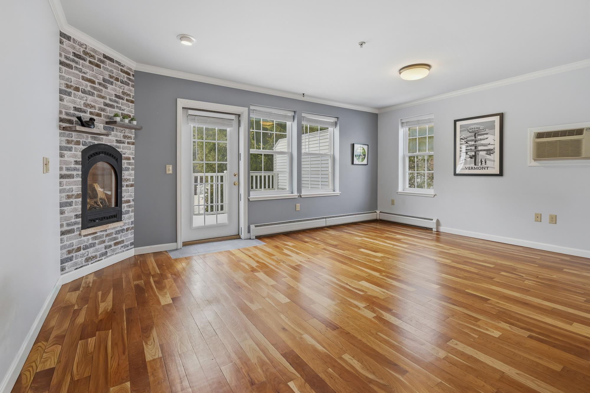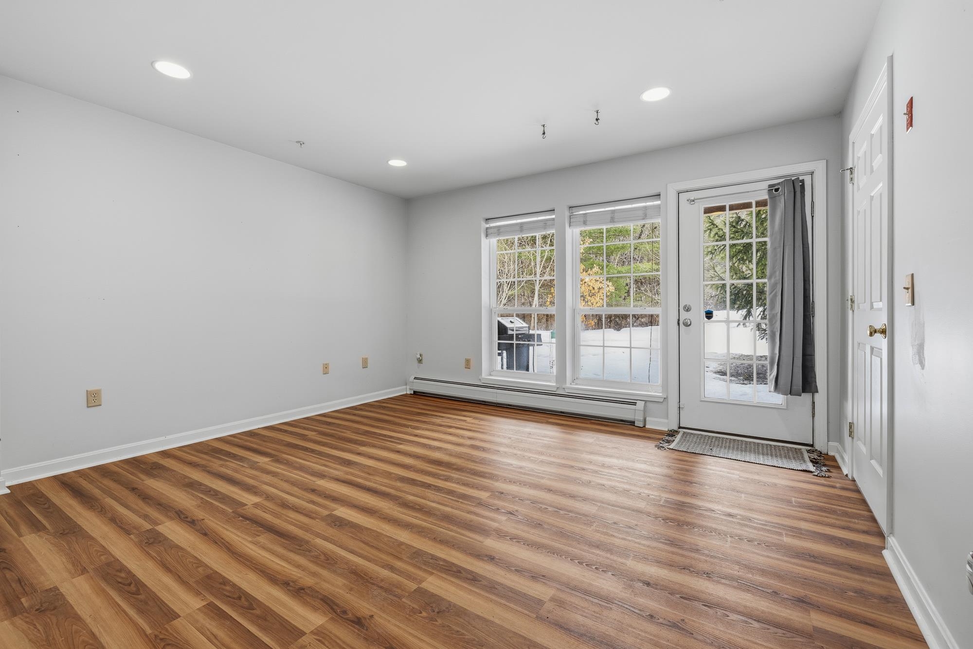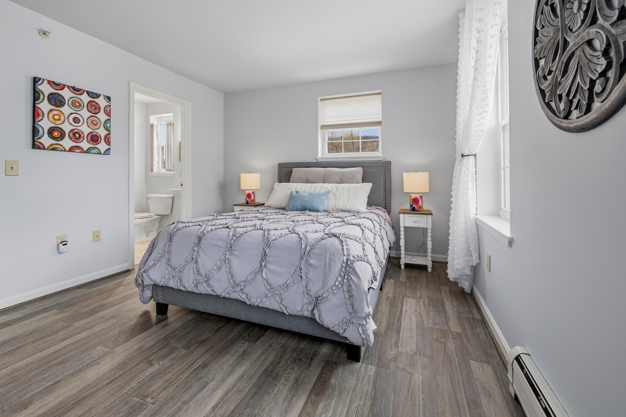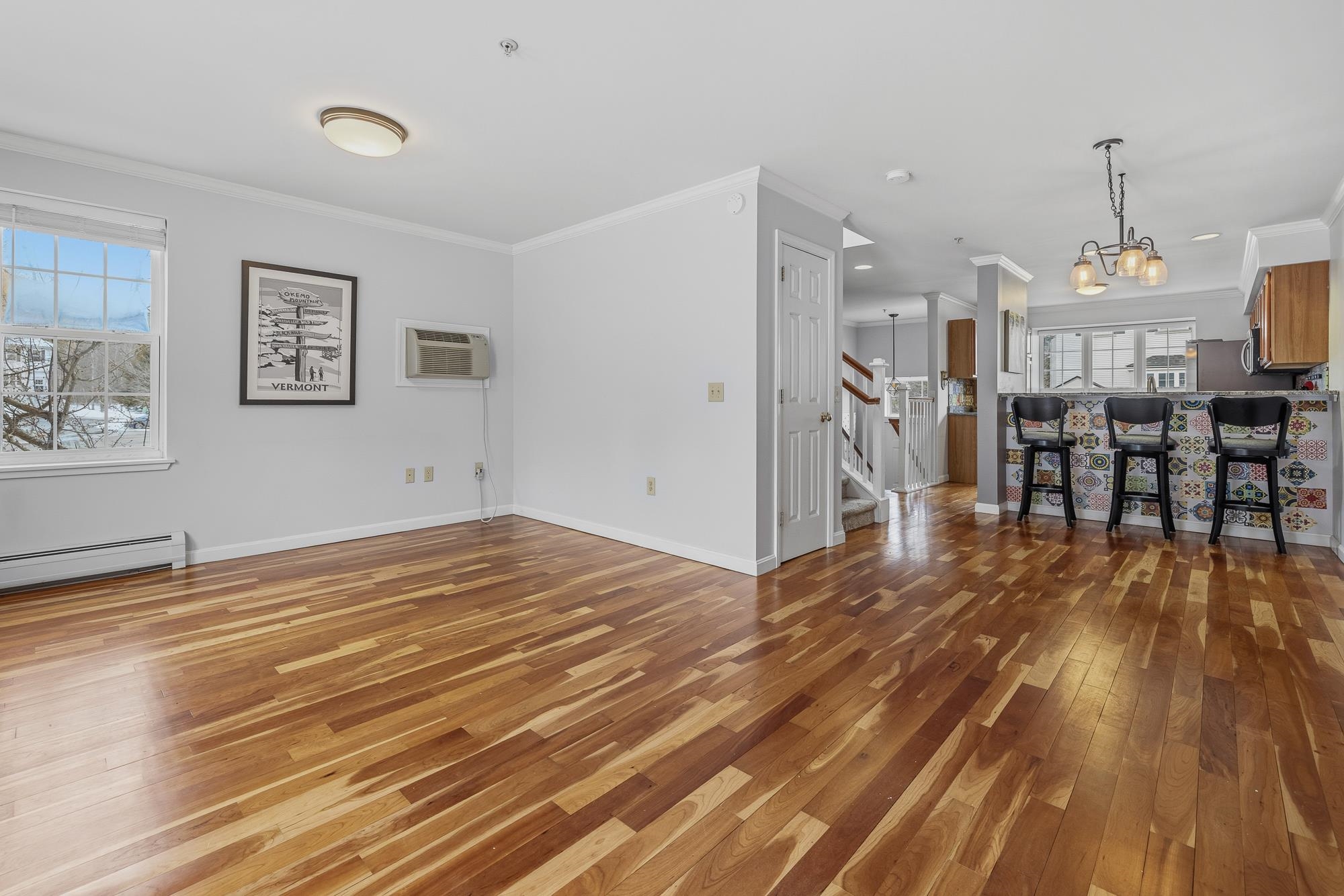 Bright and sunny, this beautifully updated Stony Brook condominium offers effortless living in a prime location. The open floor plan is enhanced by gleaming hardwood floors, new granite countertops, and a cozy gas fireplace that anchors the inviting living space. Step out onto the private deck to enjoy peaceful views and fresh air. Upstairs, two spacious ensuite bedrooms each feature their own bath, providing comfort and privacy. The fully finished walkout basement opens to a lovely patio and green space—perfect for recreation, a home office, 3rd bedroom, or additional living space. An attached garage adds everyday convenience, with easy access to walking and biking trails and a seamless commute to Dartmouth College and Hospital.