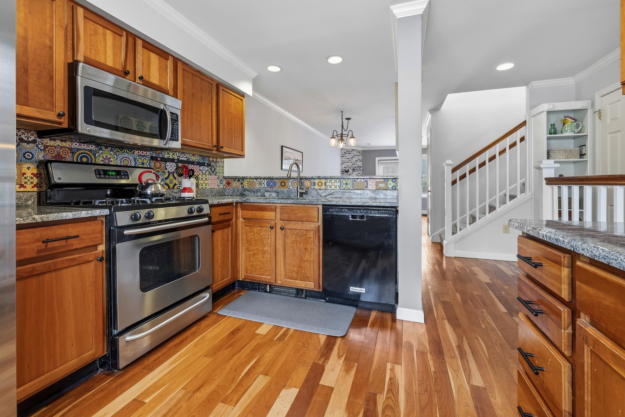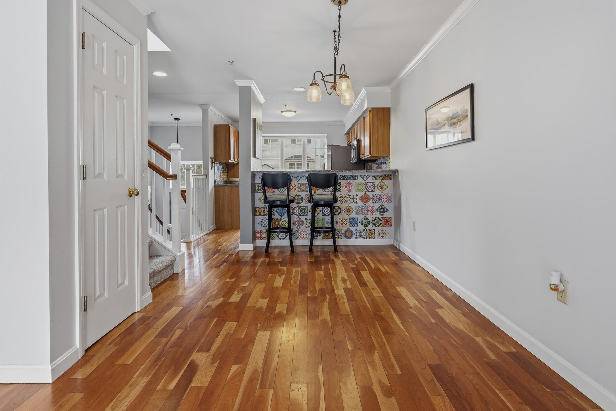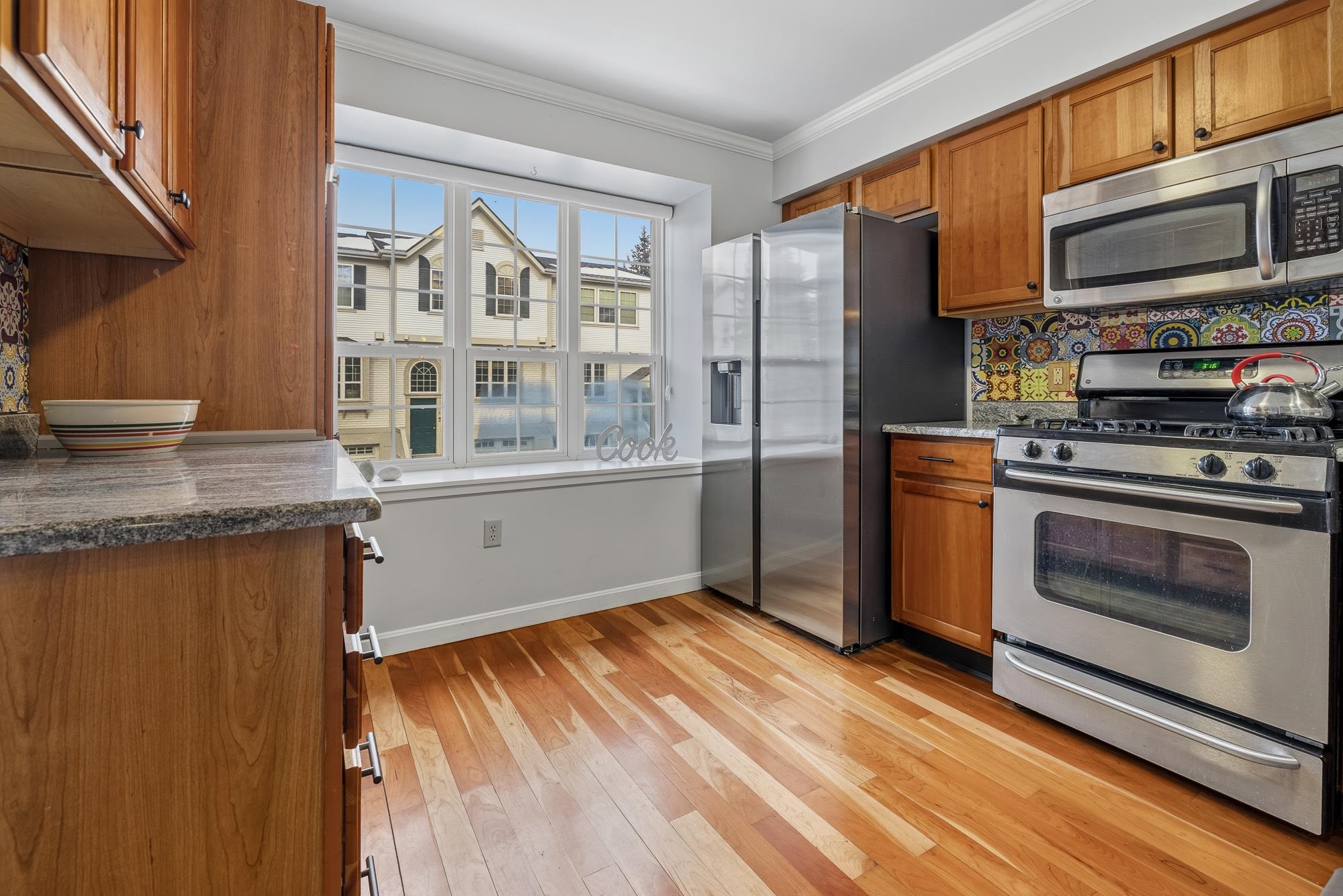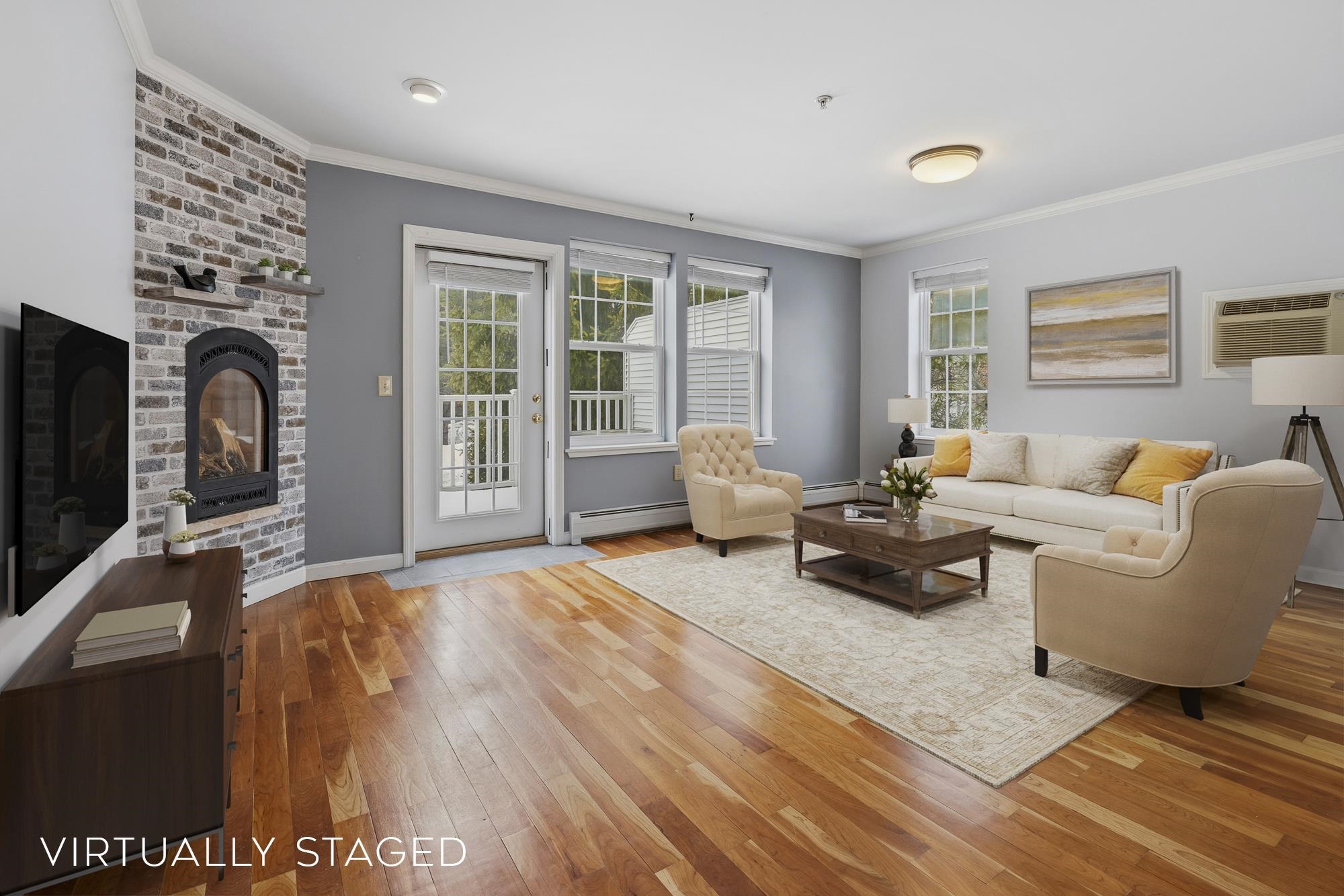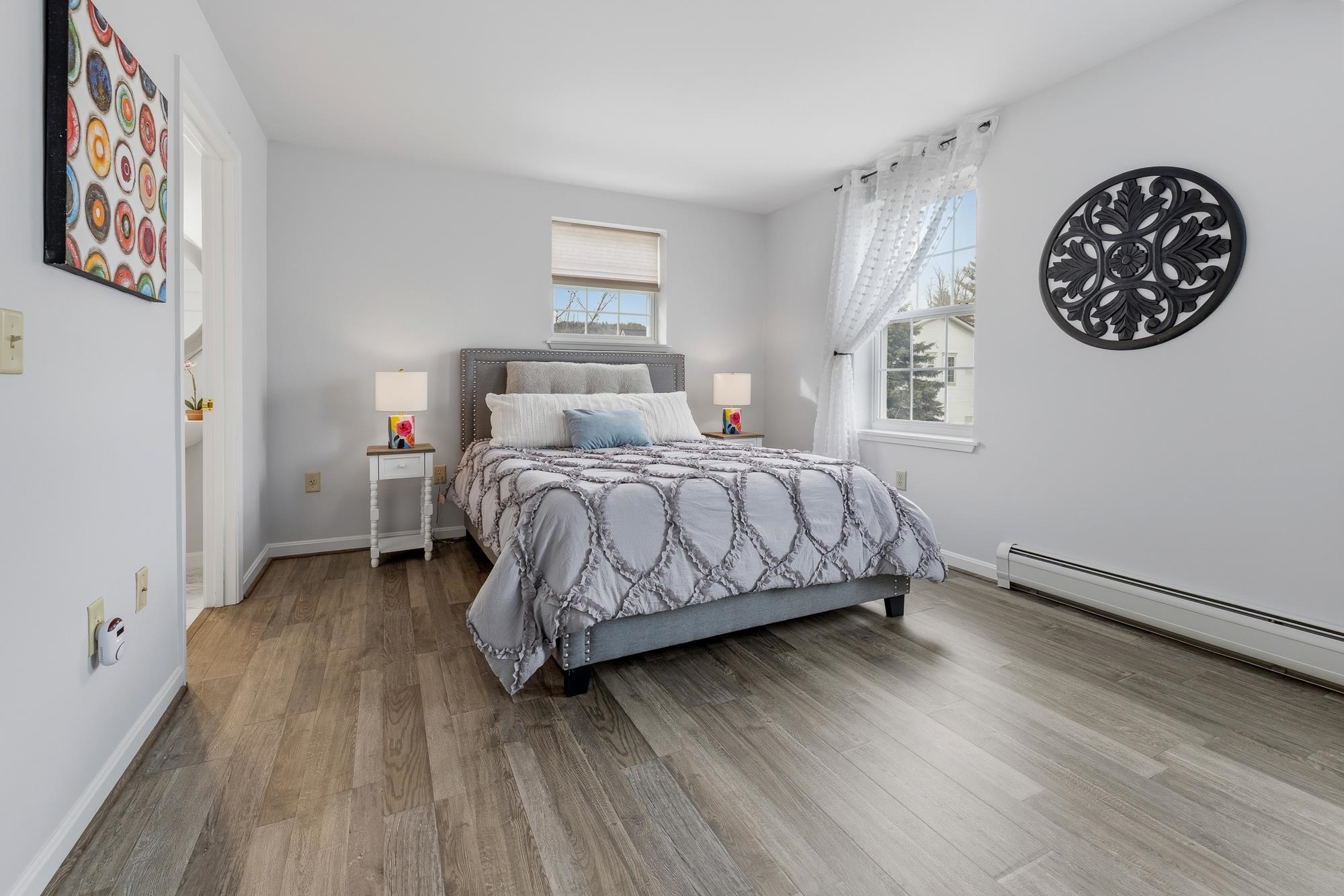 Bright and sunny, this beautifully updated Stony Brook condominium offers effortless living in a prime location. The open floor plan is enhanced by gleaming hardwood floors, new granite countertops, and a cozy gas fireplace that anchors the inviting living space. Step out onto the private deck to enjoy peaceful views and fresh air. Upstairs, two spacious ensuite bedrooms each feature their own bath, providing comfort and privacy. The fully finished walkout basement opens to a lovely patio and green space—perfect for recreation, a home office, 3rd bedroom, or additional living space. An attached garage adds everyday convenience, with easy access to walking and biking trails and a seamless commute to Dartmouth College and Hospital.