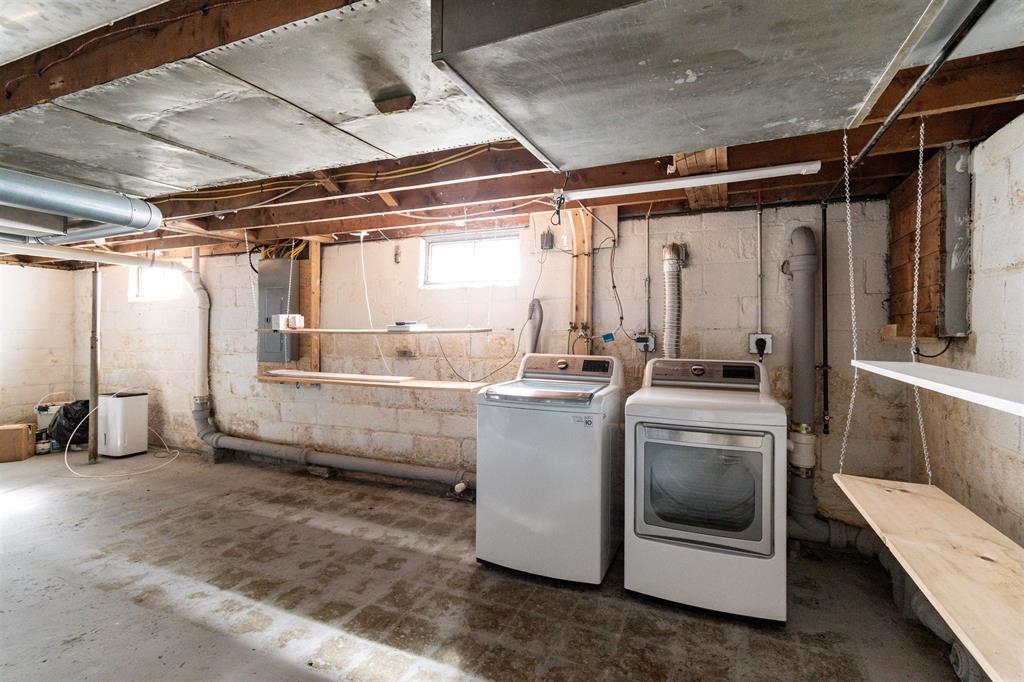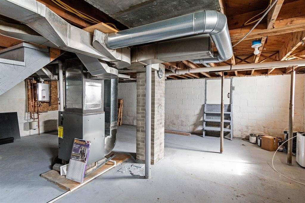 - Concrete Floor, Full, Storage Space, Unfinished, Interior Access, Basement Stairs