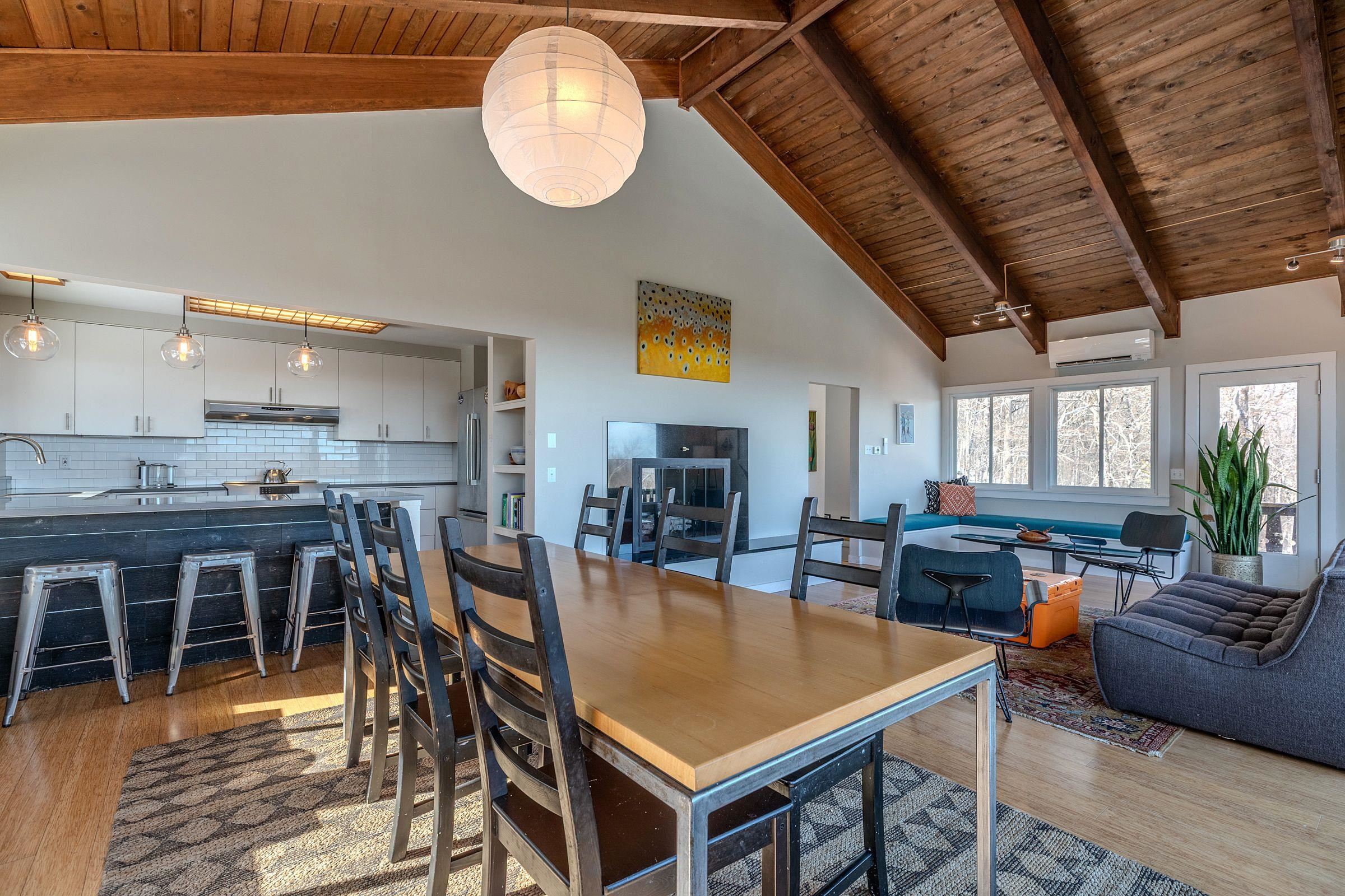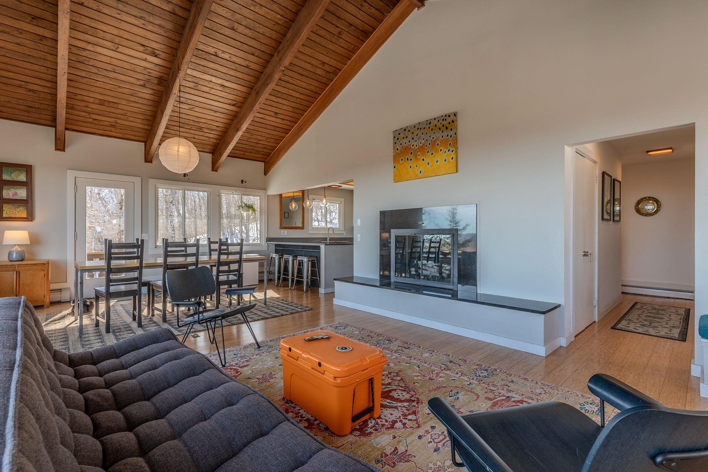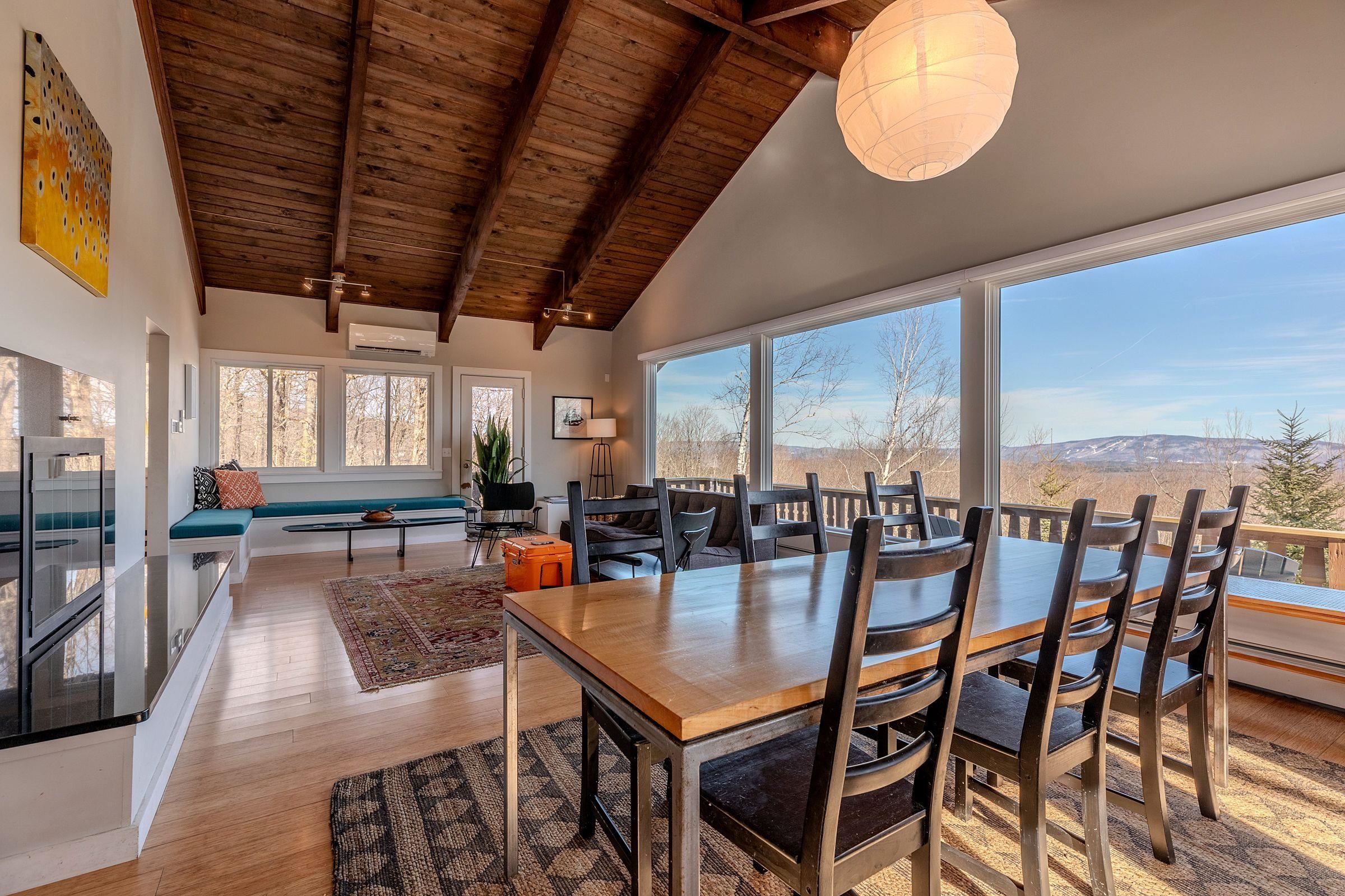Perched to capture breathtaking long-range views, this striking ski home offers an unforgettable vantage point of Magic Mountain and Stratton, with Bromley visible to the northwest—a daily reminder that some of Southern Vermont’s best skiing and outdoor adventure are just minutes away. With its cool, modern vibe and classic alpine character, the home perfectly blends style, comfort, and mountain living. The main living area is designed to showcase the spectacular scenery, with large windows that frame the surrounding mountains and fill the space with natural light. A wood-burning fireplace anchors the living room, creating the perfect spot to gather after a day on the slopes. Clean architectural lines, warm materials, and thoughtful updates give the home a contemporary yet welcoming feel throughout. Several upgrades and renovations provide comfort and efficiency for years to come. The property also includes a carport, providing convenient covered parking so you won’t have to clear snow off your car after a Vermont snowfall, along with space for skis and all the gear that comes with an active mountain lifestyle. Perfectly located just minutes from Bromley Mountain and a short drive to Stratton Resort, this home is ideally positioned for year-round recreation—from skiing and snowboarding in winter to hiking, biking, and golf in the warmer months. An added benefit of this property, if you opt to join, is that a Bromley Bond is available, providing driveway plowing, and garbage pickup services. Whether you are seeking a full-time residence or a retreat, this unique mountain home offers style, views, and an unbeatable Southern Vermont location. Closing to occur on or after June 15. The buyer may elect to close earlier and allow the seller to rent the property back until June 15. This property will transfer unfurnished.