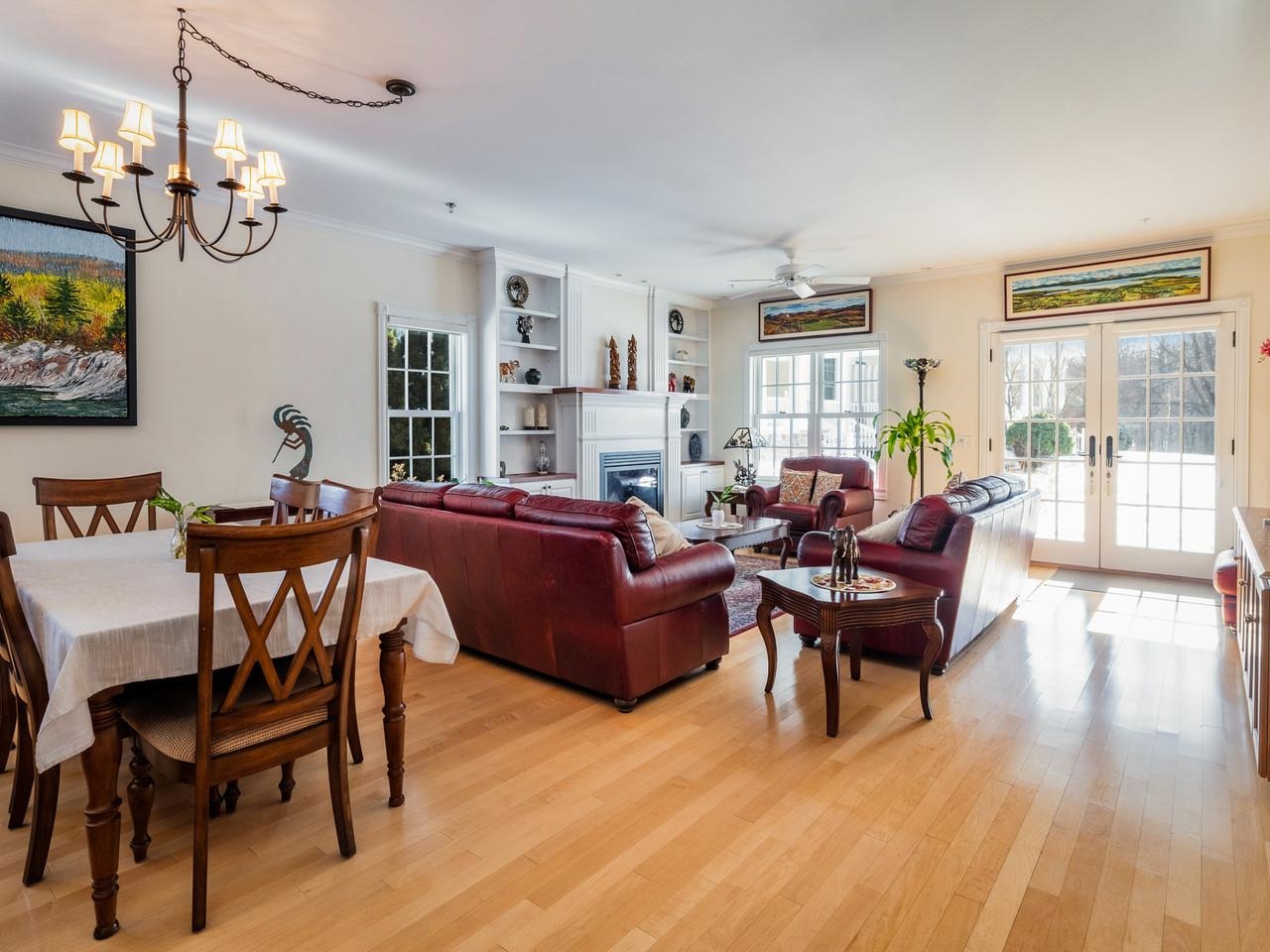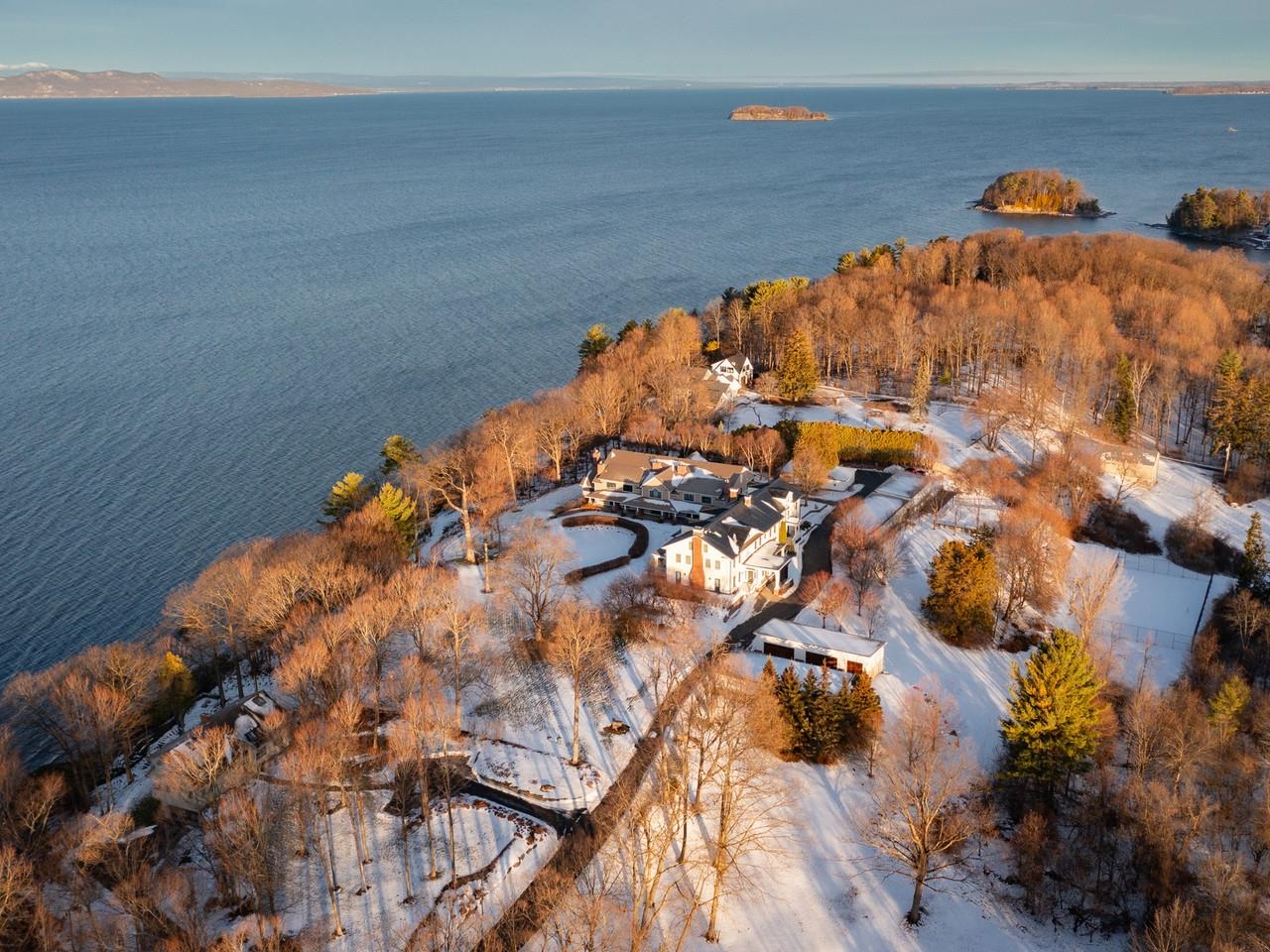 Enjoy incredible lakefront living in this beautiful townhome on Shelburne Point. With stunning views of Lake Champlain and the Adirondacks, this end-unit home is filled with natural light and includes more than 480 feet of shared private lakefront, plus a dock, tennis and pickleball courts, an in-ground pool, and six acres of beautifully landscaped common land. Custom finishes, crown molding, and casual elegance flow through this home. On the main floor, a nicely appointed kitchen with stainless appliances and stone countertops opens to a dining area and living room with a gas fireplace, leading to French doors and a covered stone patio overlooking the water. The main floor also includes a thoughtfully designed office or guest space, with French doors and a side patio, plus direct access to a beautiful 3/4 bath. The spacious primary suite features a gas fireplace, a sitting area with gorgeous lake views, plenty of closet space and a lovely, tiled bath. A laundry area and a second bedroom with built-ins and its own bath complete the upper level, while a finished lower level with a half bath offers flexible space for a media or exercise room. This desirable lakefront end unit, in one of Vermont’s most picturesque communities, is located just minutes from Shelburne’s wonderful restaurants, coffee shops, the farmer’s market, and Shelburne Farms, with a 15–20-minute commute to downtown Burlington, UVM, the UVM Medical Center, and the airport.