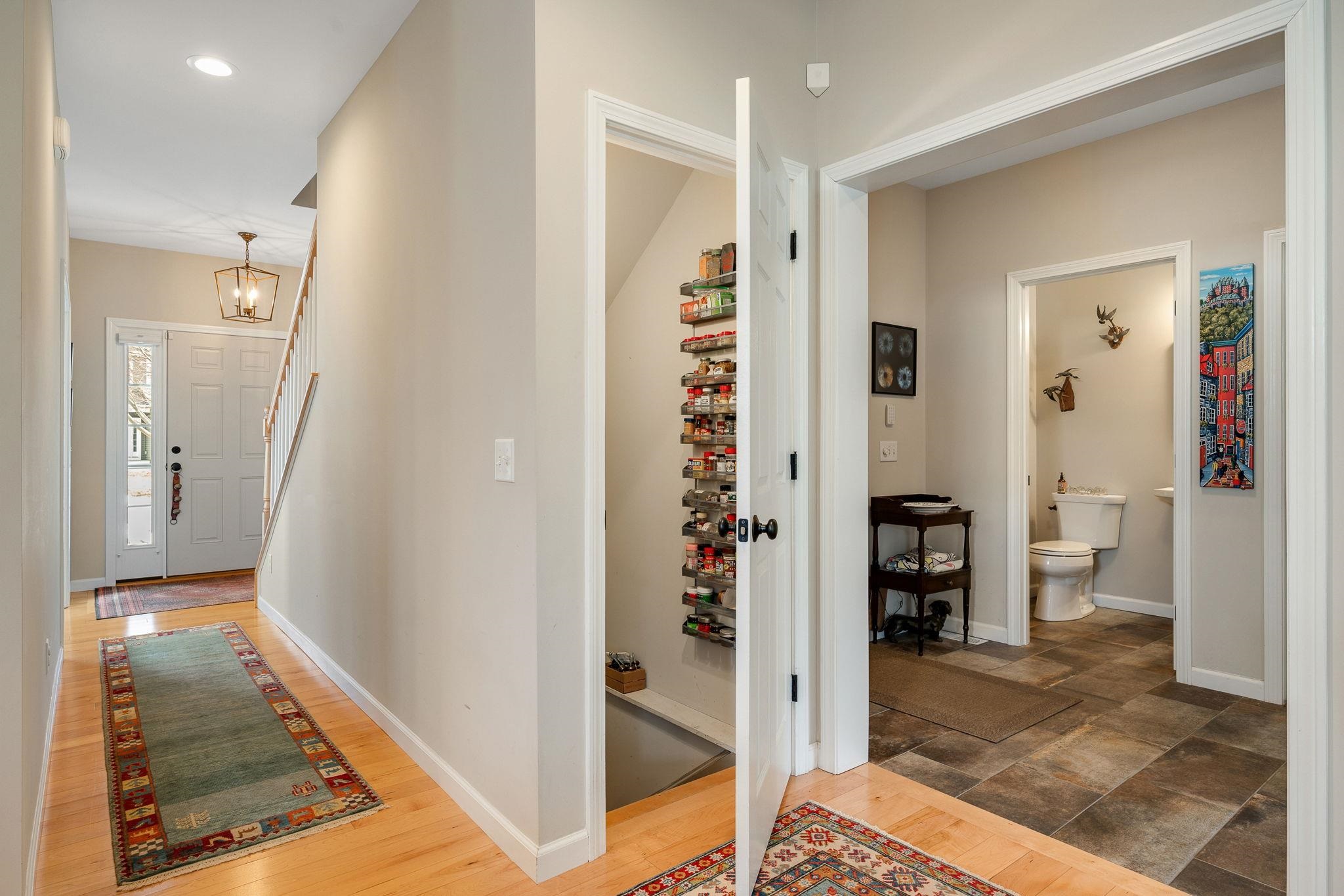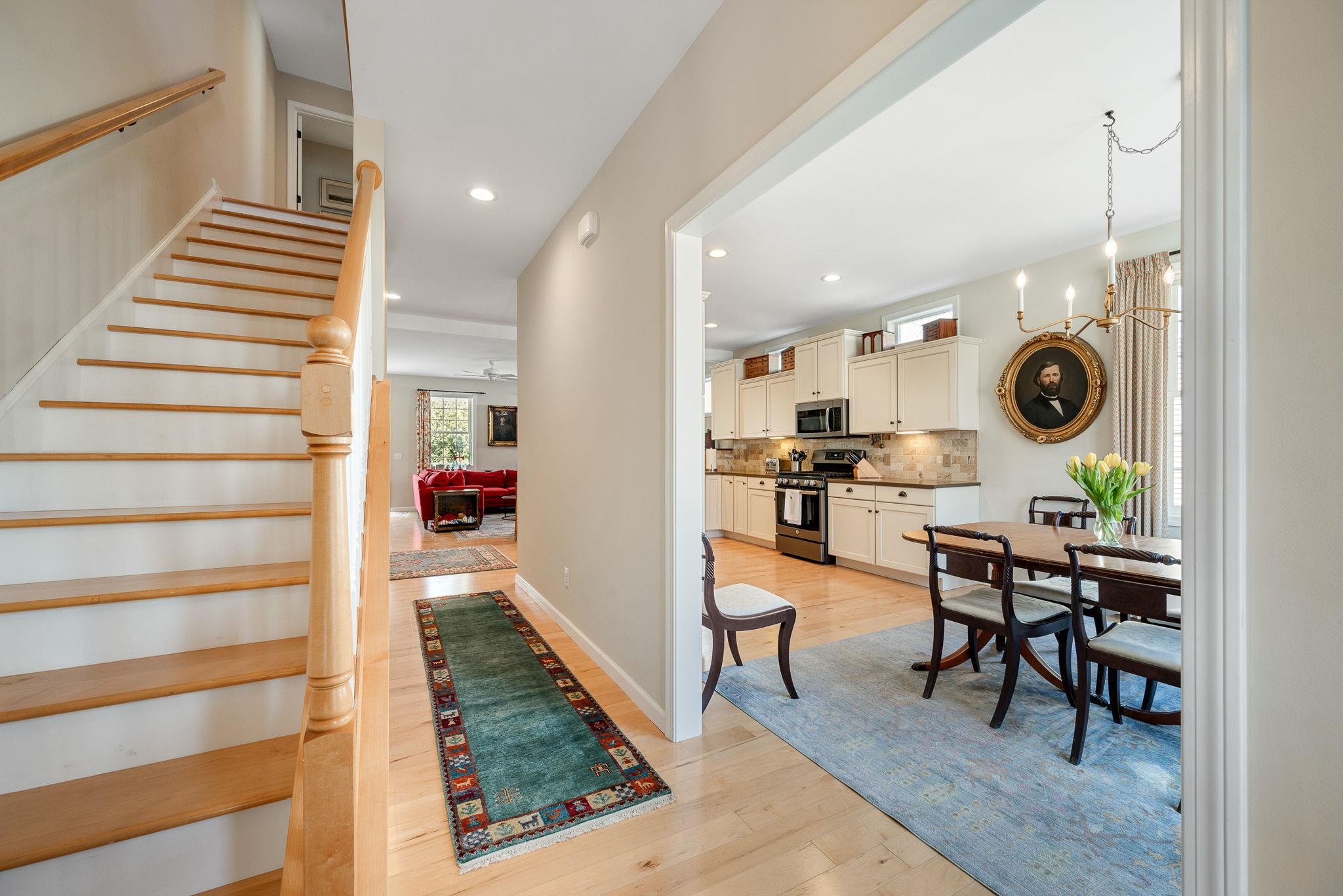 Welcome to this stunning Waterlefe Way townhouse, tucked away on a quiet dead-end street in a charming, tree-lined Colchester neighborhood. Perfectly positioned along the Colchester Bike Path and less than a mile from Lake Champlain, this home blends peaceful surroundings with exceptional convenience. Step inside to a bright, open main level designed for comfortable everyday living and effortless entertaining. The beautiful kitchen features stainless steel appliances and corian countertops, overlooking the living room with 9-foot ceilings and a cozy gas fireplace. The main-floor primary suite provides the ease of single-level living with a tiled en-suite bath and spacious walk-in closet. Hunter Douglas blinds on the first floor. Upstairs you’ll find two additional bedrooms, including a second suite with its own private bath, large walk-in closet, and linen storage. A dedicated office area with custom built-ins by Inspired Closets provides smart organization and flexible workspace. The insulated basement with an egress window offers excellent potential for future finished living space. Outdoors, relax on the exceptionally private covered back porch overlooking protected land—complete with outdoor furniture—or enjoy the small terrace perfect for grilling. Surrounded by mature trees in a welcoming neighborhood close to schools and local services, this beautifully maintained home offers comfort, privacy, and a lifestyle centered around Vermont’s outdoor beauty.