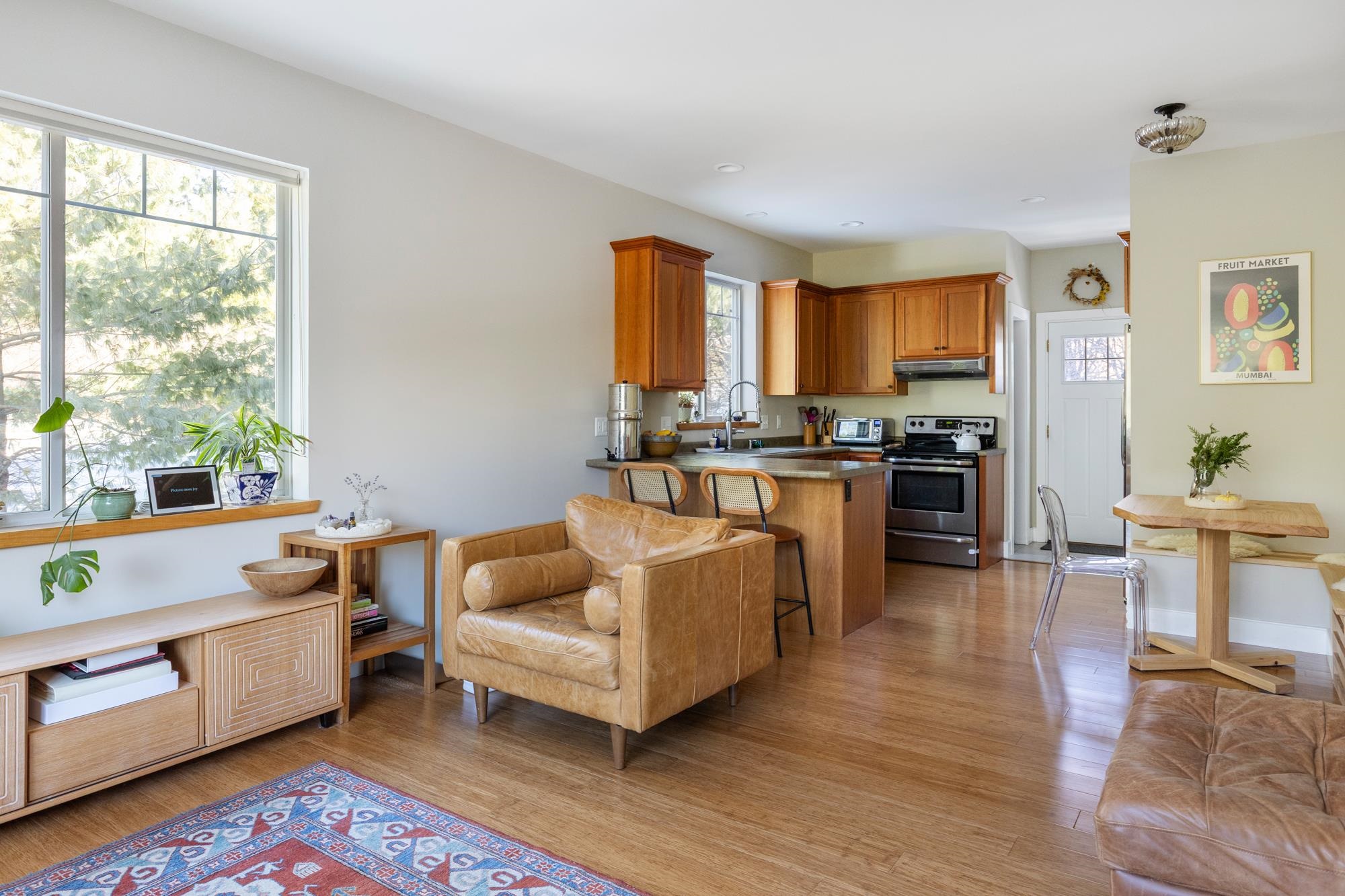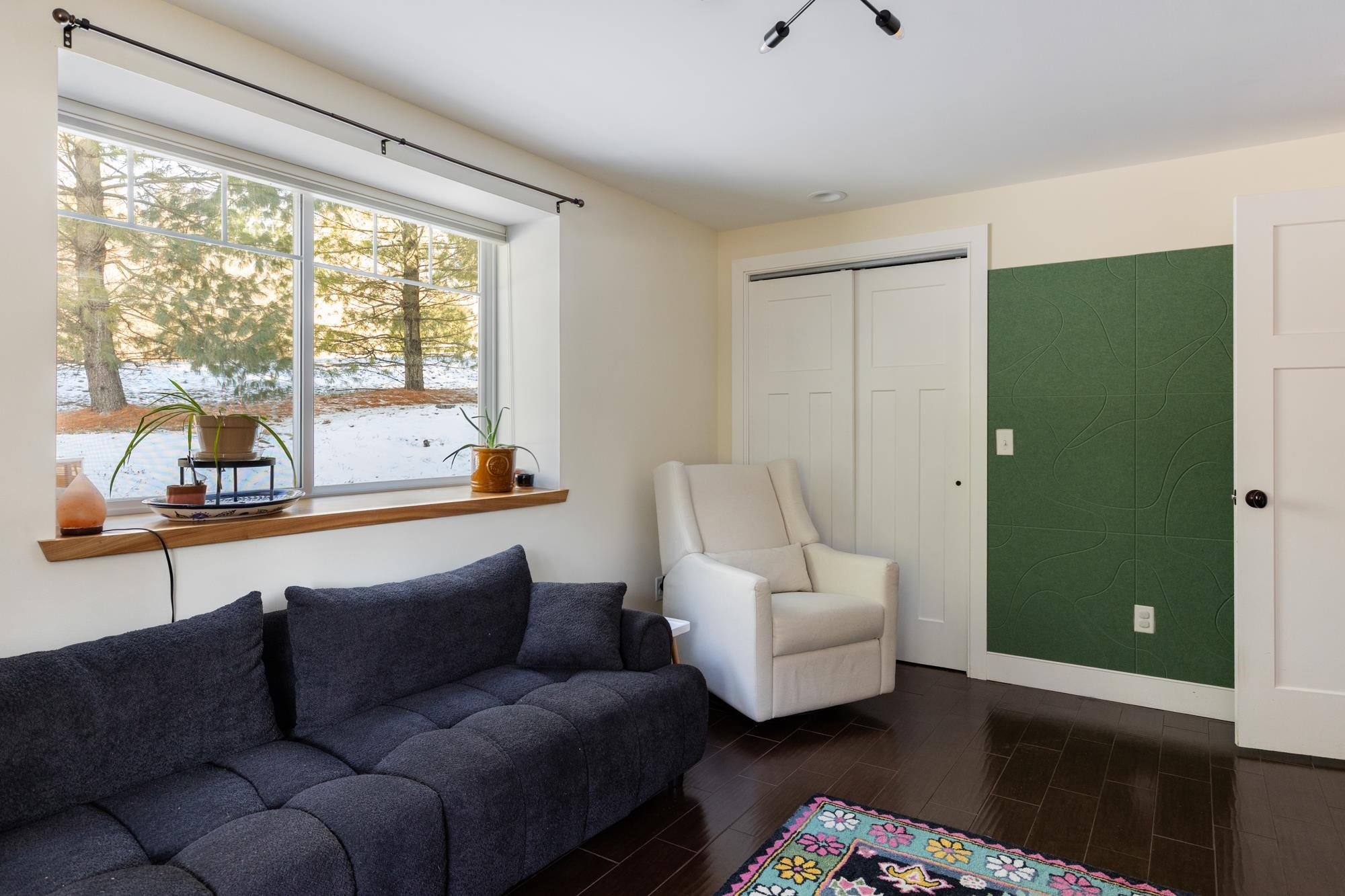 Just around the corner from Kwiniaska Golf Course in the beautiful town of Shelburne find 15 Webster Ridge. Built in 2015, this 10 year old home has 3 bedrooms (and an office) and 3 bathrooms boasting open floor space, a spacious kitchen, a plethora of windows, and private land access, rare in condos. Enter into the house through the covered patio and head up to the main level with bamboo floors throughout, a gas fireplace, mini splits for efficient A/C and heat, and huge windows that allow natural light to stream into the home. Off of the living room you'll find an open eat-in kitchen with a large pantry, a well hidden 1/2 bath, a breakfast nook, and access to the trex deck overlooking the back yard. You'll find an office and carpeted primary bedroom overlooking the back yard with tiled bathroom floors, spacious vanity, and large closet. The lower level of the home has radiant heat flooring, LVP flooring, with large windows, bedrooms (one of which is carpeted) and the other is so spacious it can easily be used as a den or additional entertaining space, a beautiful 3/4 bath with tiled shower and separate space for washer and dryer (both 2 years old). The garage gives direct access into the home and is over 30' long for additional storage. The Condo HOA consists of only 2 units and this condo has private use of the back yard (to the east) and the side yard (to the north) to do with as you choose. The small neighborhood makes up it's own association, primarily for road upkeep and maintenance. All together this keeps the dues down to $1000/year. Location could not get better! About 1.5 miles to downtown Shelburne with shopping, grocer, restaurants, and the wonderful Shelburne Museum, about 5 minutes to Shelburne Bay or the Elementary School, 10 minutes to the Shelburne Town Beach (exclusive for it's residents), or I-89, 15 minutes to Burlington's Church Street. There's not many opportunities like this, schedule your visit today! Open House on 3/14, 11-2.