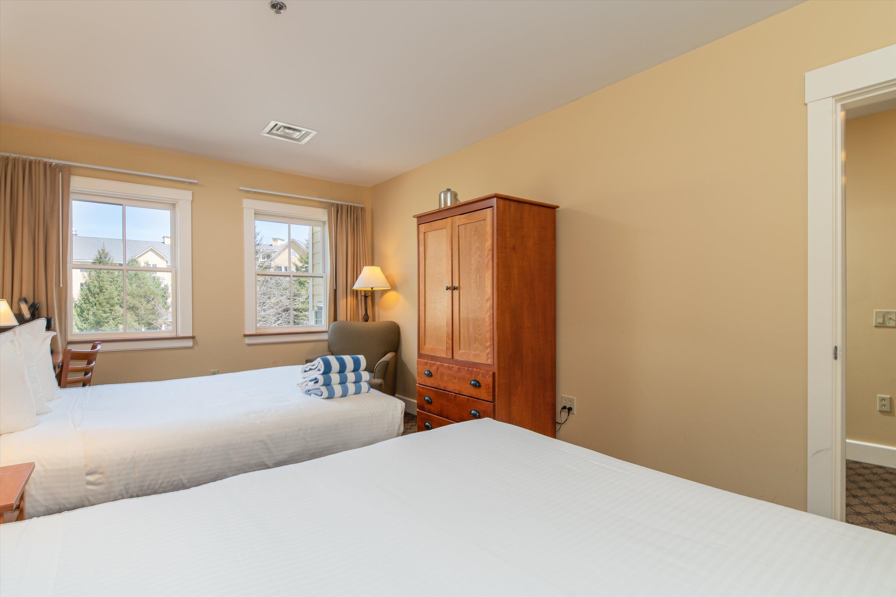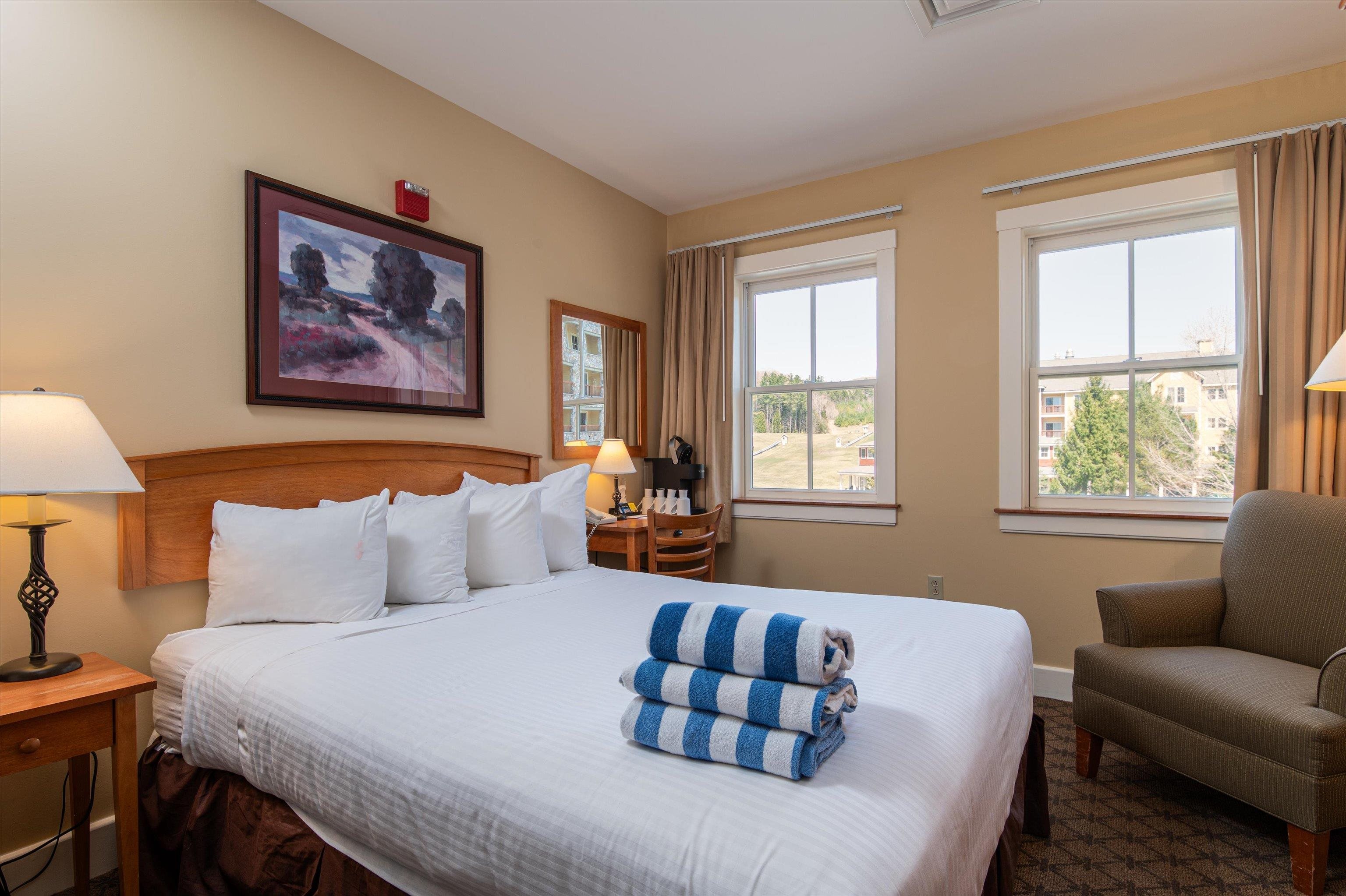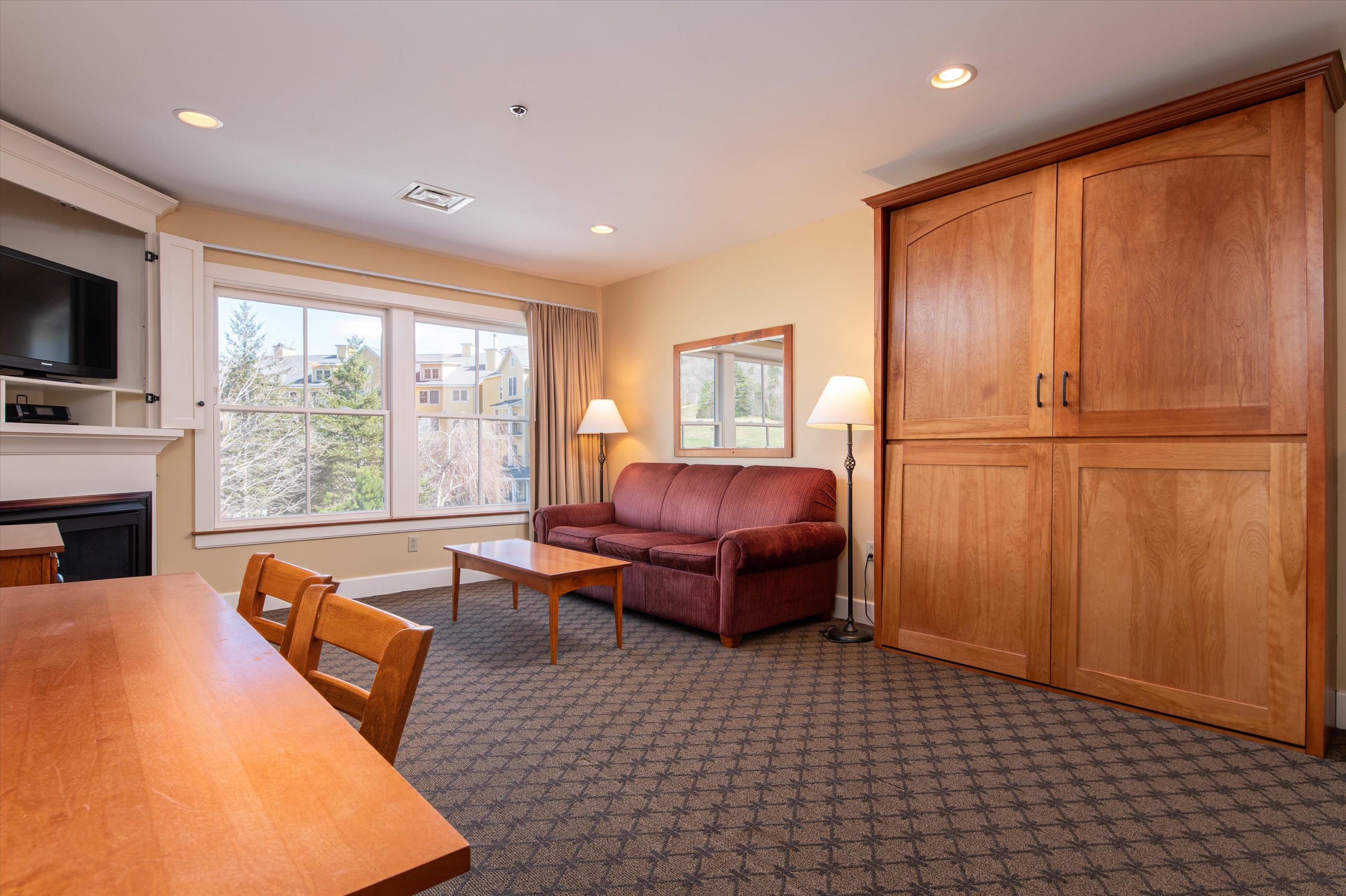 Welcome to effortless mountain living in this spacious 1-bedroom, 2-bathroom unit at the premier Jackson Gore Inn at Okemo Mountain Resort. Boasting slope views, a lockout design, and room to comfortably sleep up to 8 guests, this is the perfect blend of personal getaway with rental opportunities.The well-designed floor plan features a full kitchen, dining area, and cozy living room with a gas fireplace, sleeping 4 with a Murphy Bed and a Sofa Bed. The lockout setup sleeps 4 with 2 Queen beds, providing flexibility, allowing the unit to be rented as a whole or in sections, maximizing rental potential. This Location is great, just steps from the outdoor heated pool, hot tubs, and owner’s locker room! Whether you’re skiing in the winter, hiking in the summer, or simply enjoying the amenities, this Jackson Gore unit delivers comfort and convenience!
