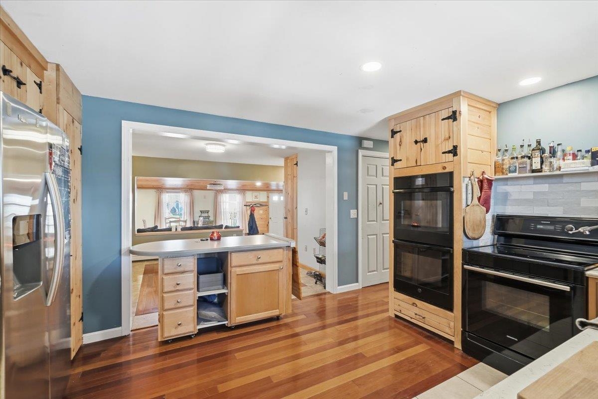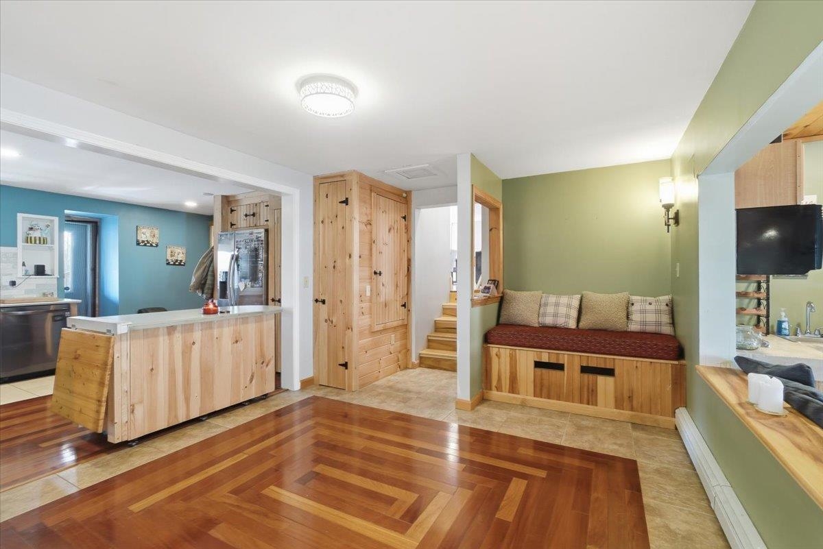 Located at the end of a quiet dead-end road, this year-round 4-bedroom, 3-bath Cape-style home in Alburgh sits on 0.93 acres and offers over 3, 000 sq ft of finished living space. Built in 2005 with a large garage addition completed in 2010, the home features Brazilian cherry floors, tile, pine accents, and abundant natural light throughout. The kitchen includes quartz countertops, tile backsplash, double wall ovens, an electric range with pot filler, pantry storage, and ample workspace. Multiple living areas provide plenty of room to entertain, including a spacious living room, front sitting room with coffee/wet bar, bright three-season porch, and covered back deck. The primary bedroom offers oak floors, cathedral ceilings, a walk-in closet, and large storage space, along with access to a bathroom featuring a jetted tub. The finished walk-out basement expands the living space with a ¾ bathroom, three bonus rooms, and utility area. Additional features include central vacuum, solar panels, and an attached 2-car garage with front and rear doors. Conveniently located near Lake Champlain and Alburgh Village, the property is just 30 minutes to St. Albans or Plattsburgh and about one hour to Burlington, Montreal, and major ski resorts including Jay Peak and Smugglers’ Notch.