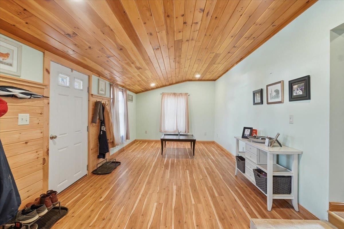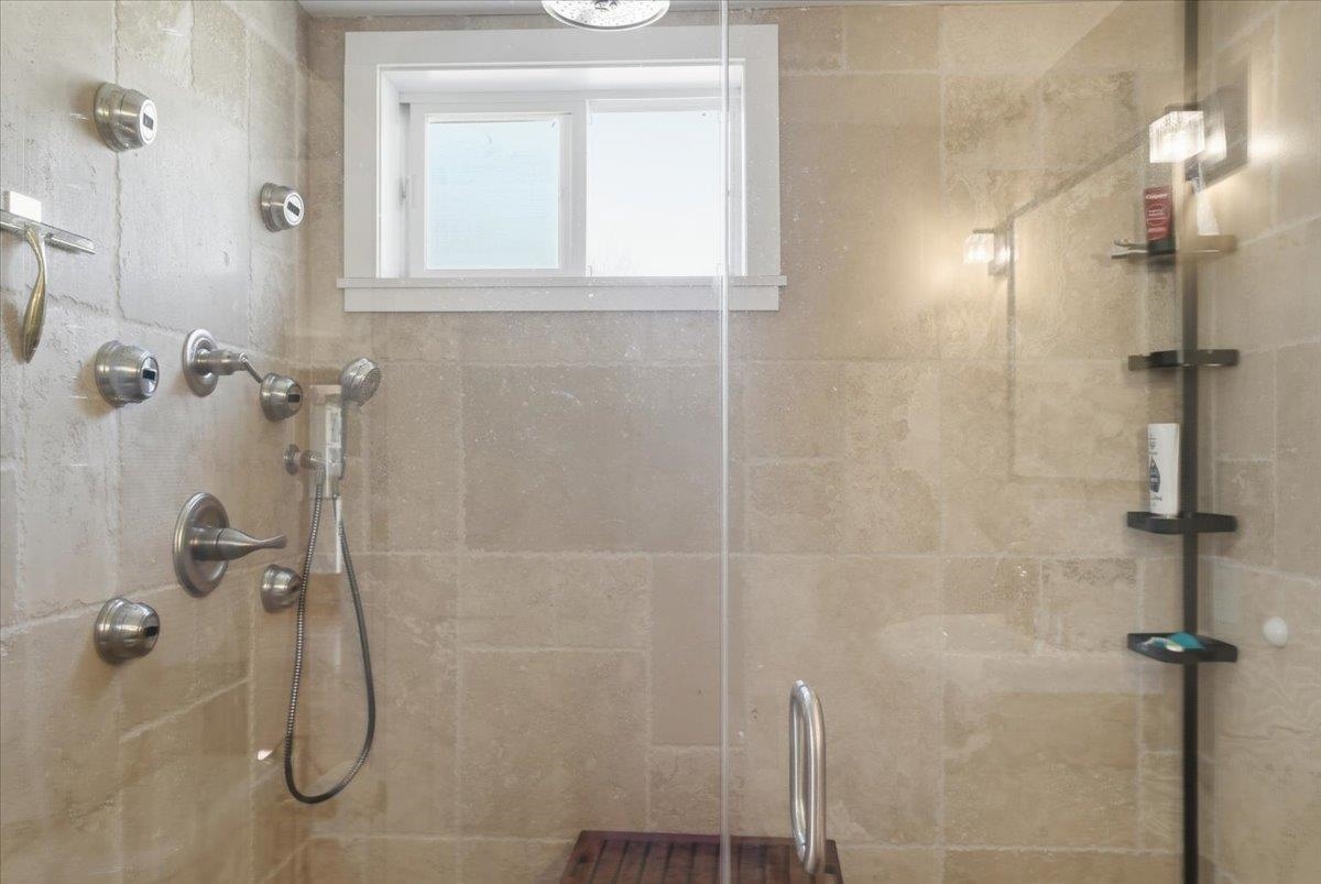 - Central Vacuum, Blinds, Ceiling Fan, Draperies, Kitchen Island, Kitchen/Dining, Laundry Hook-ups, Primary BR w/ BA, Natural Light, Natural Woodwork, Security, Vaulted Ceiling, Wet Bar, Programmable Thermostat, Smart Thermostat