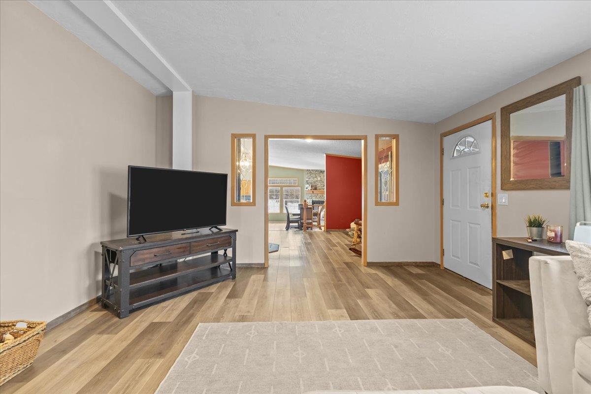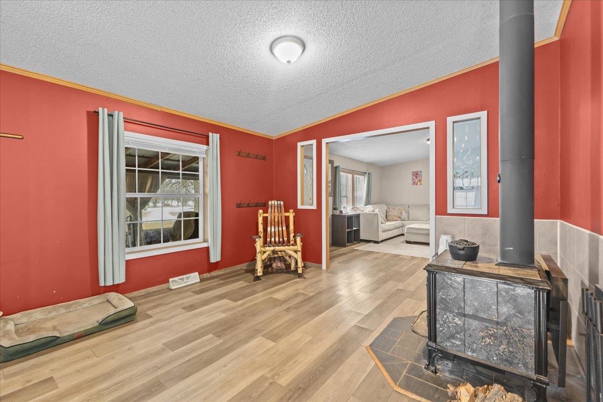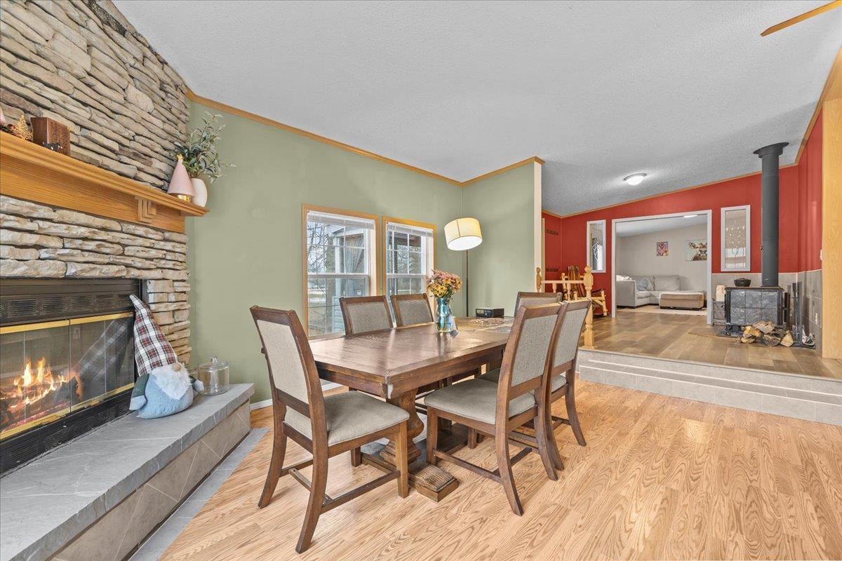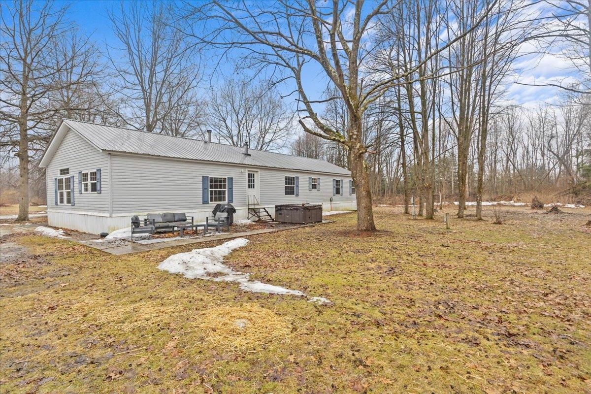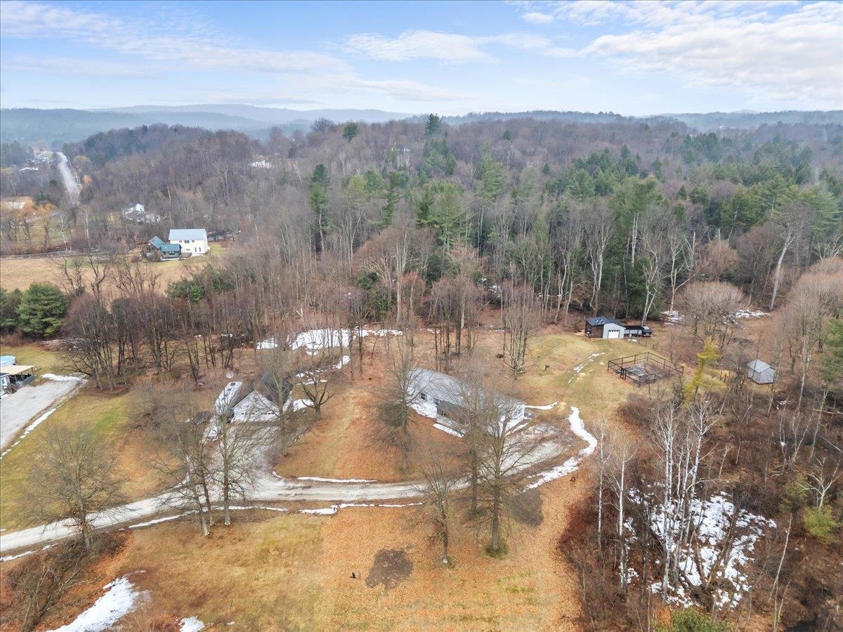 Enjoy privacy, room inside and out, and homesteading opportunities on seven peaceful acres in this 3-bedroom, 2-bath double-wide home, priced significantly below the current town assessment. Bright, open rooms with large windows create a welcoming feel throughout. The spacious kitchen offers abundant cabinets and counter space along with a new dishwasher and sink, and flows into an expansive dining room featuring a wood-burning fireplace with a beautiful stone hearth. Step up to a cozy sitting room with a woodstove that leads to the front door and covered porch, along with the sun-filled living room with vaulted ceilings. The primary bedroom suite includes two walk-in closets and a private bath with both a shower and soaking tub. Two additional bedrooms and a full hall bathroom complete the convenient single-level layout. The back entry includes a mudroom and utility room for added functionality. Outside, the seven-acre property features mature trees, open lawn areas, and ample space for gardens, animals, or hobby farming, with a garage/shed outbuilding, new chicken coop, and new goat house offering additional possibilities. Recent updates include interior painting, new carpeting, and improvements to the outbuildings. Find spacious living in a peaceful country setting with convenient access to nearby amenities and an easy commute to Burlington, Bristol, or Middlebury.