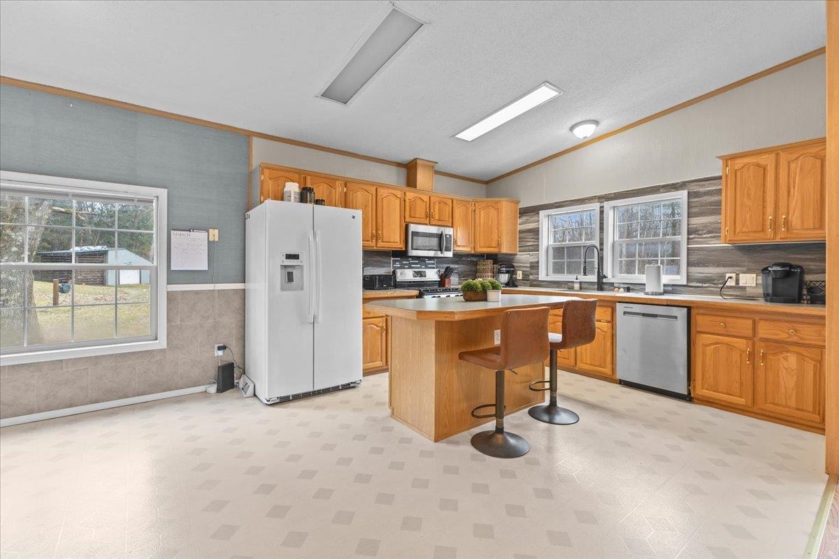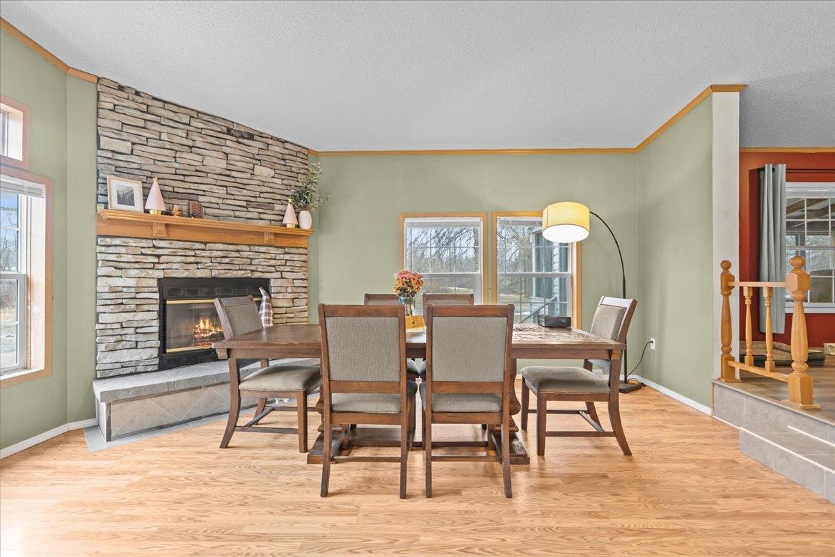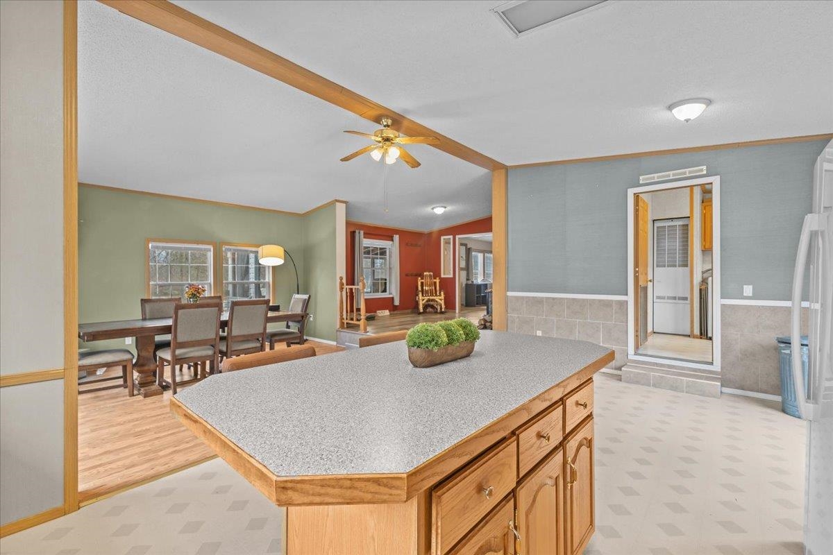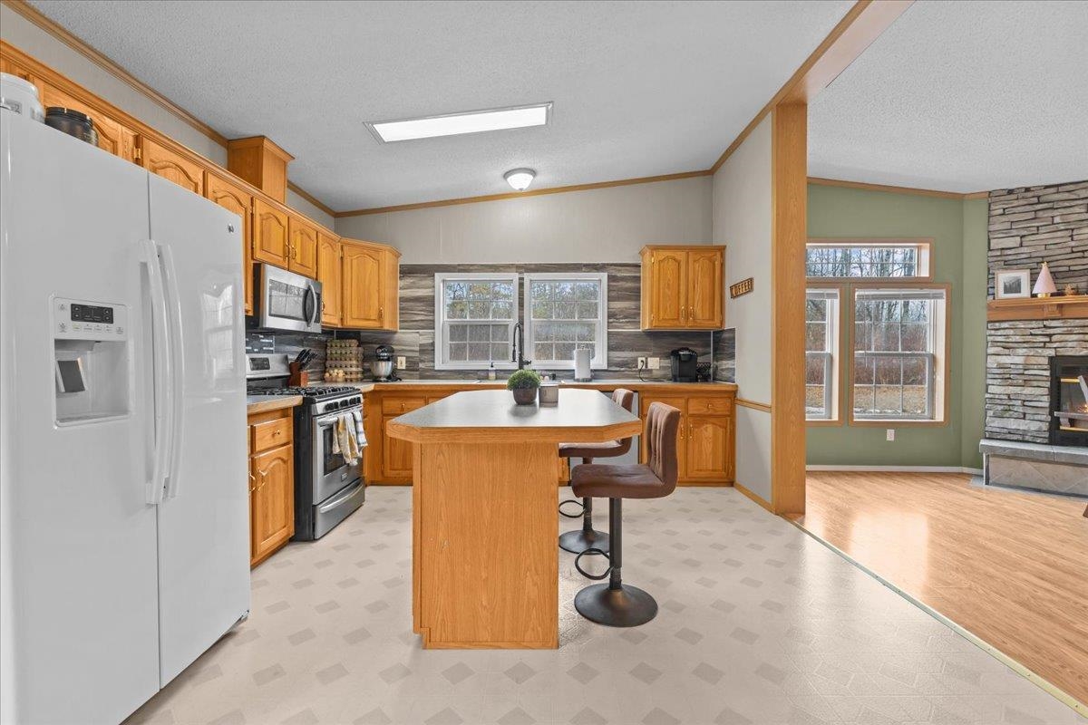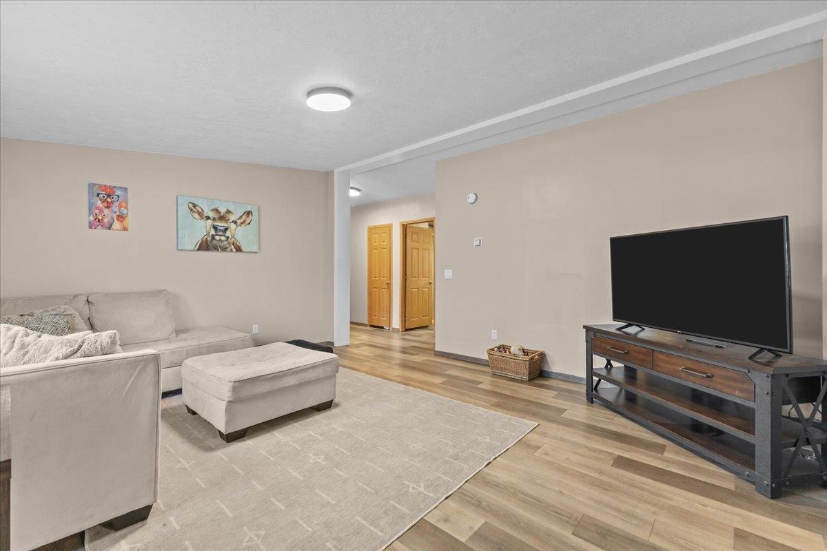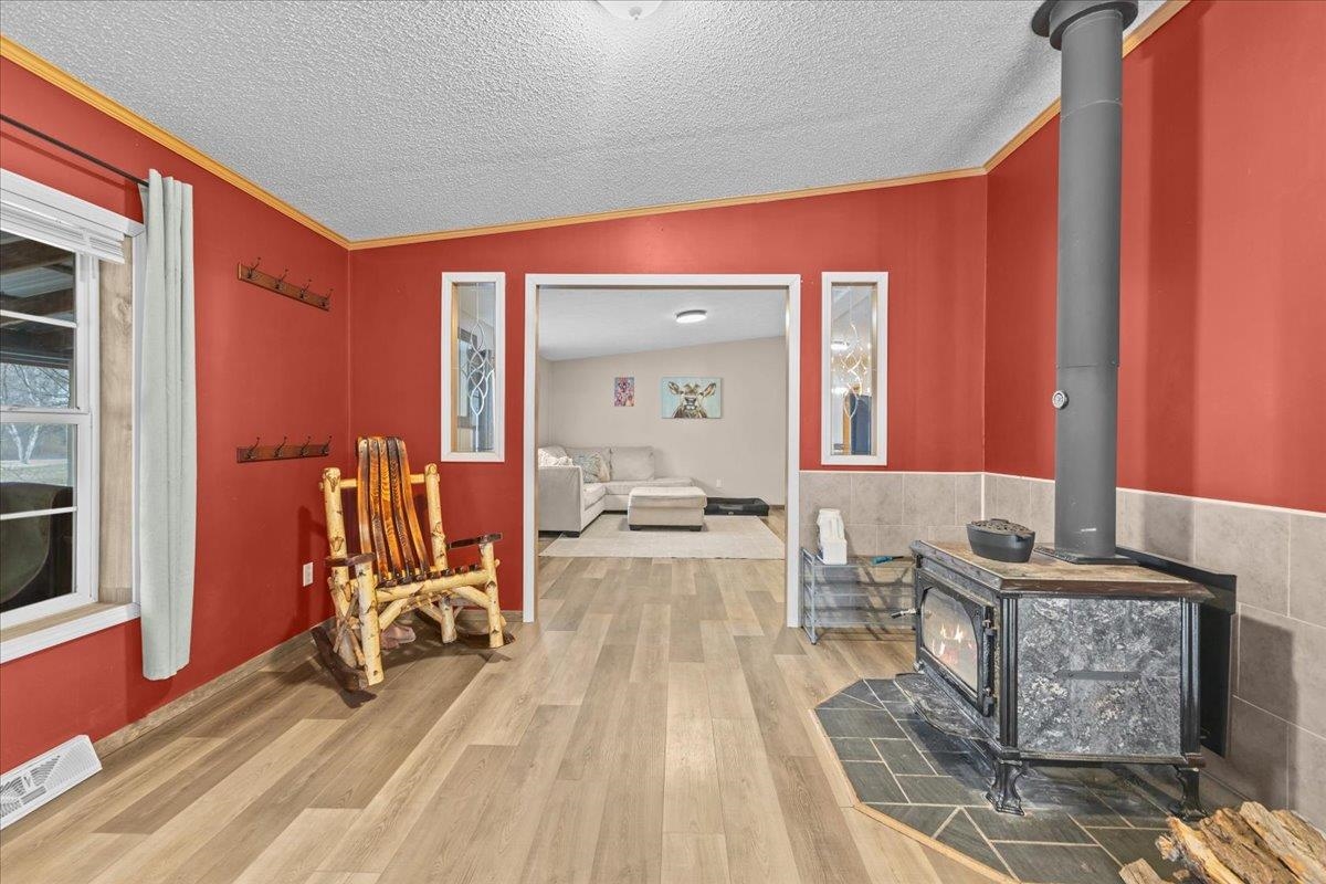 Enjoy privacy, room inside and out, and homesteading opportunities on seven peaceful acres in this 3-bedroom, 2-bath double-wide home, priced significantly below the current town assessment. Bright, open rooms with large windows create a welcoming feel throughout. The spacious kitchen offers abundant cabinets and counter space along with a new dishwasher and sink, and flows into an expansive dining room featuring a wood-burning fireplace with a beautiful stone hearth. Step up to a cozy sitting room with a woodstove that leads to the front door and covered porch, along with the sun-filled living room with vaulted ceilings. The primary bedroom suite includes two walk-in closets and a private bath with both a shower and soaking tub. Two additional bedrooms and a full hall bathroom complete the convenient single-level layout. The back entry includes a mudroom and utility room for added functionality. Outside, the seven-acre property features mature trees, open lawn areas, and ample space for gardens, animals, or hobby farming, with a garage/shed outbuilding, new chicken coop, and new goat house offering additional possibilities. Recent updates include interior painting, new carpeting, and improvements to the outbuildings. Find spacious living in a peaceful country setting with convenient access to nearby amenities and an easy commute to Burlington, Bristol, or Middlebury.