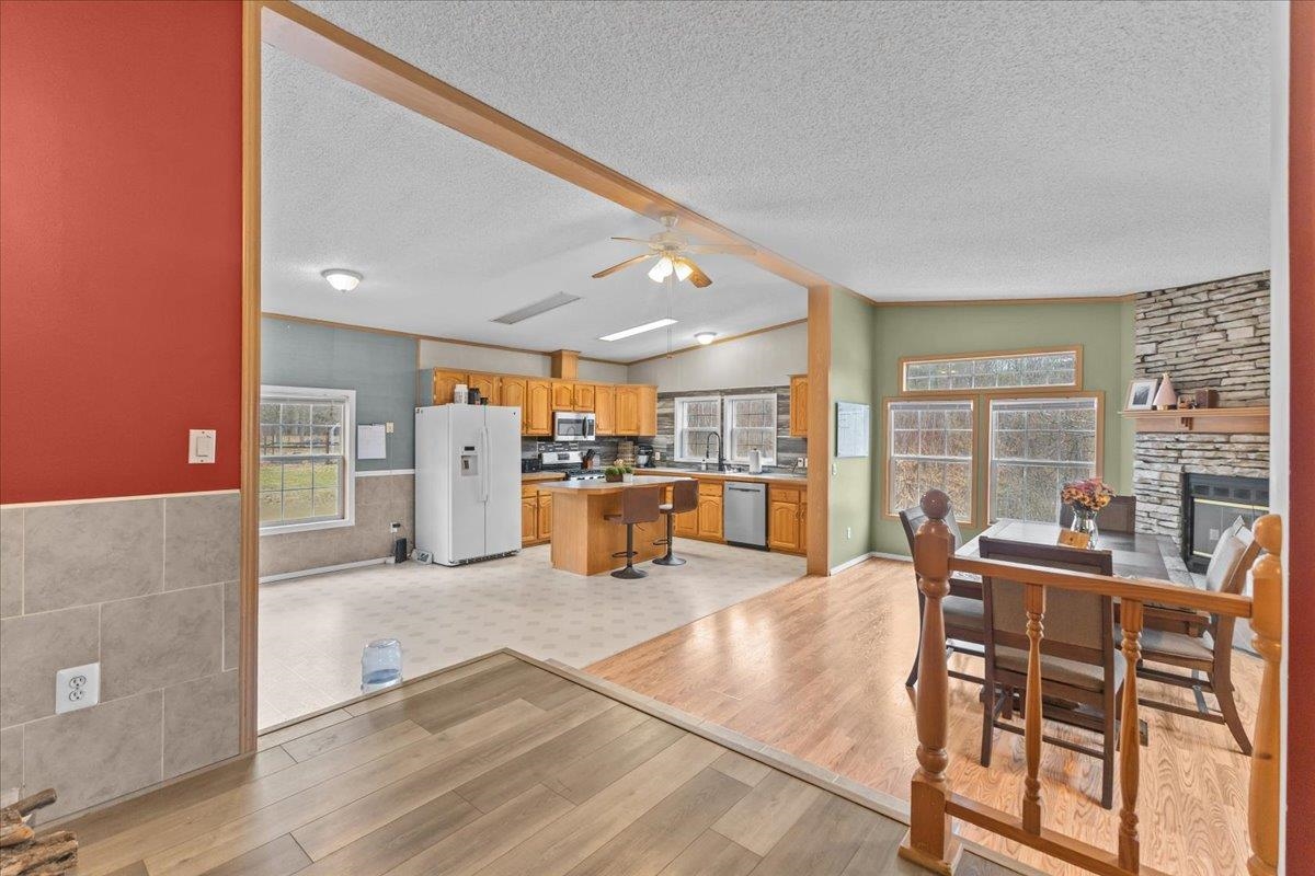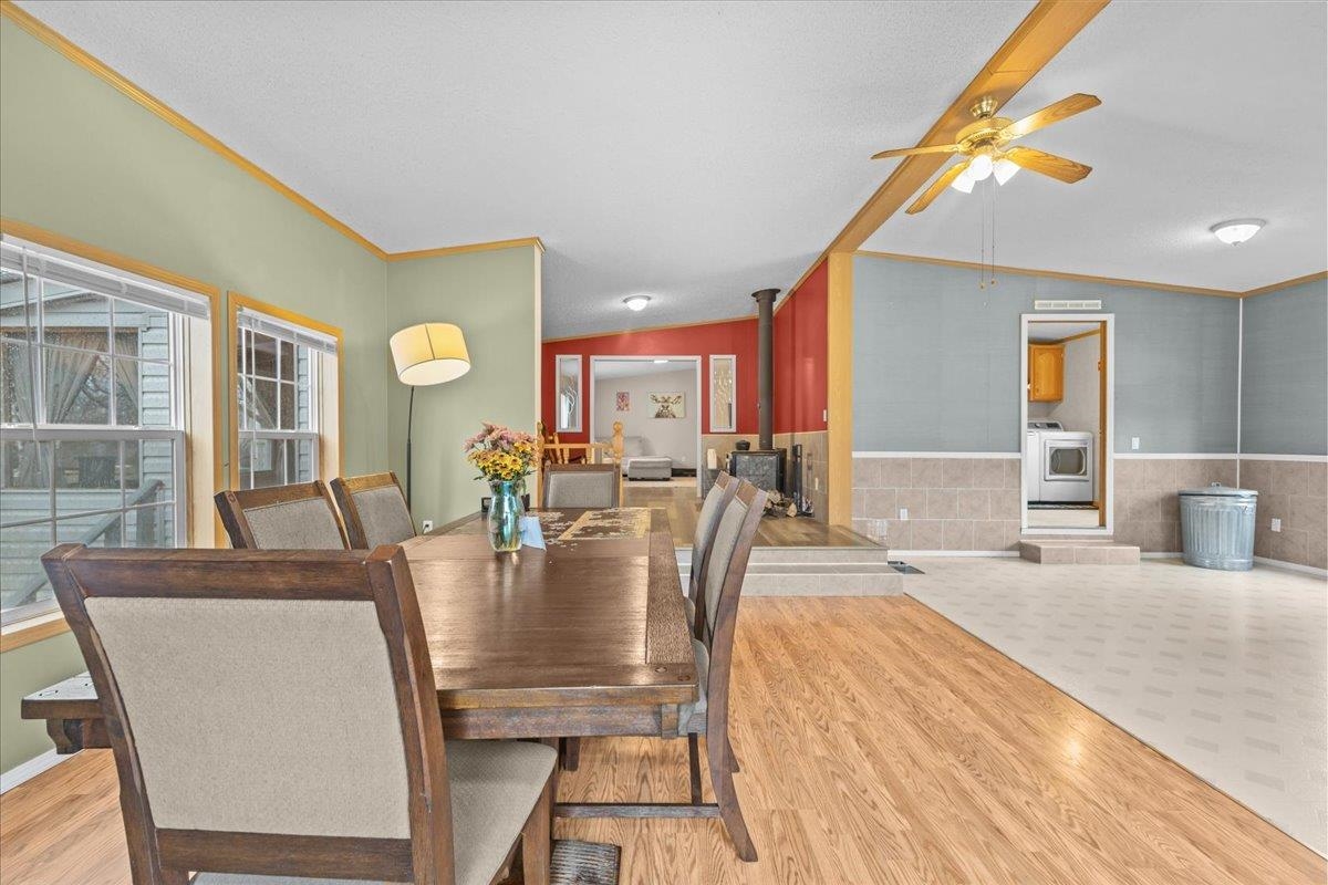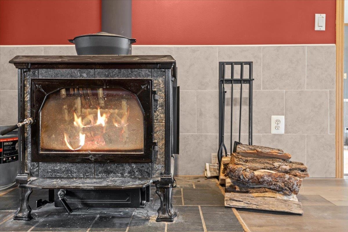- Cathedral Ceiling, Ceiling Fan, Wood Fireplace, Hot Tub, Laundry Hook-ups, Primary BR w/ BA, Natural Light, Wood Stove Insert, 1st Floor Laundry