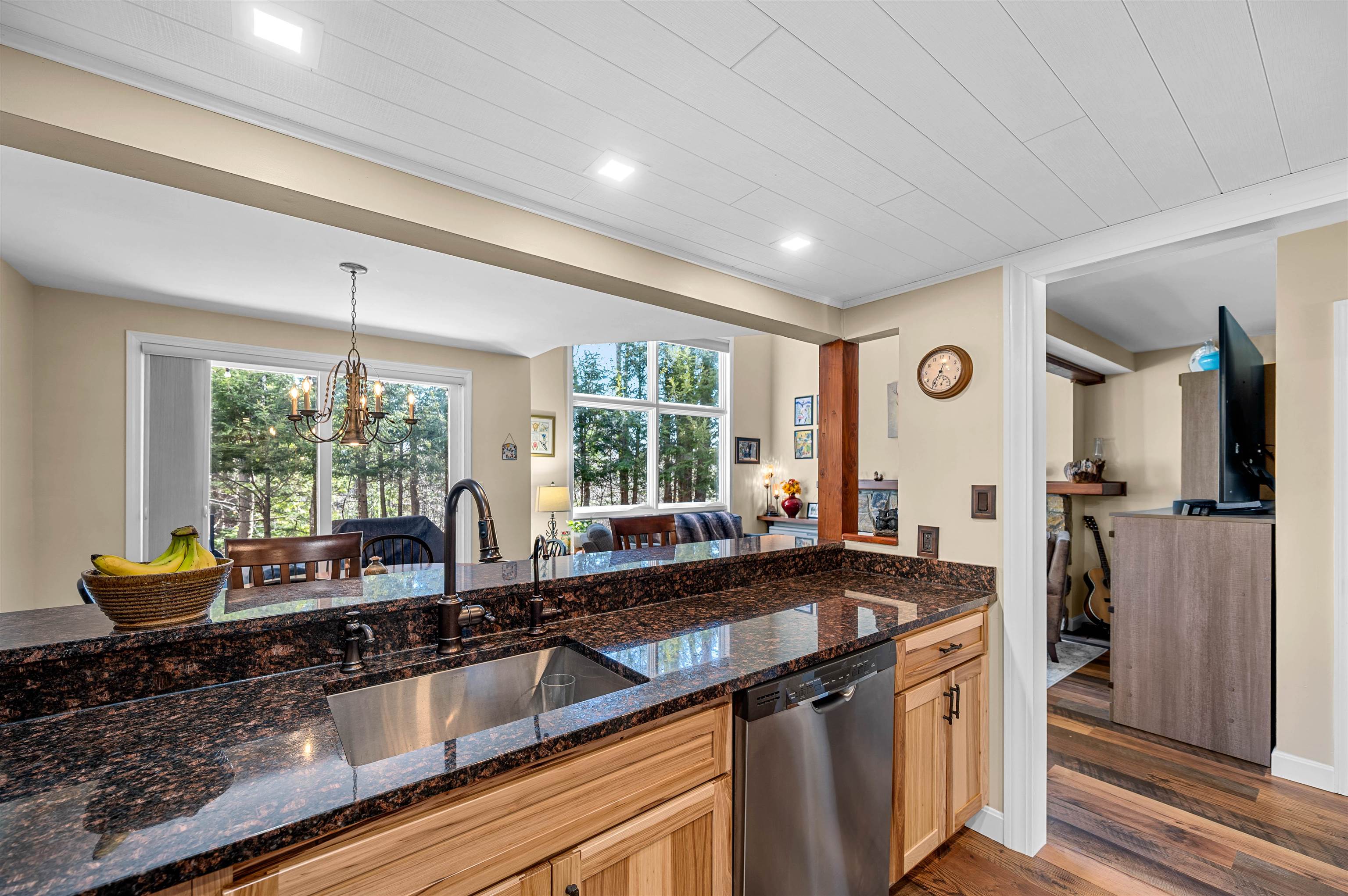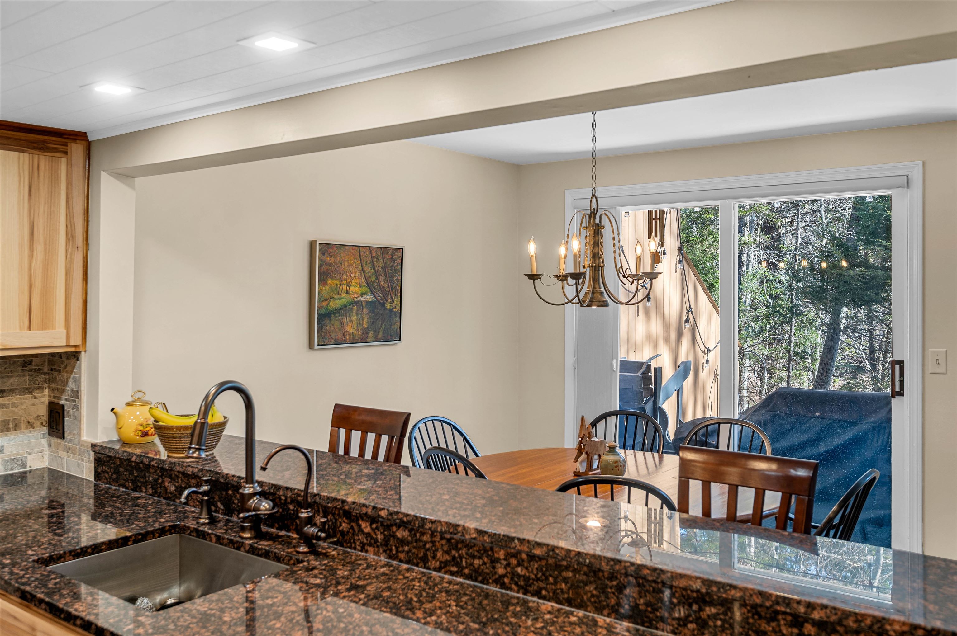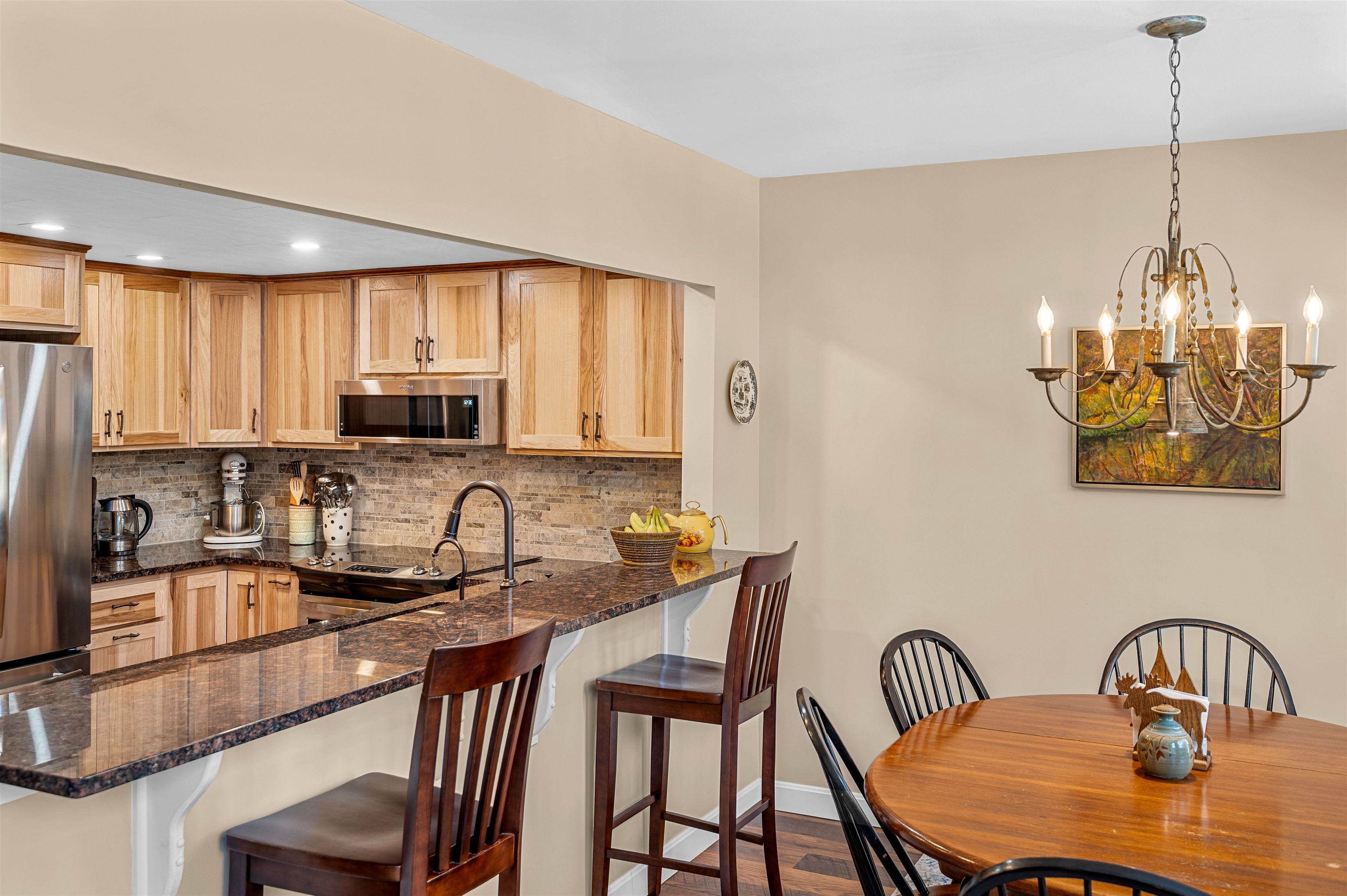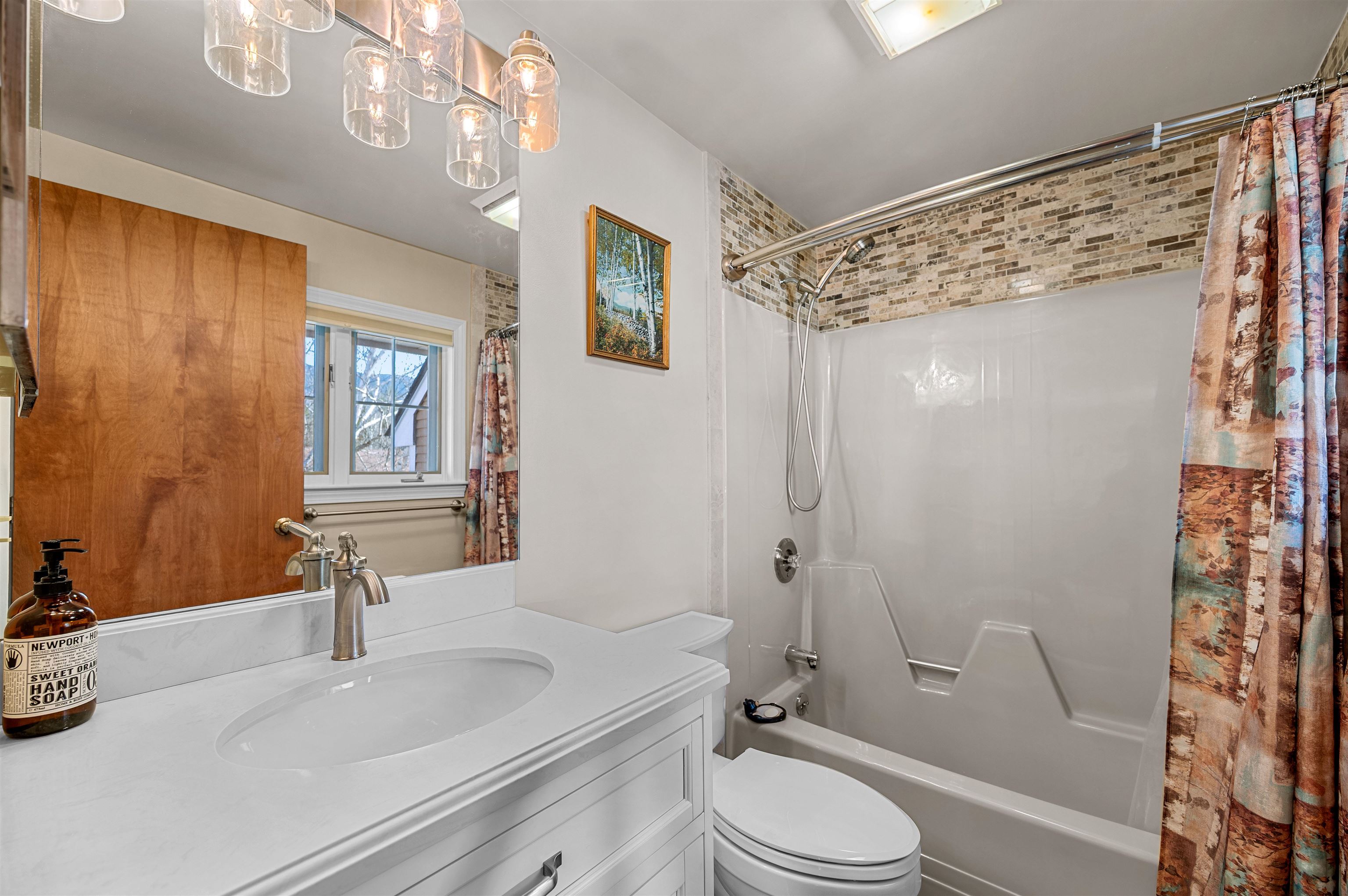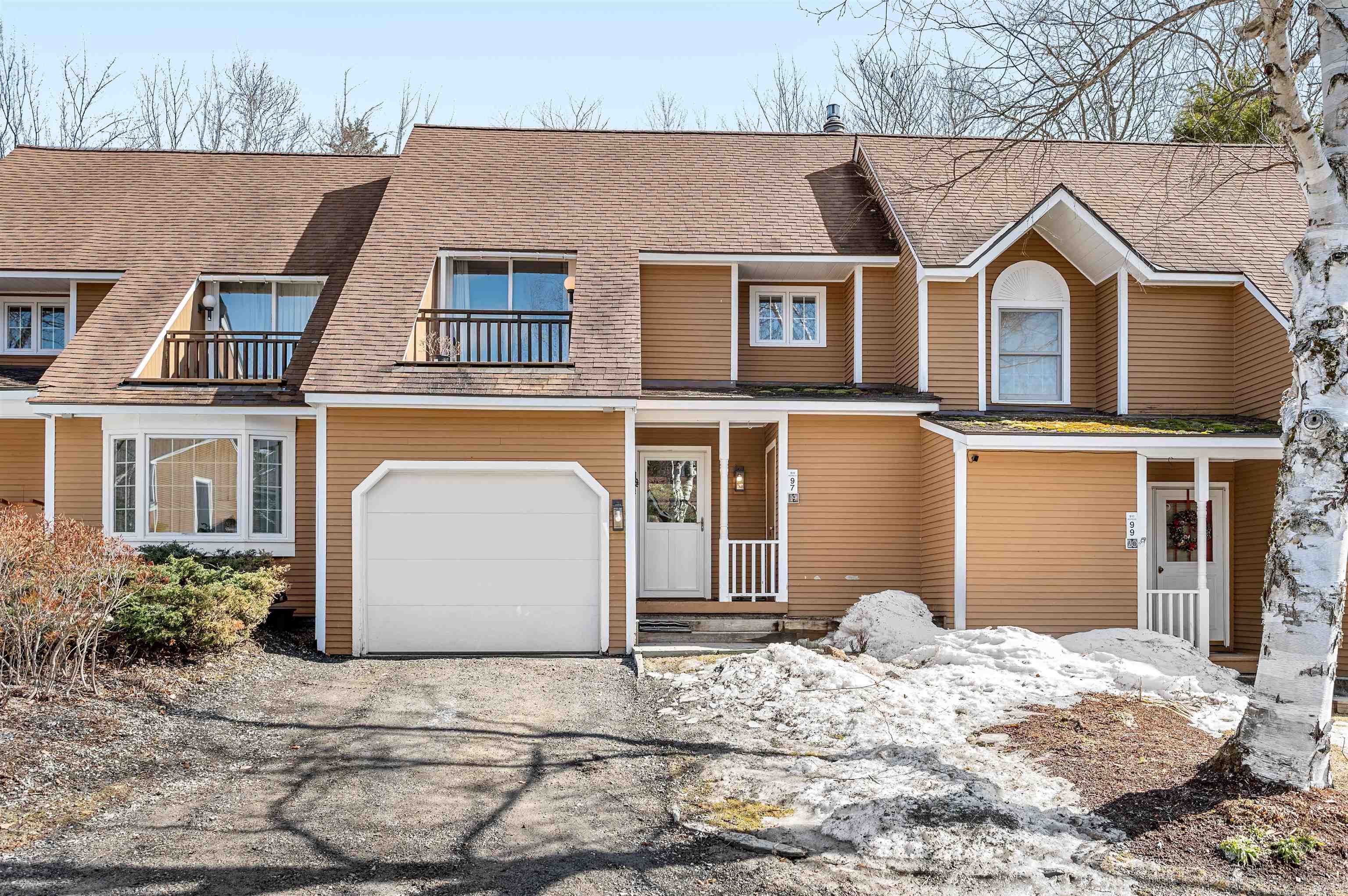 This beautifully updated townhouse-style condo in a highly desirable complex is truly turn-key. Extensive renovations and thoughtful upgrades throughout make this property ready to enjoy from day one. Enter through the tiled mudroom with in-floor radiant heat from either the front entrance or the attached garage, an uncommon and highly desirable feature for condos in this area. The completely renovated kitchen features hickory cabinetry, granite countertops, Moen faucet with dedicated filtered water spout, and a breakfast bar for casual dining. For added convenience, the stacked washer and dryer were relocated upstairs, creating additional pantry storage in the kitchen. Since 2018, the home has been refreshed with new flooring, lighting, and furnishings, including a queen Murphy bed in the living room to comfortably accommodate extra guests. After a day on the slopes, unwind by the cozy gas fireplace or enjoy sunny afternoons on the private back deck. The main level also includes a powder room and two spacious storage closets. Upstairs, you’ll find two generously sized bedrooms, each with its own updated en-suite bathroom, offering comfort and privacy for family and guests alike. Ideally located on the Mad Bus shuttle route and directly across from Alpine Options Ski Shop, this property is just minutes from world-class skiing at Sugarbush Resort and Mad River Glen. In the warmer months, residents can enjoy the community pool and tennis courts, making this an ideal year-round getaway in the Mad River Valley.