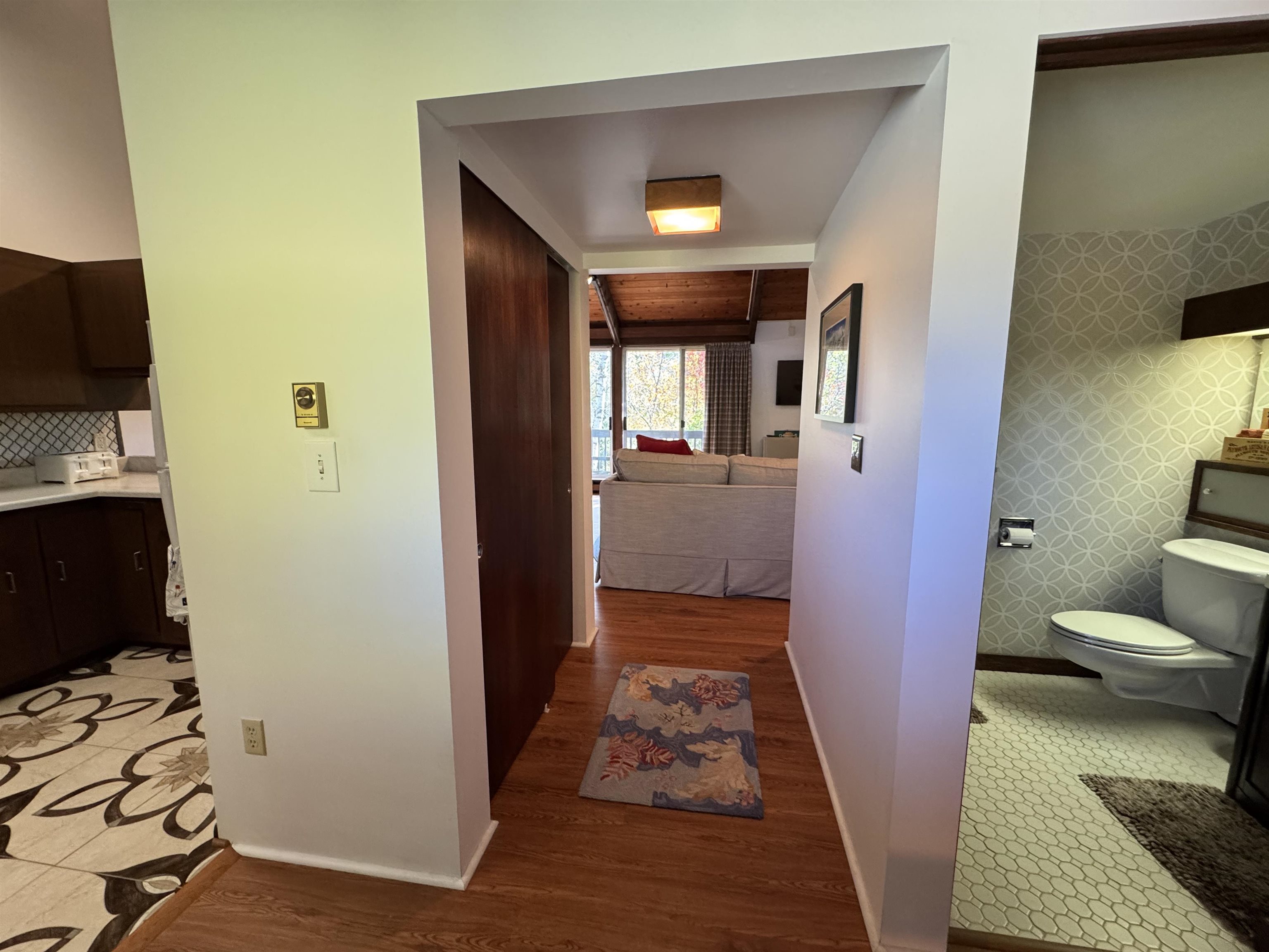 Beautiful 2 bedroom, 1.5 bath condo offering the perfect blend of comfort, convenience, and mountain charm. Enter at ground level to two spacious bedrooms, with 1 full bath, plus in-unit laundry for added ease. Upstairs, enjoy an open concept living area featuring a half bath, vaulted ceiling, cozy fireplace, and abundant natural light. The kitchen flows seamlessly into the dining and living spaces, making it ideal for entertaining. Step out onto the private deck to take in stunning mountain views. One car garage space with extra storage for bikes, skis, and gear. Outdoor pool and tennis courts within the complex. Prime walk-to-town location! Perfect as a full-time residence, vacation getaway, or investment opportunity. Unit comes fully furnished minus artwork and personal items.