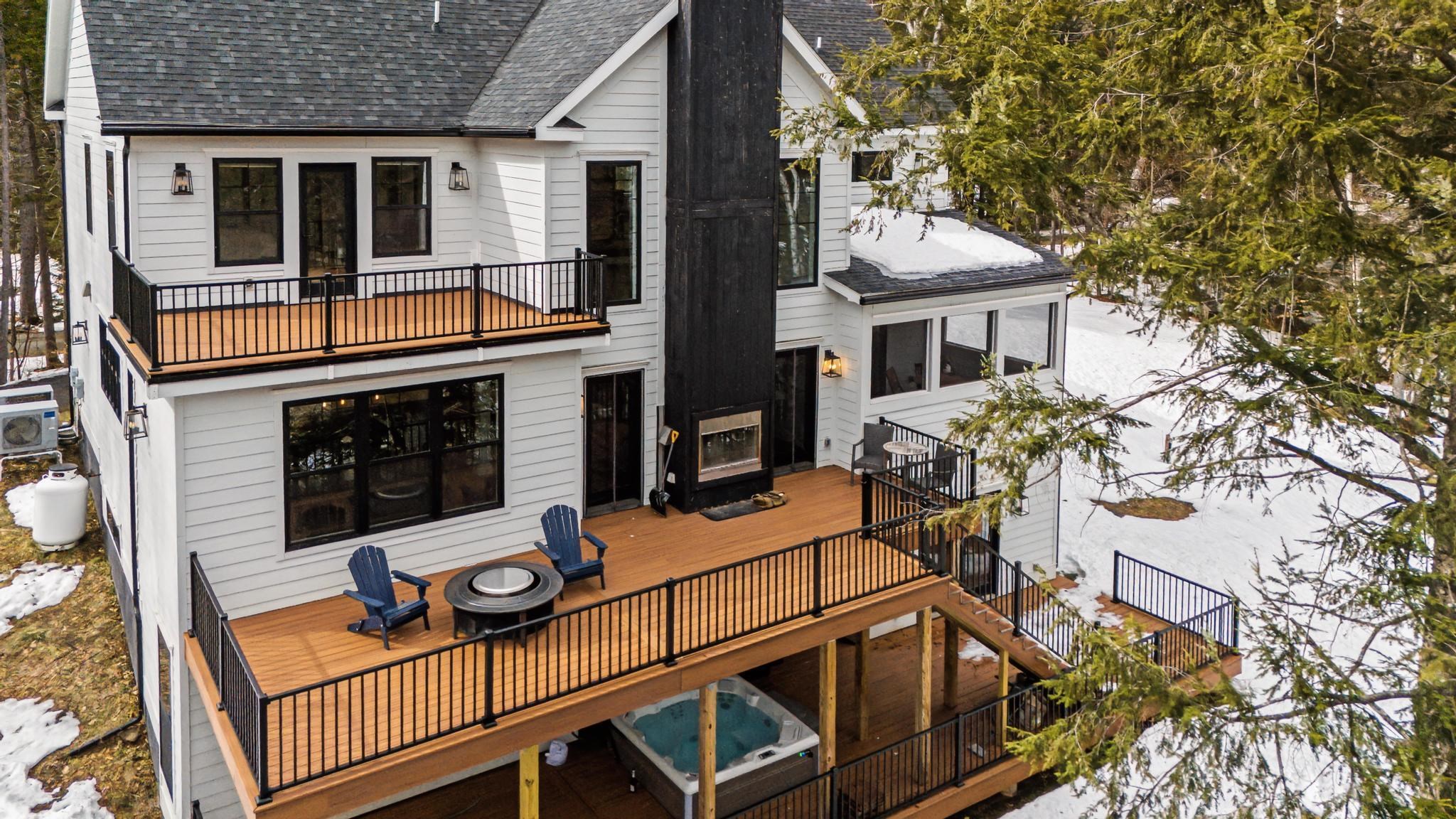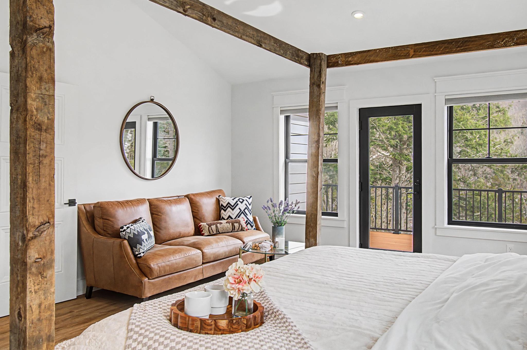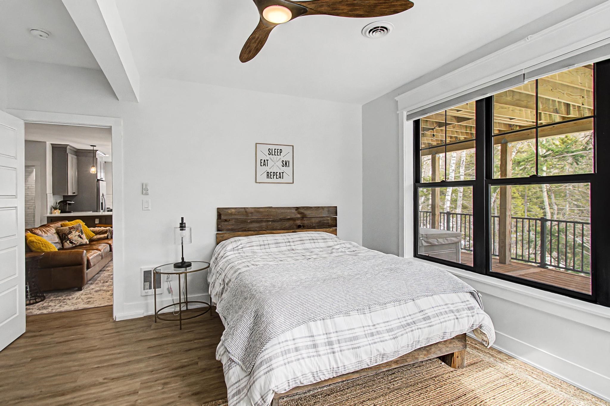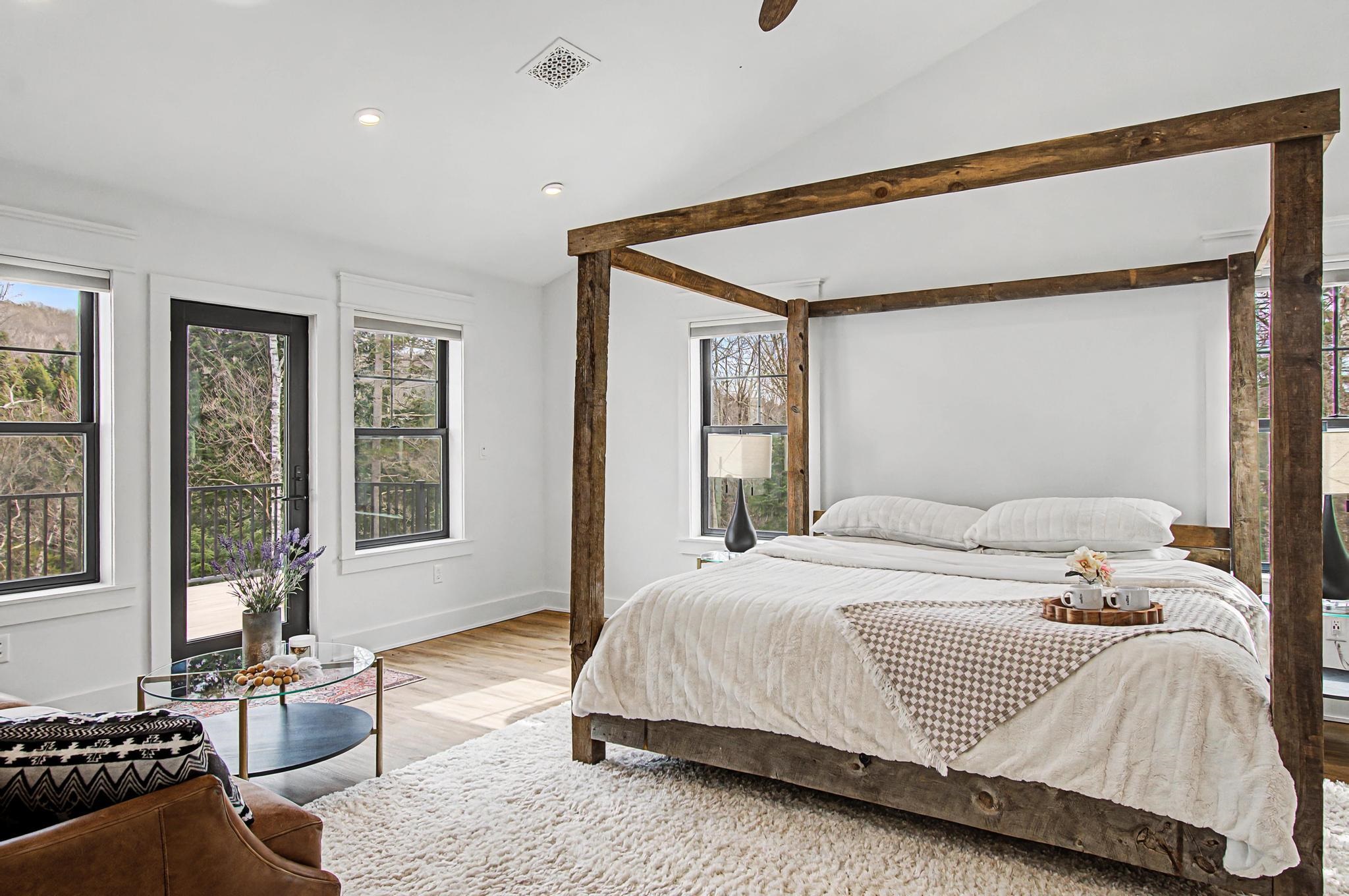 Experience refined mountain living in this luxury mountain retreat located in one of Vermont’s most beloved ski destinations in the heart of the Mad River Valley. Perfectly positioned between Lincoln Peak and Mount Ellen, just minutes from Sugarbush Resort and located on the Sugarbush shuttle route. Completed in 2021, this modern home sits on 2.1 acres and offers approx 5, 000 square feet of thoughtfully designed living space across three levels, including a fully equipped lower-level walk-out accessory apartment ideal for guests or rental, complete with a full kitchen and private deck with a hot tub. The main level features an open-concept layout with a dramatic great room rising to the second floor. Ten-foot ceilings and expansive Anderson black-frame windows fill the space with natural light while framing the surrounding landscape. A wood-burning fireplace anchors the living area. The luxurious chef’s kitchen is designed for both function and entertaining, featuring Bertazzoni appliances and an oversized island with quartz countertop. The main level is complete with a bedroom, a full bathroom, a mudroom and washer/dryer. The second level offers a private retreat. A large landing overlooks the great room below, creating an open connection between floors. The marvelous primary suite features an ensuite bathroom with a two-person walk-in shower and a private balcony overlooking the backyard. Two additional bedrooms share a Jack-and-Jill bathroom, providing comfortable living. Outdoor living is seamlessly integrated with a screened porch, an expansive three-level deck, and an outdoor fireplace. The backyard provides direct access to the Catamount Trail for year-round recreation. Energy-efficient systems include central air conditioning and multiple heating options, such as heat pumps, propane fireplace, and wood-burning fireplace. Fully furnished and move-in ready, this mountain retreat invites you into a lifestyle shaped by the seasons, where luxury meets simplicity