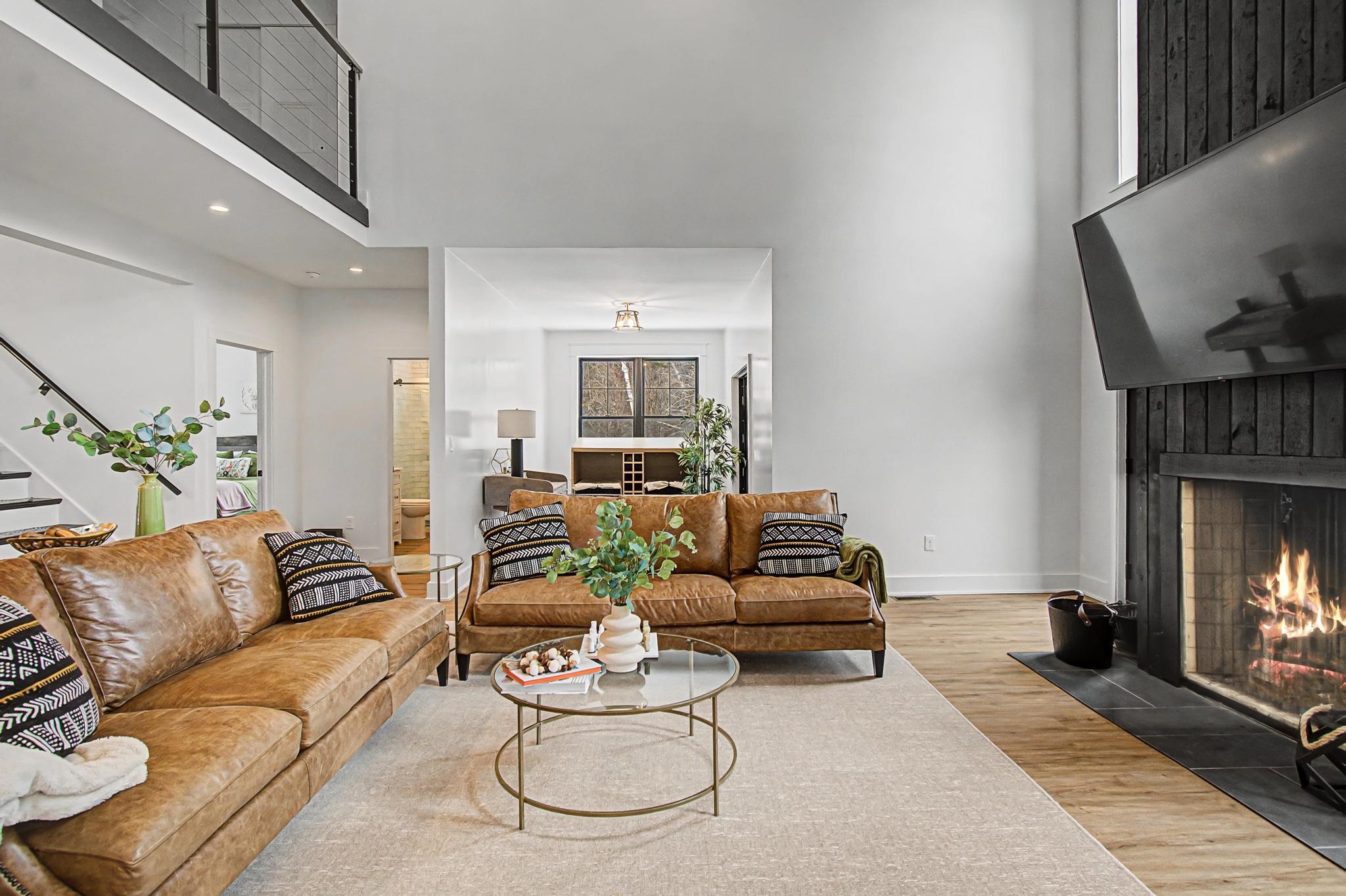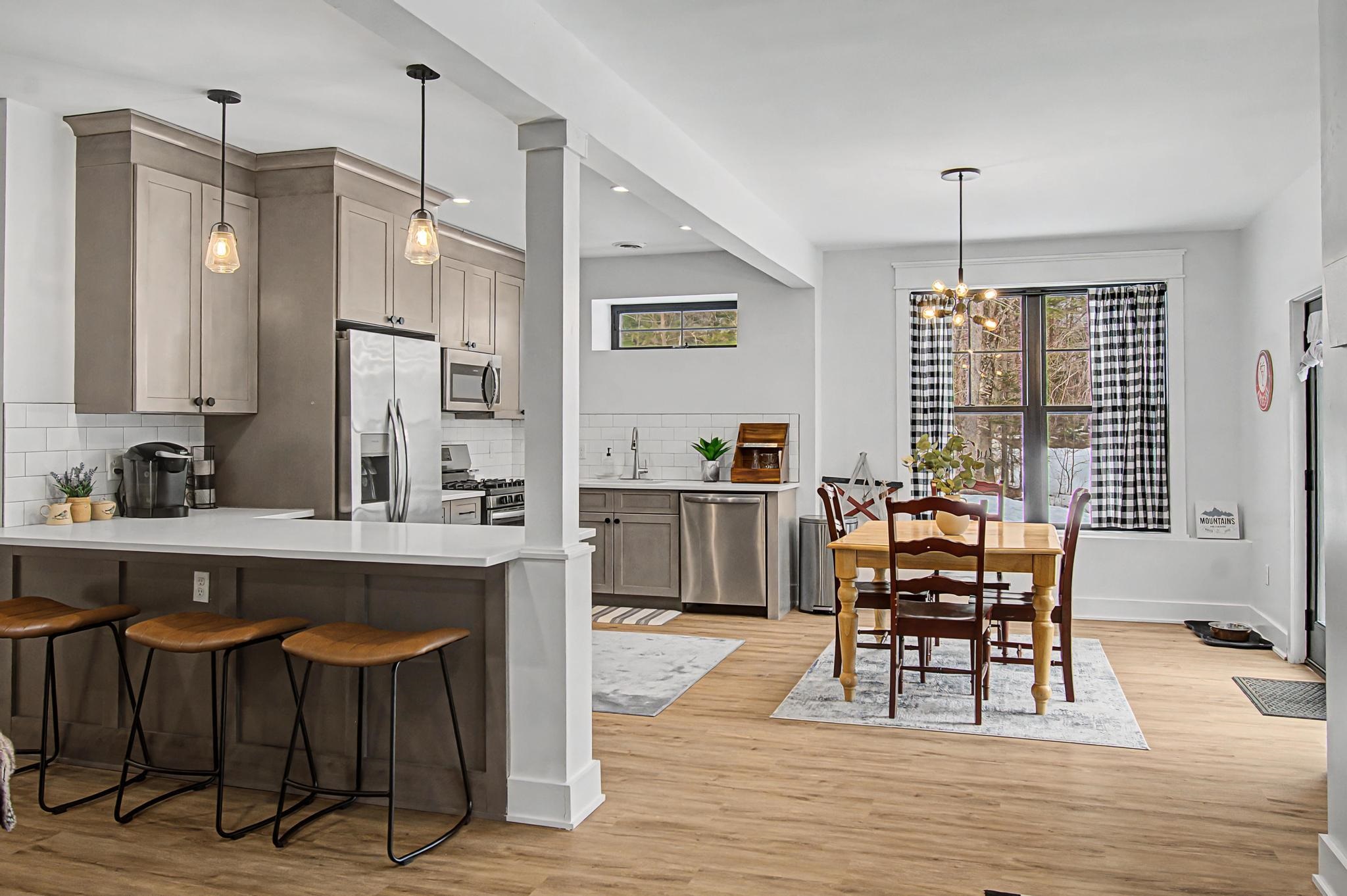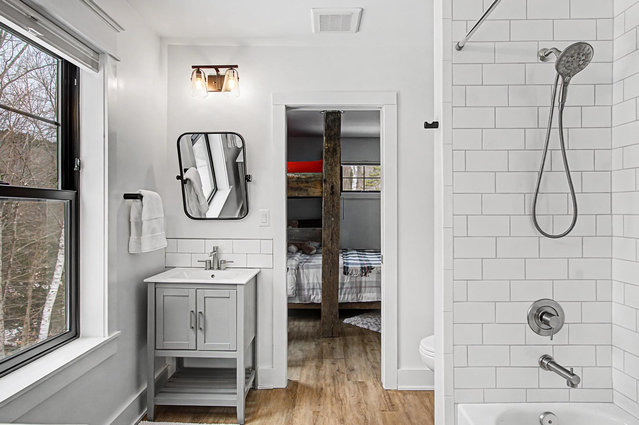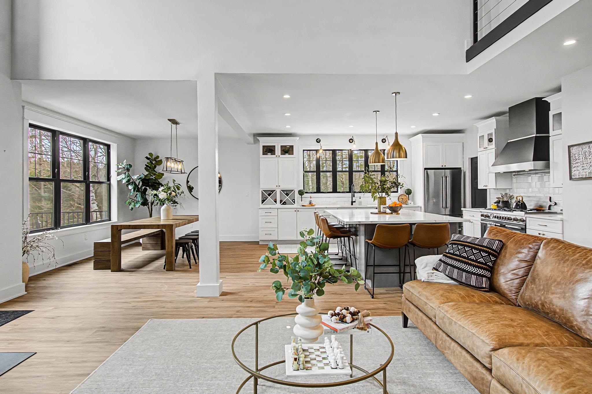 Experience refined mountain living in this luxury mountain retreat located in one of Vermont’s most beloved ski destinations in the heart of the Mad River Valley. Perfectly positioned between Lincoln Peak and Mount Ellen, just minutes from Sugarbush Resort and located on the Sugarbush shuttle route. Completed in 2021, this modern home sits on 2.1 acres and offers approx 5, 000 square feet of thoughtfully designed living space across three levels, including a fully equipped lower-level walk-out accessory apartment ideal for guests or rental, complete with a full kitchen and private deck with a hot tub. The main level features an open-concept layout with a dramatic great room rising to the second floor. Ten-foot ceilings and expansive Anderson black-frame windows fill the space with natural light while framing the surrounding landscape. A wood-burning fireplace anchors the living area. The luxurious chef’s kitchen is designed for both function and entertaining, featuring Bertazzoni appliances and an oversized island with quartz countertop. The main level is complete with a bedroom, a full bathroom, a mudroom and washer/dryer. The second level offers a private retreat. A large landing overlooks the great room below, creating an open connection between floors. The marvelous primary suite features an ensuite bathroom with a two-person walk-in shower and a private balcony overlooking the backyard. Two additional bedrooms share a Jack-and-Jill bathroom, providing comfortable living. Outdoor living is seamlessly integrated with a screened porch, an expansive three-level deck, and an outdoor fireplace. The backyard provides direct access to the Catamount Trail for year-round recreation. Energy-efficient systems include central air conditioning and multiple heating options, such as heat pumps, propane fireplace, and wood-burning fireplace. Fully furnished and move-in ready, this mountain retreat invites you into a lifestyle shaped by the seasons, where luxury meets simplicity