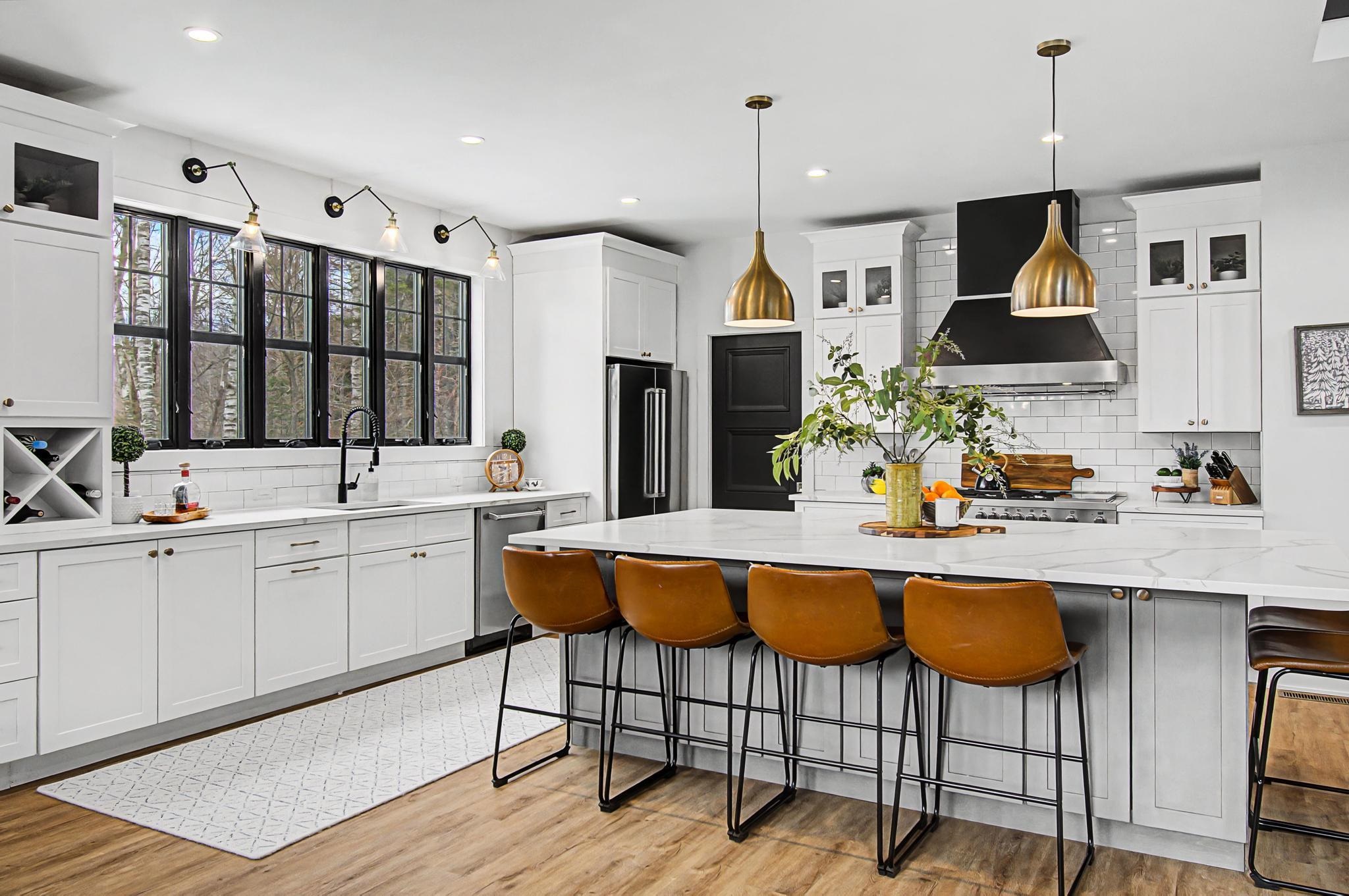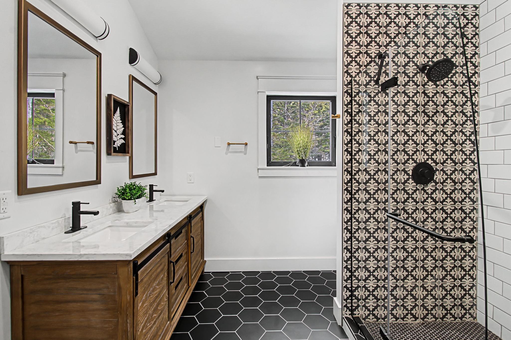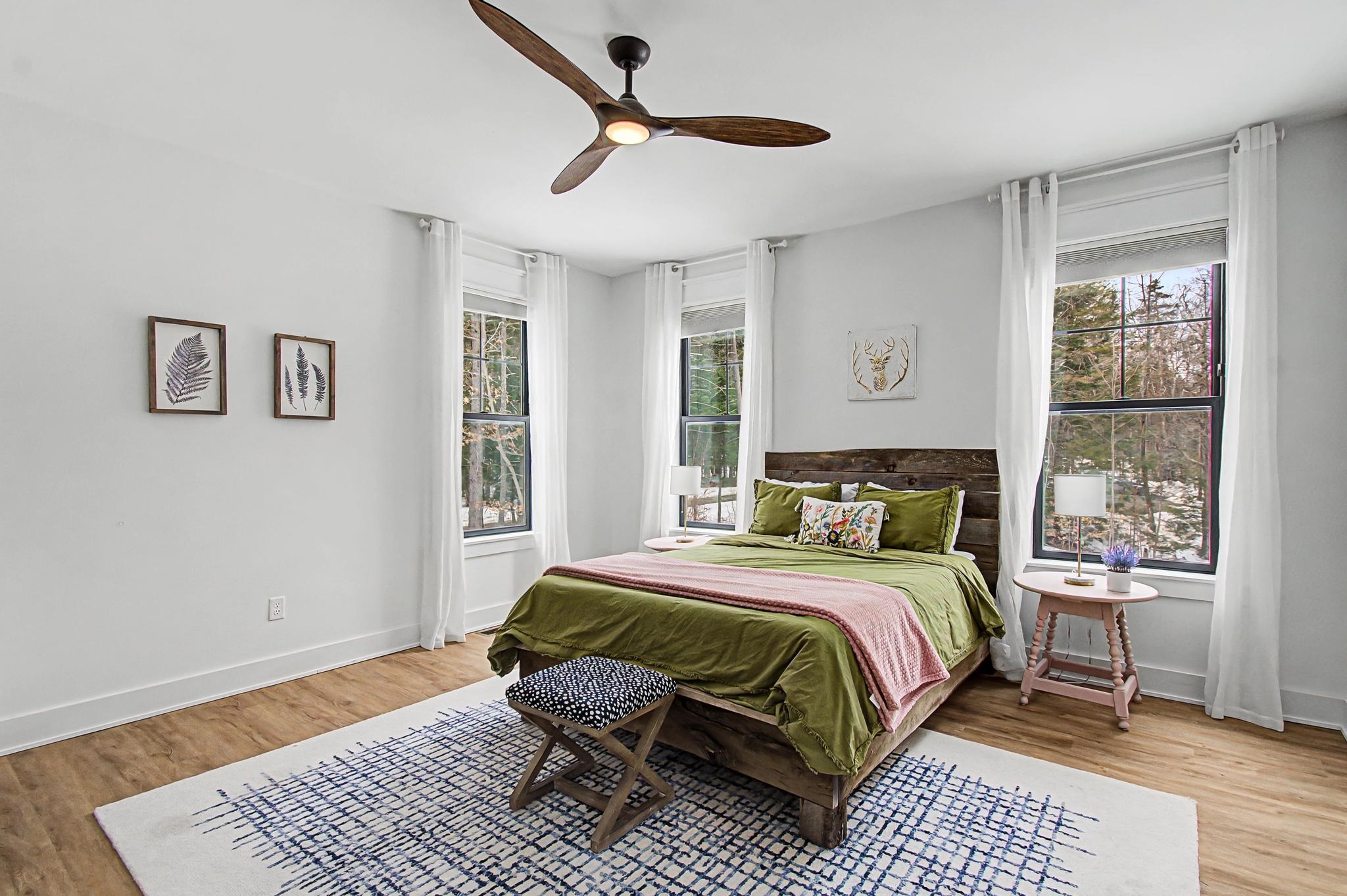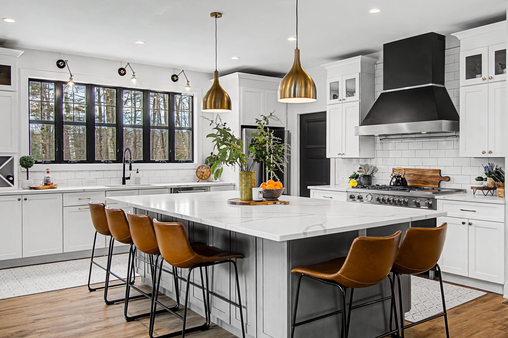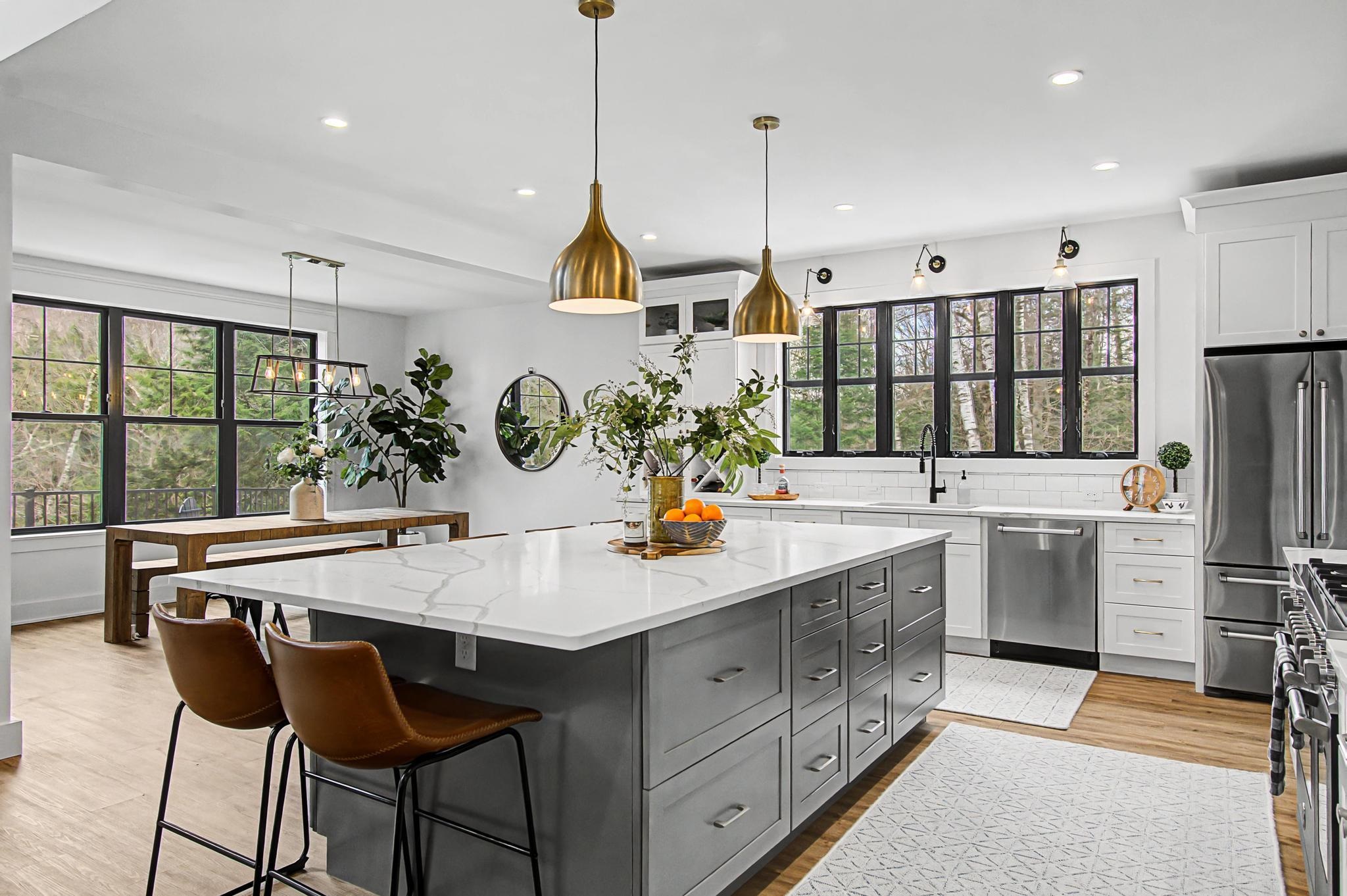 Experience refined mountain living in this luxury mountain retreat located in one of Vermont’s most beloved ski destinations in the heart of the Mad River Valley. Perfectly positioned between Lincoln Peak and Mount Ellen, just minutes from Sugarbush Resort and located on the Sugarbush shuttle route. Completed in 2021, this modern home sits on 2.1 acres and offers approx 5, 000 square feet of thoughtfully designed living space across three levels, including a fully equipped lower-level walk-out accessory apartment ideal for guests or rental, complete with a full kitchen and private deck with a hot tub. The main level features an open-concept layout with a dramatic great room rising to the second floor. Ten-foot ceilings and expansive Anderson black-frame windows fill the space with natural light while framing the surrounding landscape. A wood-burning fireplace anchors the living area. The luxurious chef’s kitchen is designed for both function and entertaining, featuring Bertazzoni appliances and an oversized island with quartz countertop. The main level is complete with a bedroom, a full bathroom, a mudroom and washer/dryer. The second level offers a private retreat. A large landing overlooks the great room below, creating an open connection between floors. The marvelous primary suite features an ensuite bathroom with a two-person walk-in shower and a private balcony overlooking the backyard. Two additional bedrooms share a Jack-and-Jill bathroom, providing comfortable living. Outdoor living is seamlessly integrated with a screened porch, an expansive three-level deck, and an outdoor fireplace. The backyard provides direct access to the Catamount Trail for year-round recreation. Energy-efficient systems include central air conditioning and multiple heating options, such as heat pumps, propane fireplace, and wood-burning fireplace. Fully furnished and move-in ready, this mountain retreat invites you into a lifestyle shaped by the seasons, where luxury meets simplicity