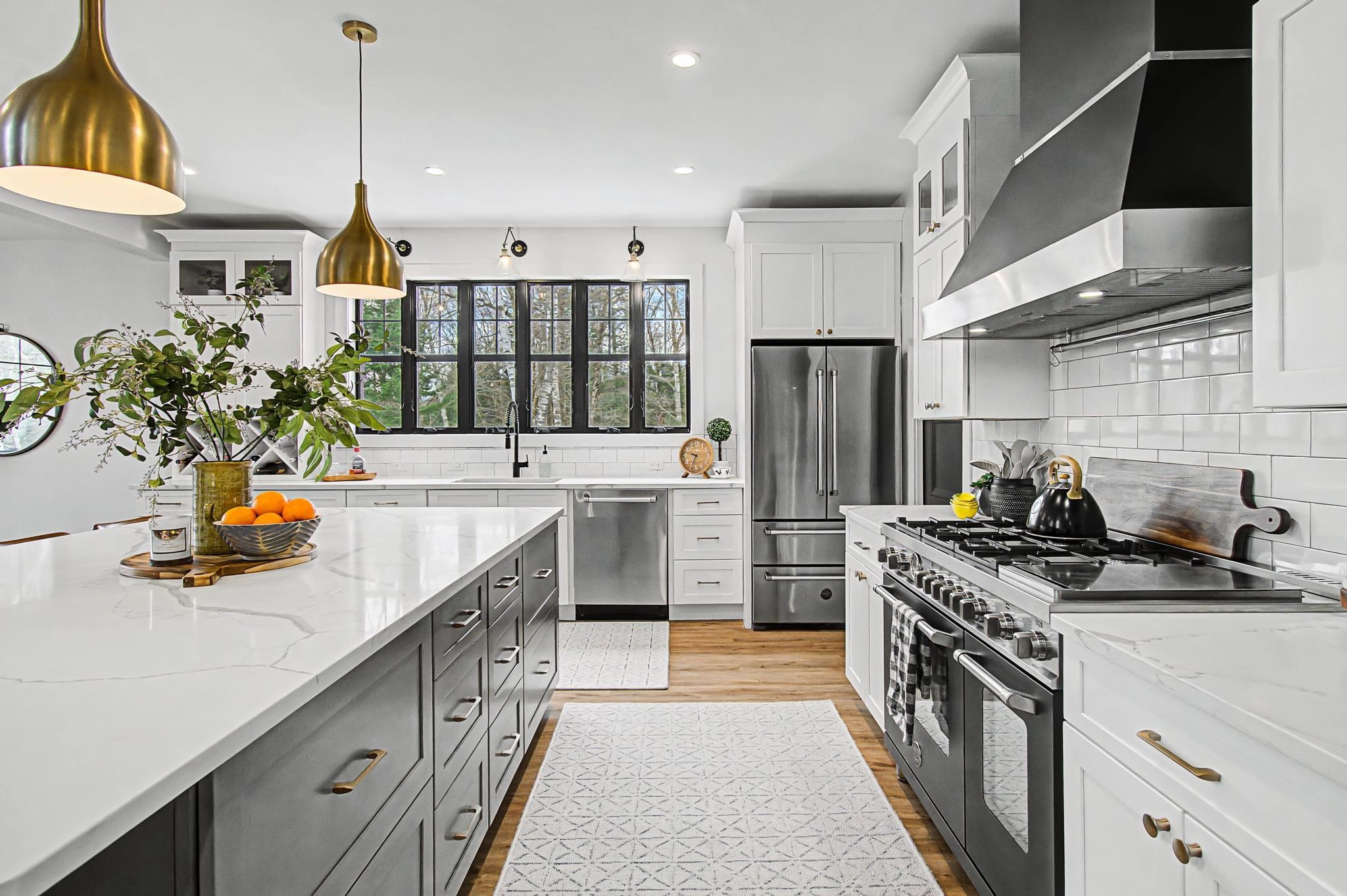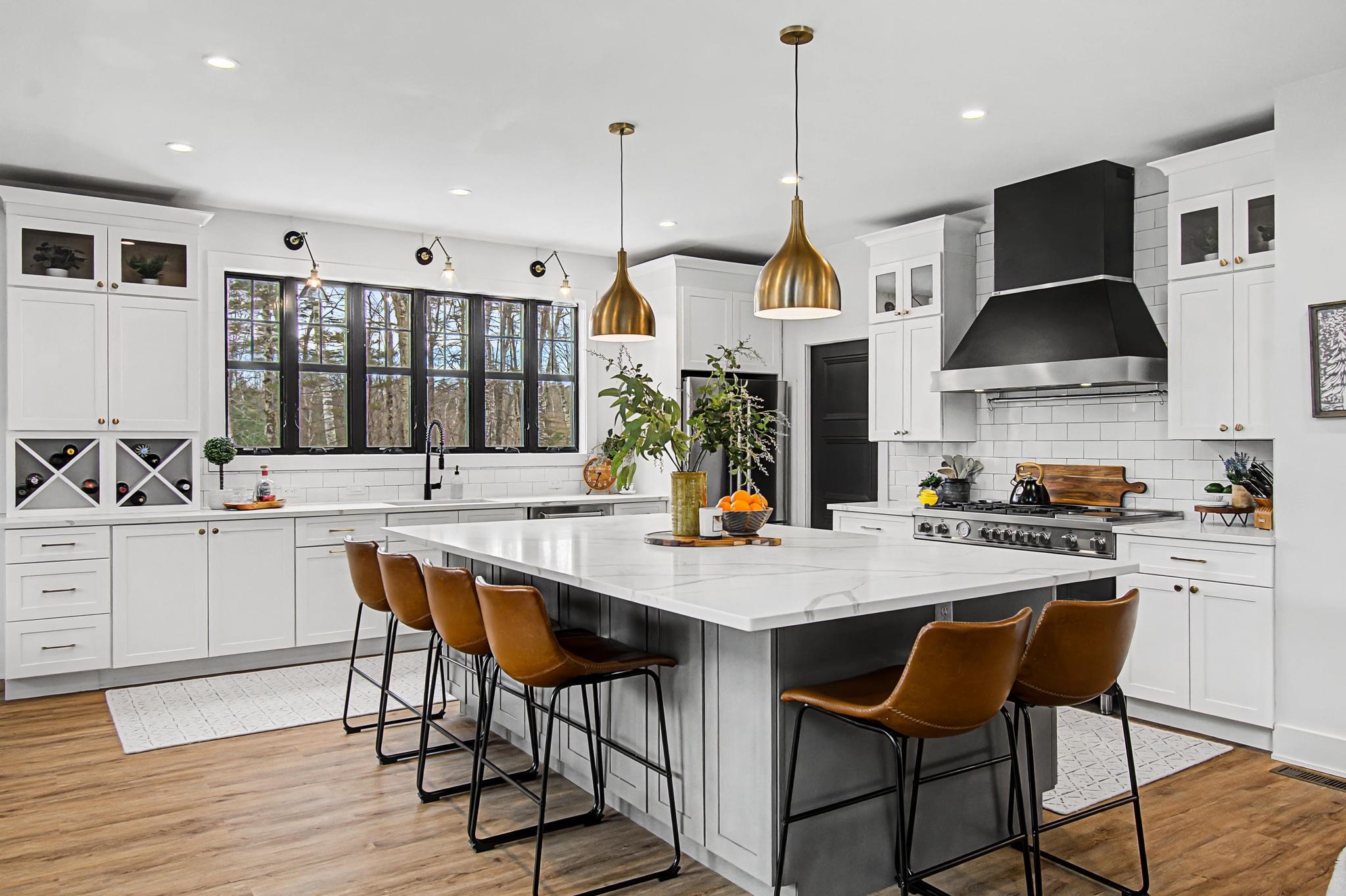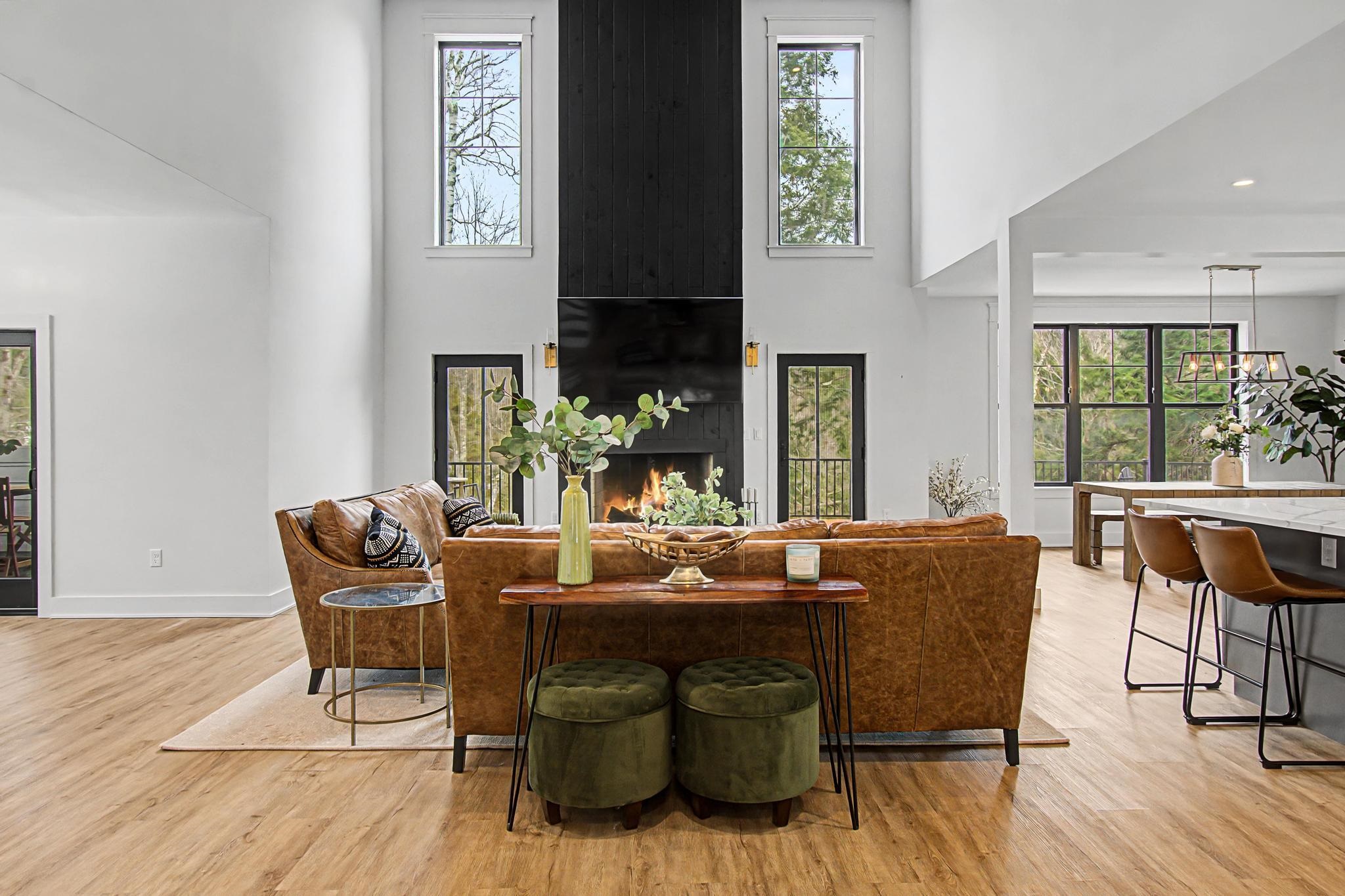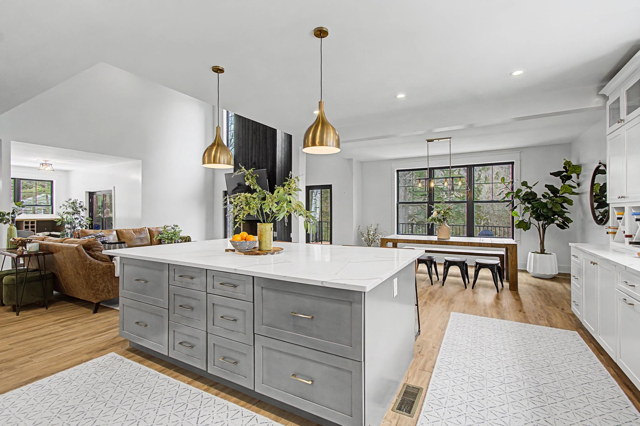 Experience refined mountain living in this luxury mountain retreat located in one of Vermont’s most beloved ski destinations in the heart of the Mad River Valley. Perfectly positioned between Lincoln Peak and Mount Ellen, just minutes from Sugarbush Resort and located on the Sugarbush shuttle route. Completed in 2021, this modern home sits on 2.1 acres and offers approx 5, 000 square feet of thoughtfully designed living space across three levels, including a fully equipped lower-level walk-out accessory apartment ideal for guests or rental, complete with a full kitchen and private deck with a hot tub. The main level features an open-concept layout with a dramatic great room rising to the second floor. Ten-foot ceilings and expansive Anderson black-frame windows fill the space with natural light while framing the surrounding landscape. A wood-burning fireplace anchors the living area. The luxurious chef’s kitchen is designed for both function and entertaining, featuring Bertazzoni appliances and an oversized island with quartz countertop. The main level is complete with a bedroom, a full bathroom, a mudroom and washer/dryer. The second level offers a private retreat. A large landing overlooks the great room below, creating an open connection between floors. The marvelous primary suite features an ensuite bathroom with a two-person walk-in shower and a private balcony overlooking the backyard. Two additional bedrooms share a Jack-and-Jill bathroom, providing comfortable living. Outdoor living is seamlessly integrated with a screened porch, an expansive three-level deck, and an outdoor fireplace. The backyard provides direct access to the Catamount Trail for year-round recreation. Energy-efficient systems include central air conditioning and multiple heating options, such as heat pumps, propane fireplace, and wood-burning fireplace. Fully furnished and move-in ready, this mountain retreat invites you into a lifestyle shaped by the seasons, where luxury meets simplicity