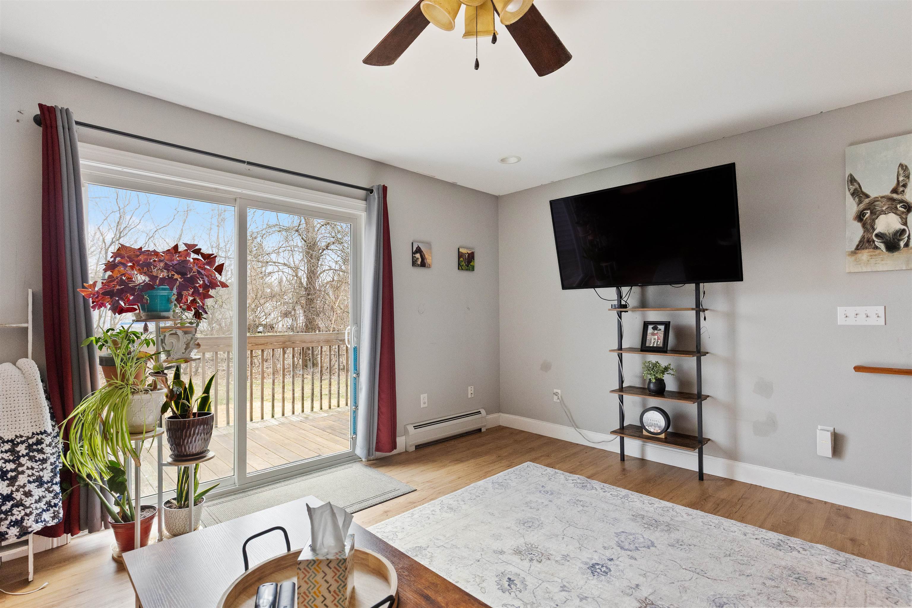 Built in 2019, this was the last building constructed in Nokes Knoll, offering the next owner the benefit of newer mechanicals, appliances, electrical, windows, doors, and years of low-maintenance living ahead. Tucked at the end of the street on a cul-de-sac, the location is less than two miles from Swanton Beach and the Lake Street boat launch. Enjoy the convenience of attached garage parking with an automatic door opener, and leave snow-covered mornings behind next winter. The spacious eat-in kitchen features handsome natural wood cabinetry, abundant counter space, a natural gas range, and matching appliances, with the convenience of a nearby half bath to service the first floor. Solid-surface laminate flooring continues into the living room, where a large sliding glass door opens to a south-facing pressure-treated deck. Upstairs, the generous primary bedroom enjoys southern exposure and a private full bath. A second bedroom sits adjacent to the full hall bath, while a large north-facing den or office overlooks the cul-de-sac. The expansive basement provides clean storage space, and laundry area with washer and dryer. Heat is via a natural gas Weil McLain boiler, and hot water by an efficient Bradford White heat pump hot water tank with programmable options for efficiency. Swanton Green is just minutes away for restaurants, shopping, and everyday services, with I-89 Exit 21 nearby for easy access to Quebec, St. Albans, and Burlington. A smart investment in comfort, convenience, and easy upkeep for years to come.