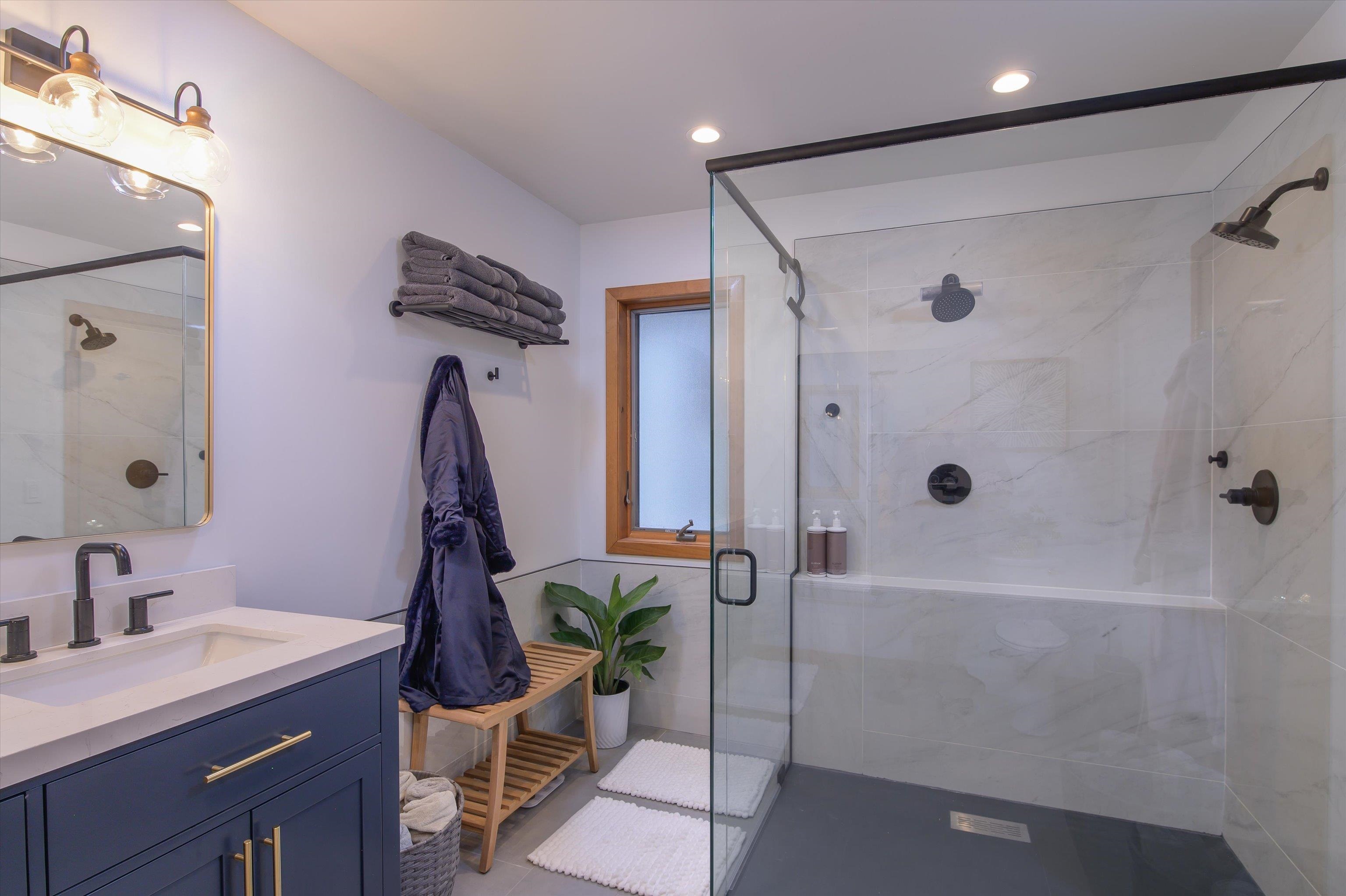 This stunning contemporary home blends timeless Vermont charm with exceptional versatility—just moments from Okemo Mountain. Offering 5 bedrooms, 3.5 baths, and over 4, 000 square feet across three light-filled levels, the home is thoughtfully designed for both relaxed living and effortless entertaining. The beautifully renovated oversized kitchen serves as the heart of the home, ideal for gathering and hosting. The dramatic living room features soaring cathedral ceilings, a floor-to-ceiling stone fireplace, and sliders that open to an expansive Trex deck with hot tub—perfect for après-ski evenings. The main-level primary suite offers privacy and convenience, complete with an updated bath and modern finishes. Additional bedrooms and a separate den provide generous space for guests, while a versatile lower-level bonus room is ideal for a gym, studio, or storage. A rare highlight is the commercial-use space attached to the garage currently operating as a business, offering immediate income potential and flexibility for a variety of uses. With a strong rental history and offered mostly furnished, this turnkey property is ideal for continued short-term rental income or personal enjoyment. Located just a 2-minute drive (or 10-minute walk) to Okemo, with ski-home potential in favorable conditions. Recent upgrades include a new roof (2021), Trex decking, fresh exterior paint (2025), and expanded parking. A unique opportunity to own a versatile, income-producing property in one of Ludlow’s most desirable locations.