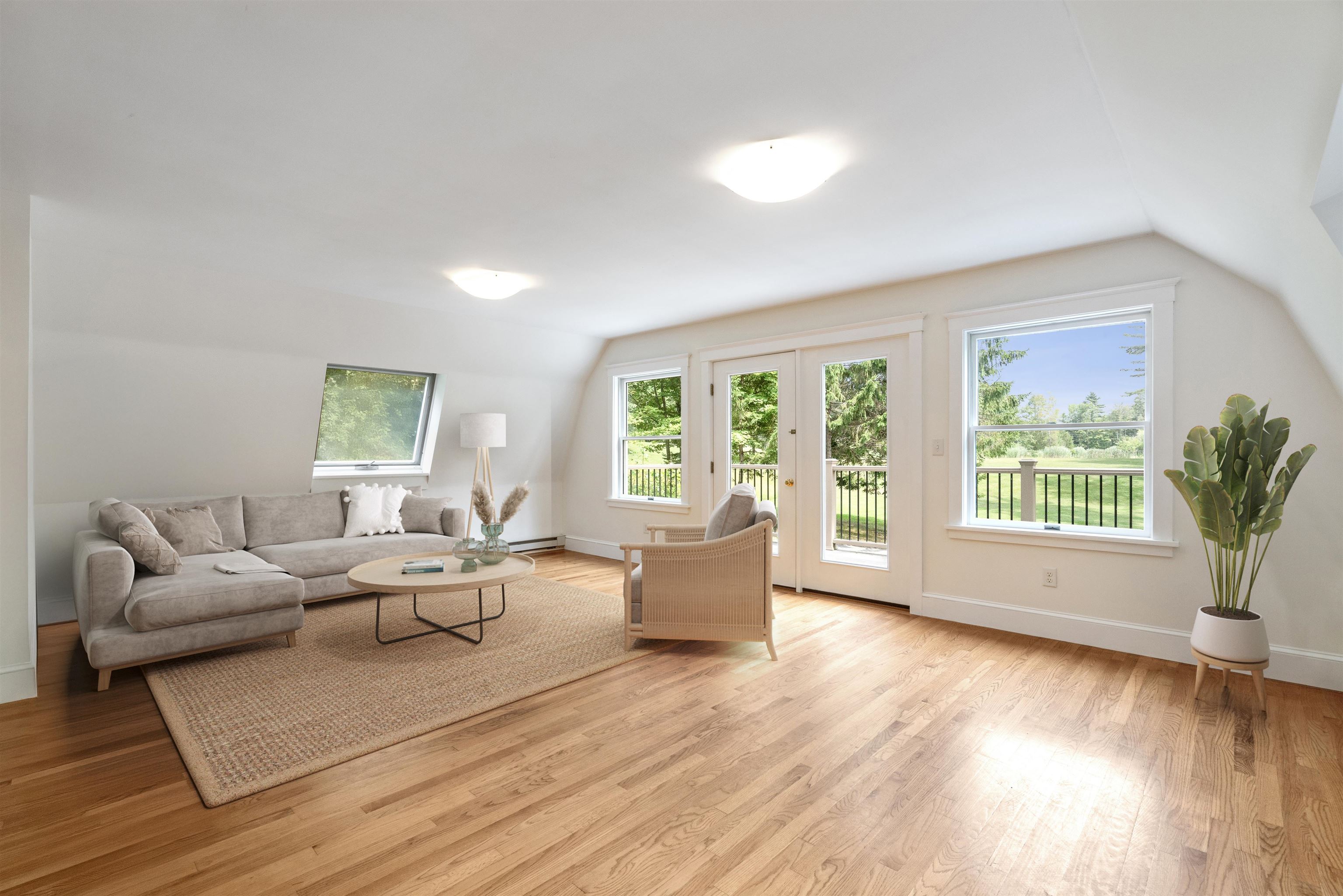 207 WILLEY HILL ROAD- Gorgeous, recently updated, sophisticated home a stone's throw away from Norwich, Hanover, Dartmouth College, and the best of the Upper Valley. Expertly renovated by renowned builders O’Hara & Gercke, the result is a seamless blend of luxury, charm, and comfort. The sunlit gourmet kitchen is both functional and elegant and commands breathtaking views of the pond, with an adjoining living room featuring a striking stone fireplace and a sizable deck both offering year-round enjoyment and entertainment. The main floor also includes a library/bedroom and a guest bedroom with scenic views of the lovely grounds. Upstairs, the spa-like primary suite is immersed in nature, with sunrise views and a luxurious soaking tub beneath the sky, while a second ensuite bedroom completes the level. On the lower level is a spacious family room opening to a stone patio plus a multi-purpose room that can be used as either a bedroom or office. The main house was the former home of beloved children's television actor & producer Bob Keeshan, better known as Captain Kangaroo. A separate two-bedroom guest house with a strong rental history adds versatility and possibility to the property. The dwellings are set on 17 private acres with a wildlife-rich pond as its center, beautifully landscaped grounds drawing seasonal long-range views, a pool, woodland trail, and a park-like fenced area. A detached four-bay garage provides ample additional space for cars and storage. This exceptional property is a rare combination of convenience and luxury in a highly desirable locale. Note: Some guest house photos are virtually staged.