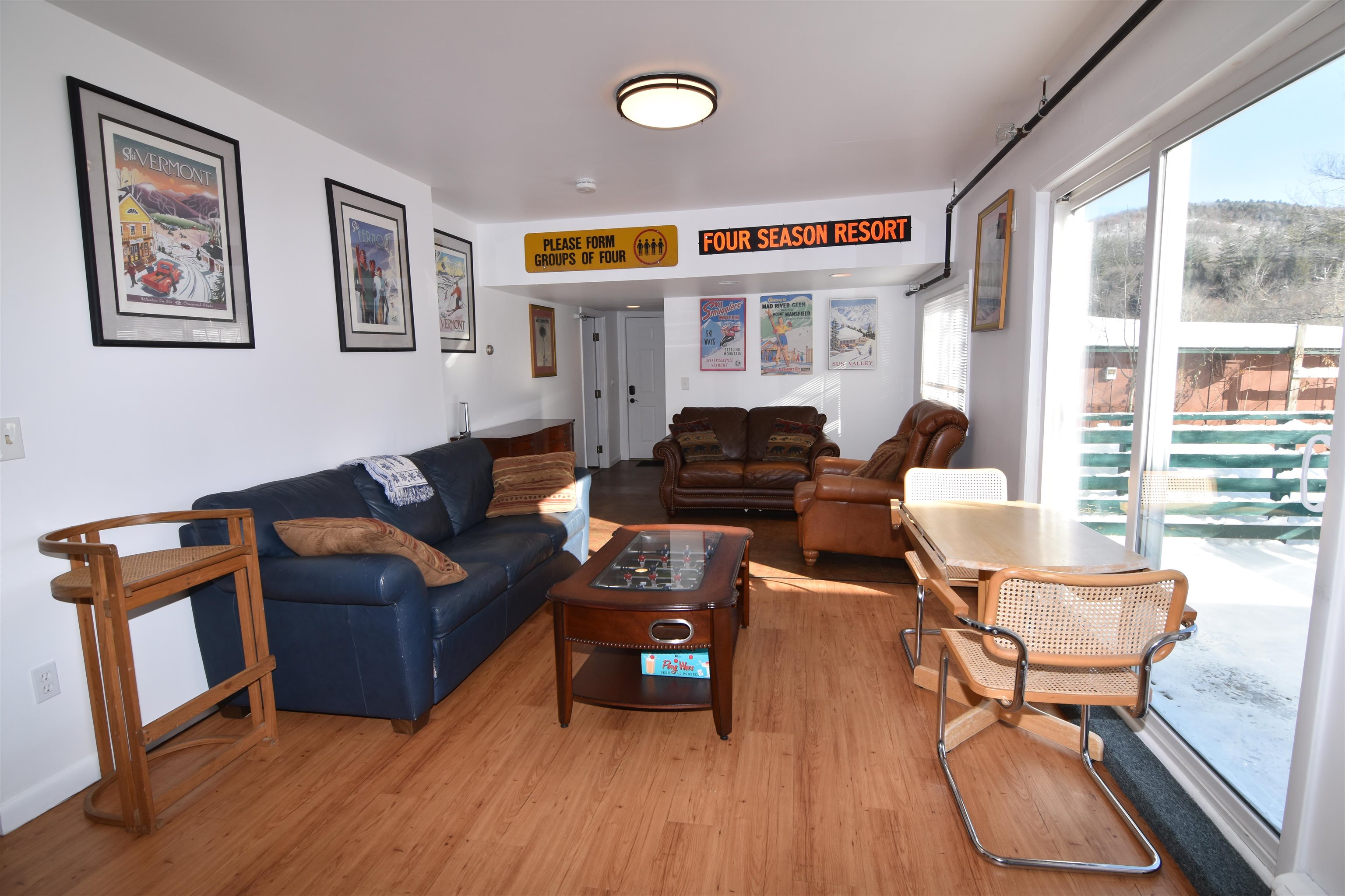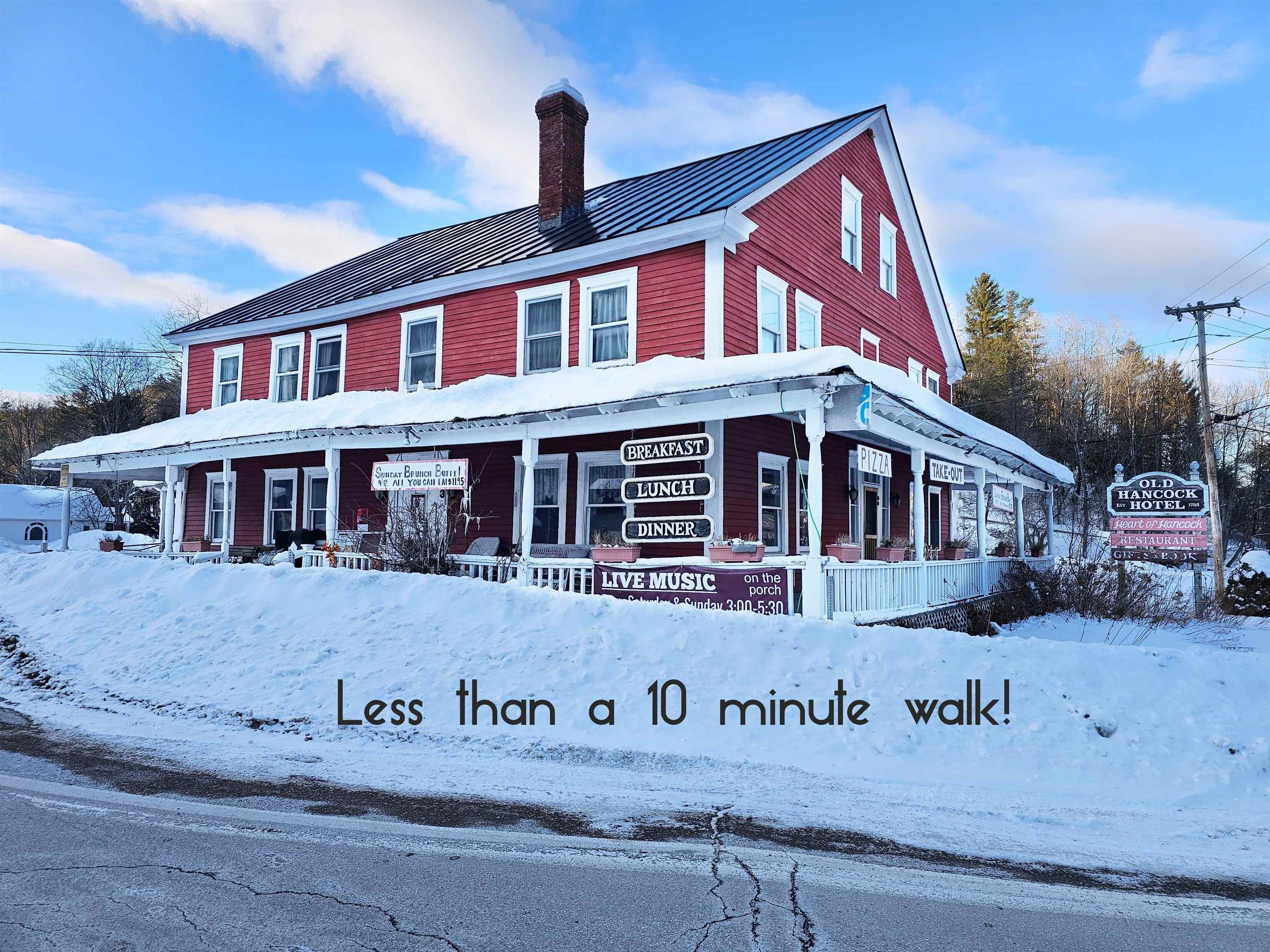 Rare Turnkey Mountain Lodge, ski home, Bed & Breakfast, vacation rental, group home, or retreat facility. Perfect for a large multi-generational family wanting to be together yet in a separate space. This property is basically two full homes attached by a breezeway. Several commercial opportunities are available. This one of a kind property offers exceptional versatility, character, and income potential. This 16 room 3, 874 square foot home has 9/10 bedrooms, 3.5 baths, and a sauna. Set on a level 1 acre lot with mountain views across from the Hancock Town Green, this is the perfect location to enjoy community events and be within a ten minute walk of village amenities. Built circa 1900, this home has been extensively updated since 2022 with fresh paint, new flooring, updated appliances and an on demand boiler. Other amenities include a commercial sprinkler system, backup generator, high speed internet, and parking for 10+ cars. This was formerly a Level 3 assisted living care facility for seniors. The flexible layout features a main house with 4 bedrooms, 1.5 baths, large kitchen, living room, formal dining room, expansive laundry room with storage, enclosed front porch, and deck. The adjoining auxiliary home offers 2/3 bedrooms, a handicap accessible bath, and a common living area on the first floor plus a 3 bedroom second floor apartment with full bath, recreation room with pool table, kitchenette and a large deck with countryside views. A large walk up attic offers even more flexible space. Live in one side while generating income from the other! Conveniently located within 18-28 miles of Sugarbush, Mad River, Pico, and Killington ski areas with unlimited hiking and swimming well as quaint historic towns nearby. This unique lifestyle or income-producing property is ready for immediate use along Vermont’s scenic Route 100 corridor.
