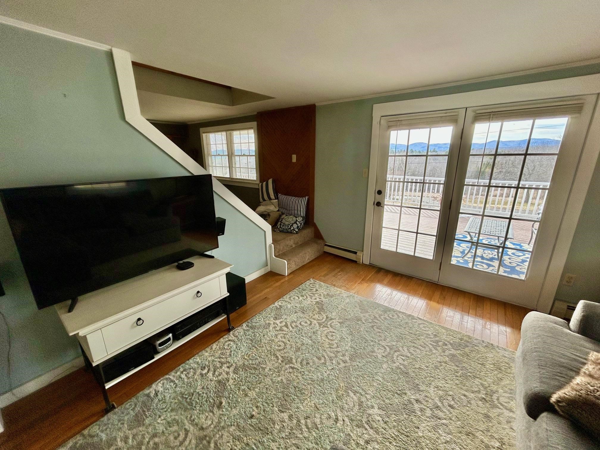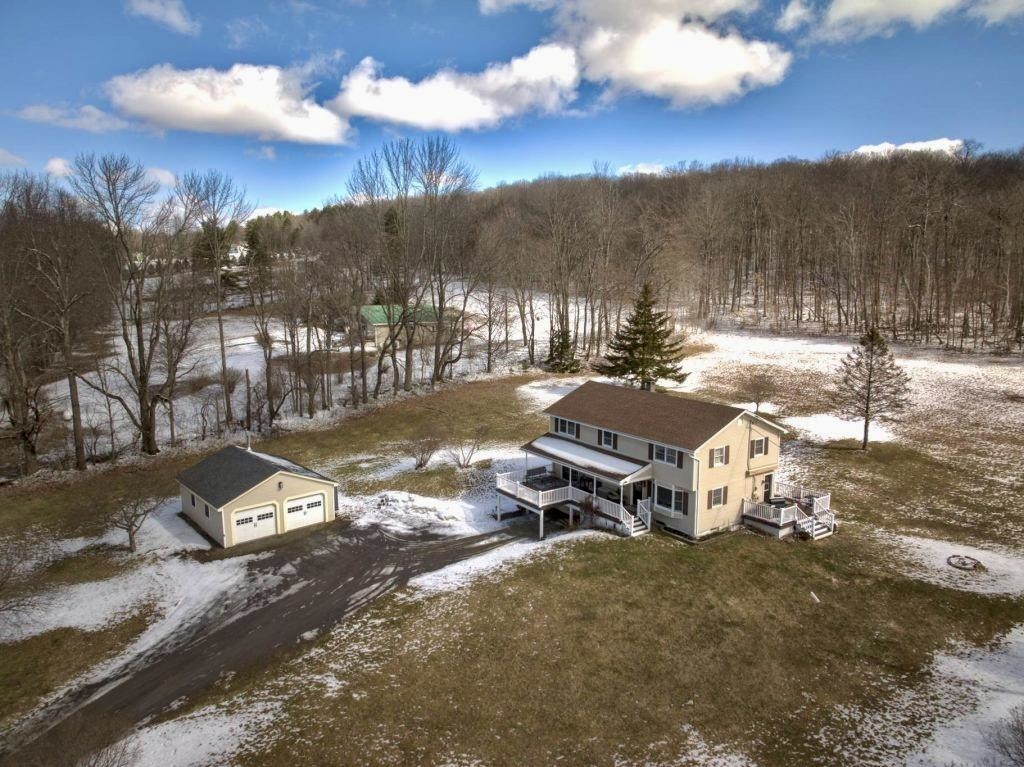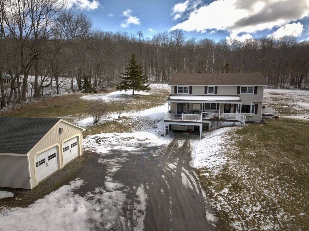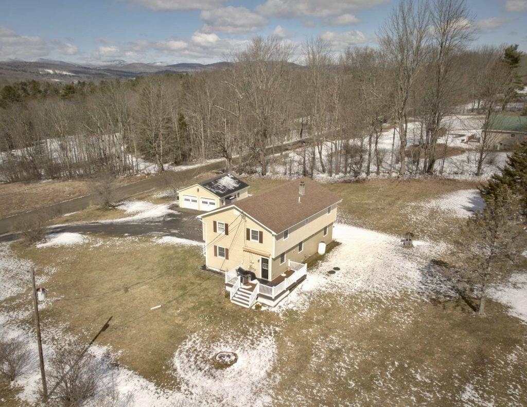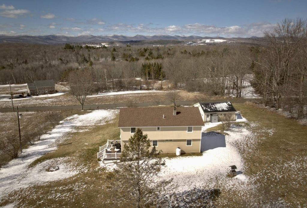 Positioned to capture prized west- and south-facing exposure, the property offers abundant natural light and long-range views toward Killington and the Green Mountains. The heart of the home is a renovated kitchen with shaker-style cabinetry, granite countertops, a dedicated coffee bar, and a large island with seating on both sides. The open dining area flows seamlessly to a grilling deck off the kitchen, extending the gathering space outdoors. The main level is designed for functionality, featuring hardwood flooring, multiple living areas, a propane fireplace, a full bath, and a dedicated office. Upstairs are three generously sized bedrooms, including a primary with double closets, a ¾ bath, and a flexible landing ideal for a workspace or reading nook. The finished walk-out lower level adds fun and functional bonus space with a media room, flexible exercise area, and laundry center. Outside, enjoy mature gardens, a detached two-car garage, and a partially covered front porch perfect for sunsets and entertaining. Set in a tranquil location just minutes to I-89, VAST trails, skiing, and downtown Randolph in the heart of Vermont, this move-in-ready home combines comfort, style, and convenience—ready to impress!