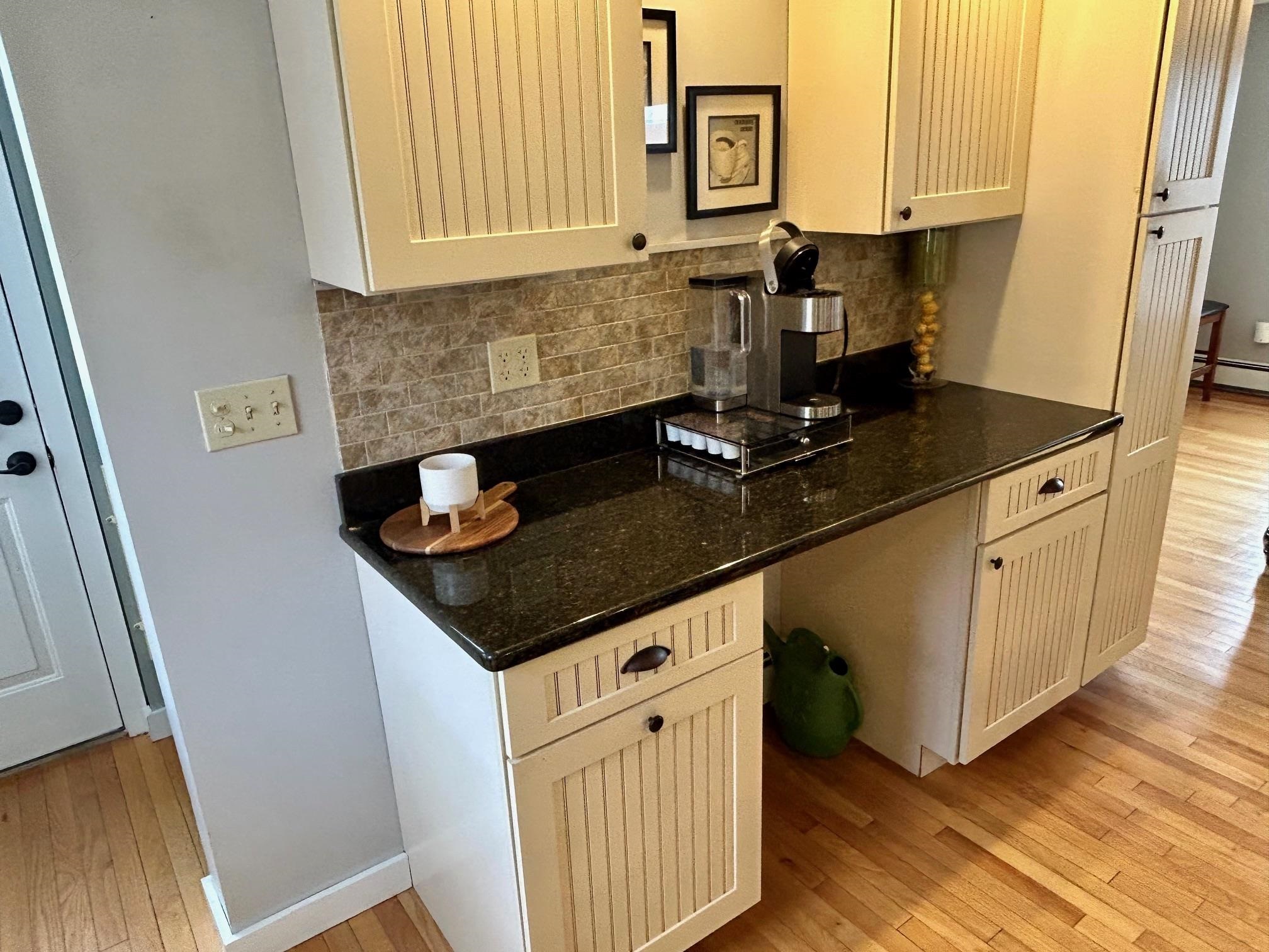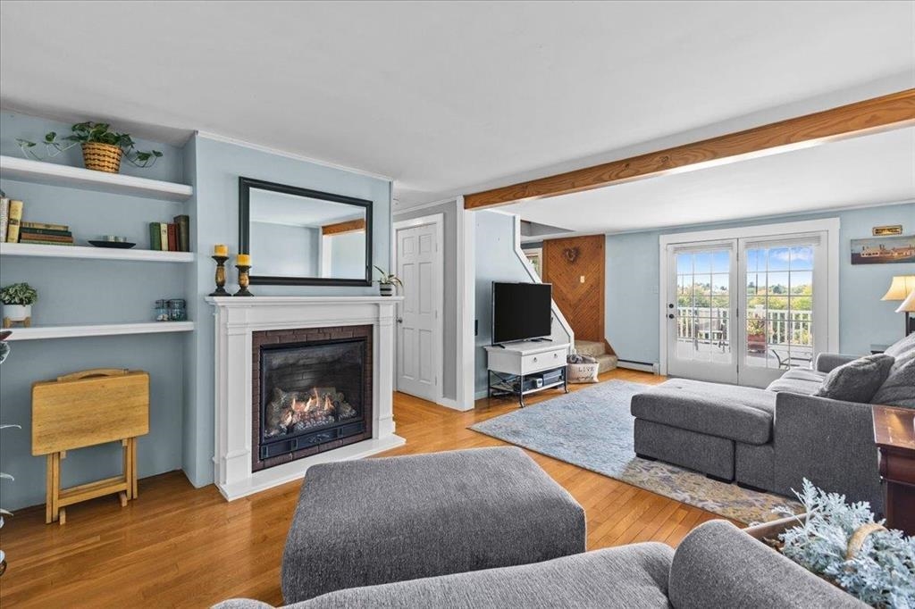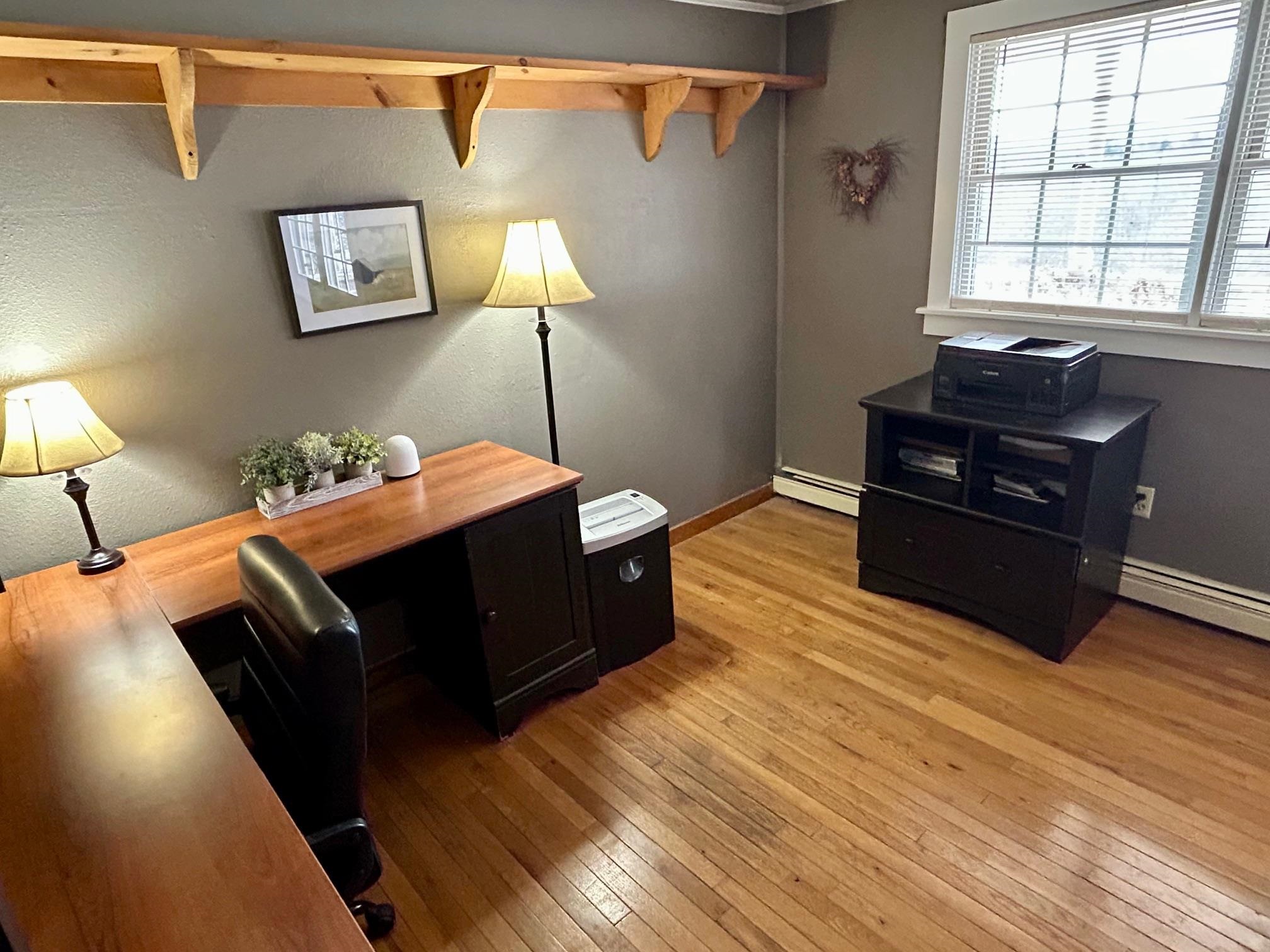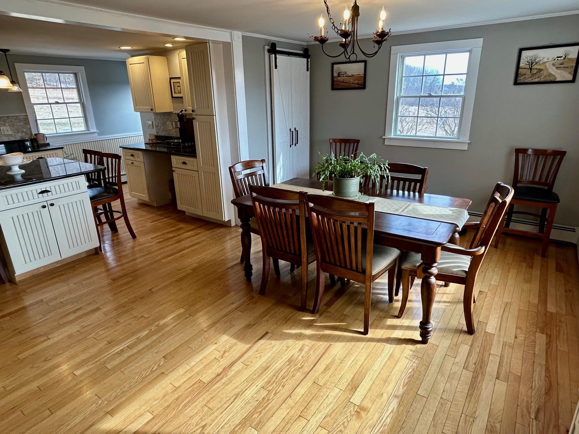 Positioned to capture prized west- and south-facing exposure, the property offers abundant natural light and long-range views toward Killington and the Green Mountains. The heart of the home is a renovated kitchen with shaker-style cabinetry, granite countertops, a dedicated coffee bar, and a large island with seating on both sides. The open dining area flows seamlessly to a grilling deck off the kitchen, extending the gathering space outdoors. The main level is designed for functionality, featuring hardwood flooring, multiple living areas, a propane fireplace, a full bath, and a dedicated office. Upstairs are three generously sized bedrooms, including a primary with double closets, a ¾ bath, and a flexible landing ideal for a workspace or reading nook. The finished walk-out lower level adds fun and functional bonus space with a media room, flexible exercise area, and laundry center. Outside, enjoy mature gardens, a detached two-car garage, and a partially covered front porch perfect for sunsets and entertaining. Set in a tranquil location just minutes to I-89, VAST trails, skiing, and downtown Randolph in the heart of Vermont, this move-in-ready home combines comfort, style, and convenience—ready to impress!