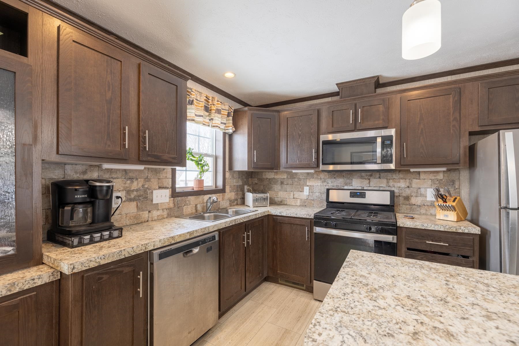 - Dishwasher, Dryer, Range Hood, Microwave, Refrigerator, Washer, Gas Stove