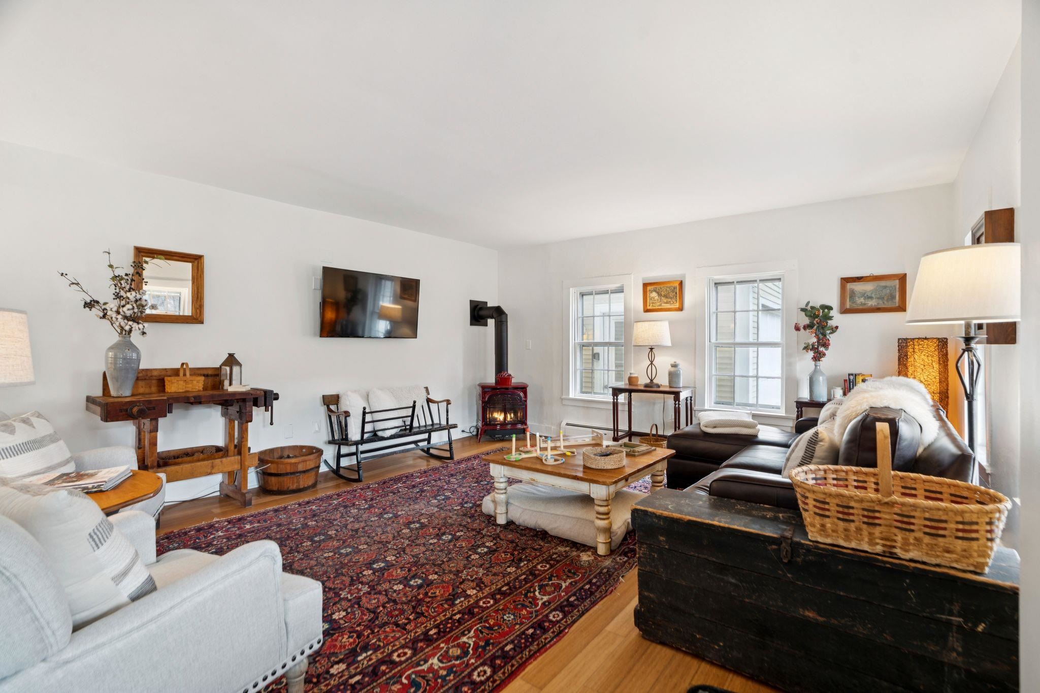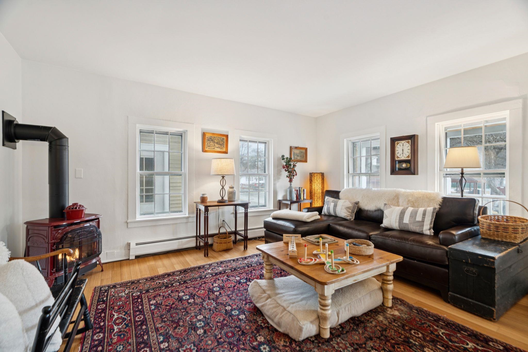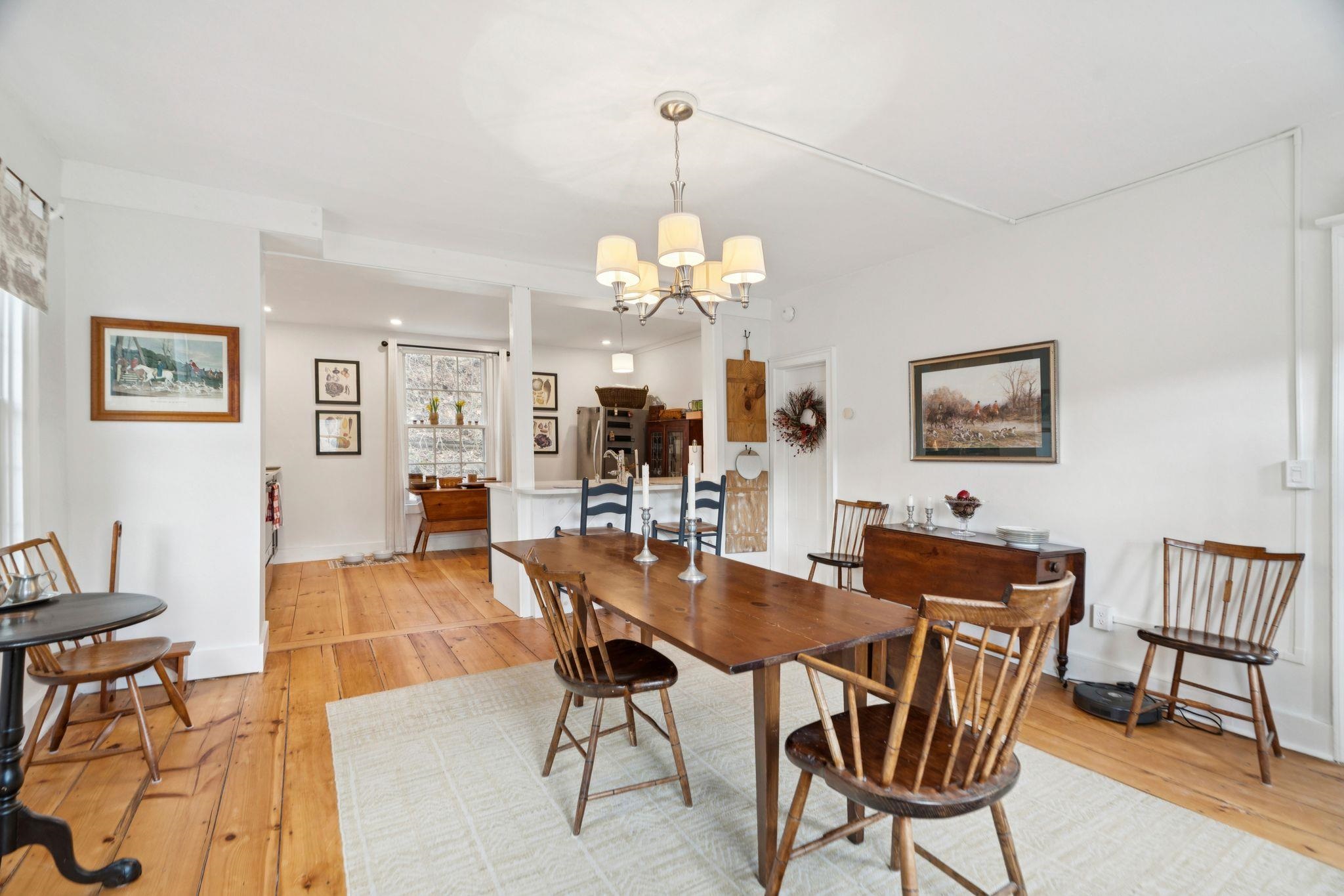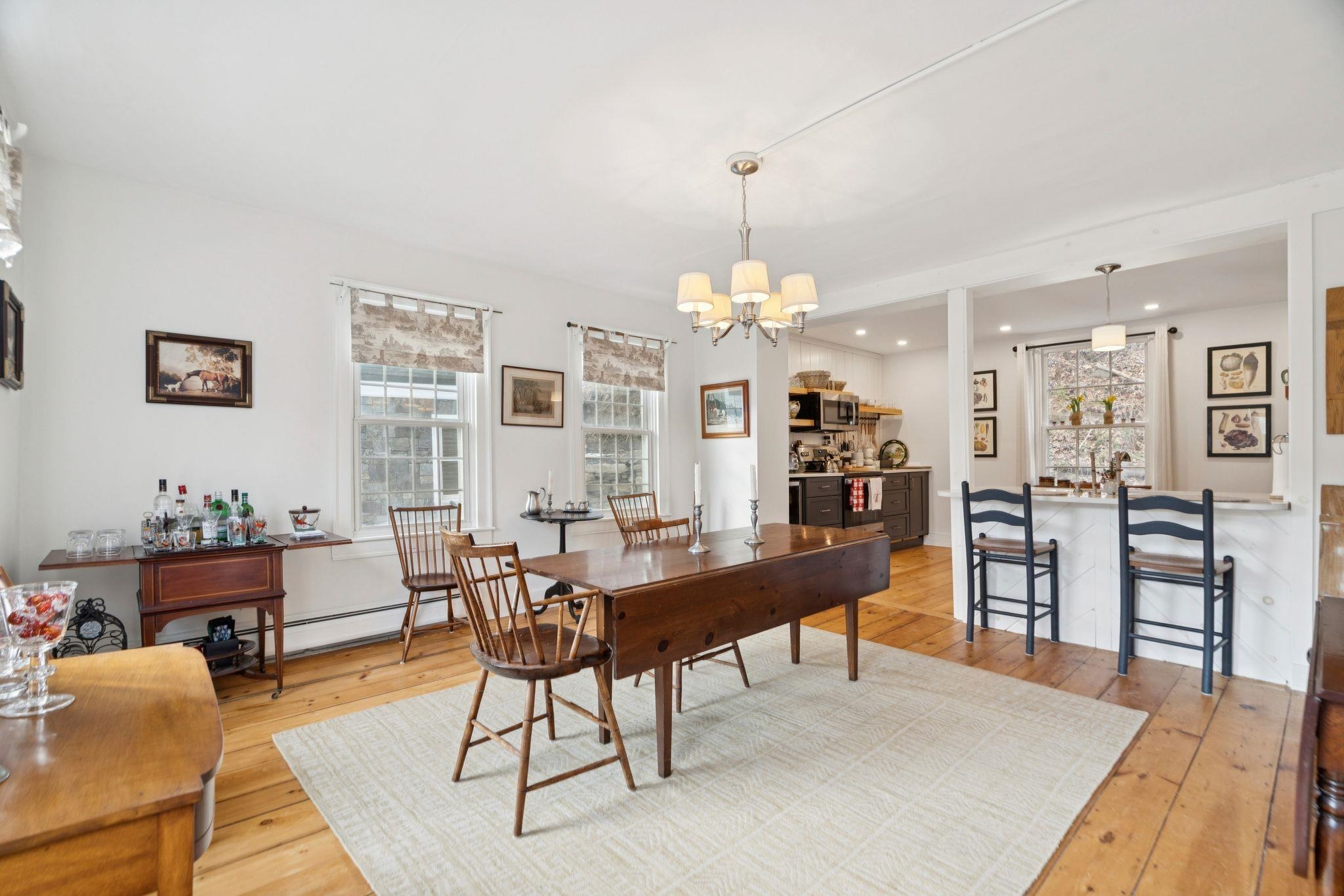 Welcome to this beautifully renovated residence in the vibrant heart of Woodstock Village. Enjoy unparalleled convenience with a short stroll to the Elementary School, Woodstock Inn, the picturesque Green, and an array of charming shops, restaurants, and bakeries that define village living. Nestled directly across from Vail Field, this home offers easy access to playgrounds, ball fields, and pickleball courts. The homeowners have meticulously updated the property, featuring a stunning new kitchen and a refreshed second-floor bath, blending modern comfort with timeless charm. Unwind on the covered porch with a favorite drink while soaking in the serene surroundings. The inviting living room has a cozy gas fireplace, perfect for cool evenings. The spacious dining area opens to the expanded kitchen, boasting elegant cabinetry, sleek quartz countertops, and top-quality appliances. Newly installed pine flooring adds sophistication throughout. With three spacious bedrooms and two updated bathrooms, each room is designed for comfort. A versatile sitting room off the primary bedroom is perfect as a playroom or quiet study. Additional features include a new boiler, new dining room windows, and upgraded wiring with 200 AMP service. The property also offers a two-stall garage with partially finished space above, presenting endless customization possibilities. Whether you're seeking a forever home or a peaceful retreat, this move-in-ready gem is a must-see!