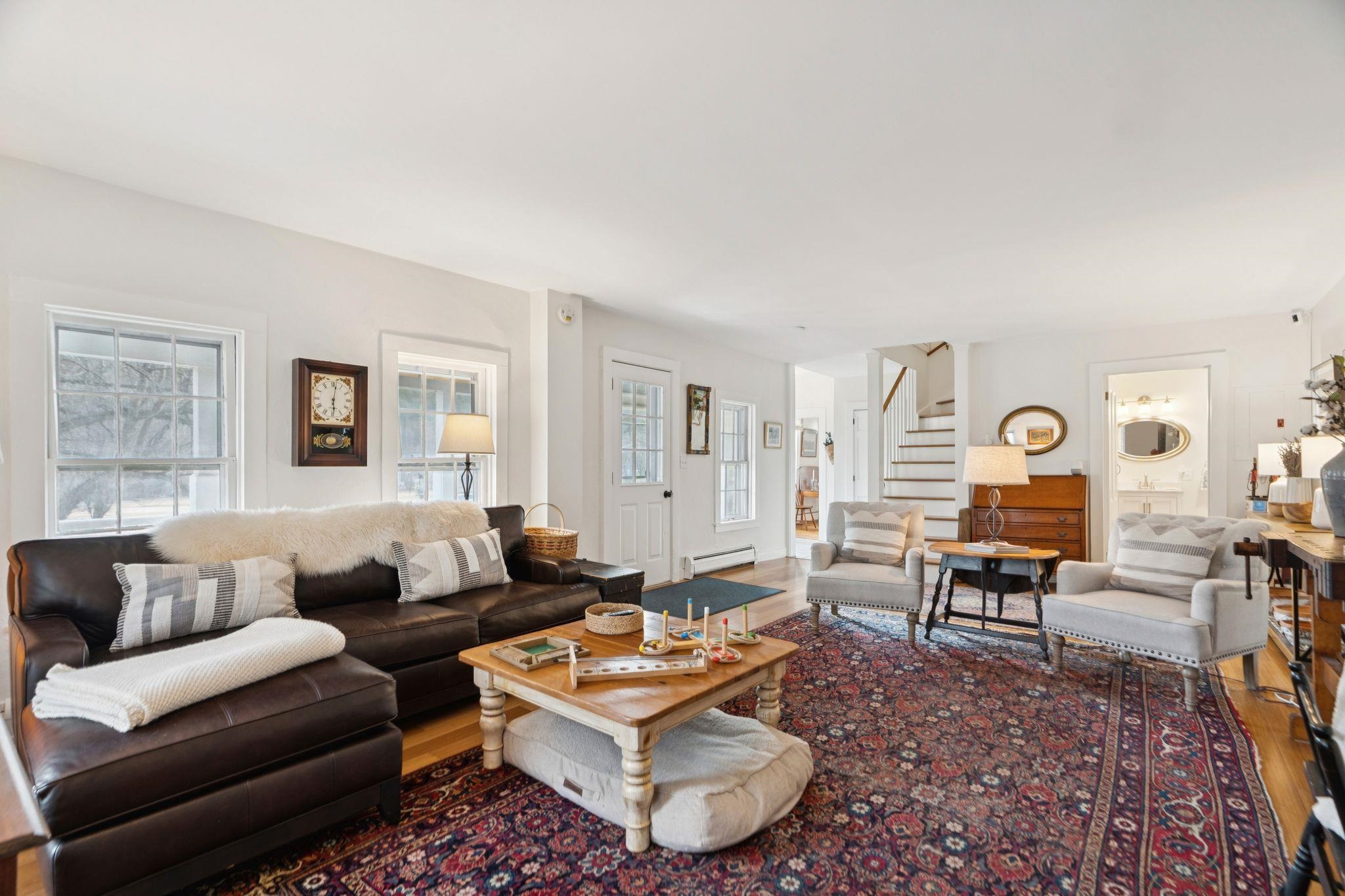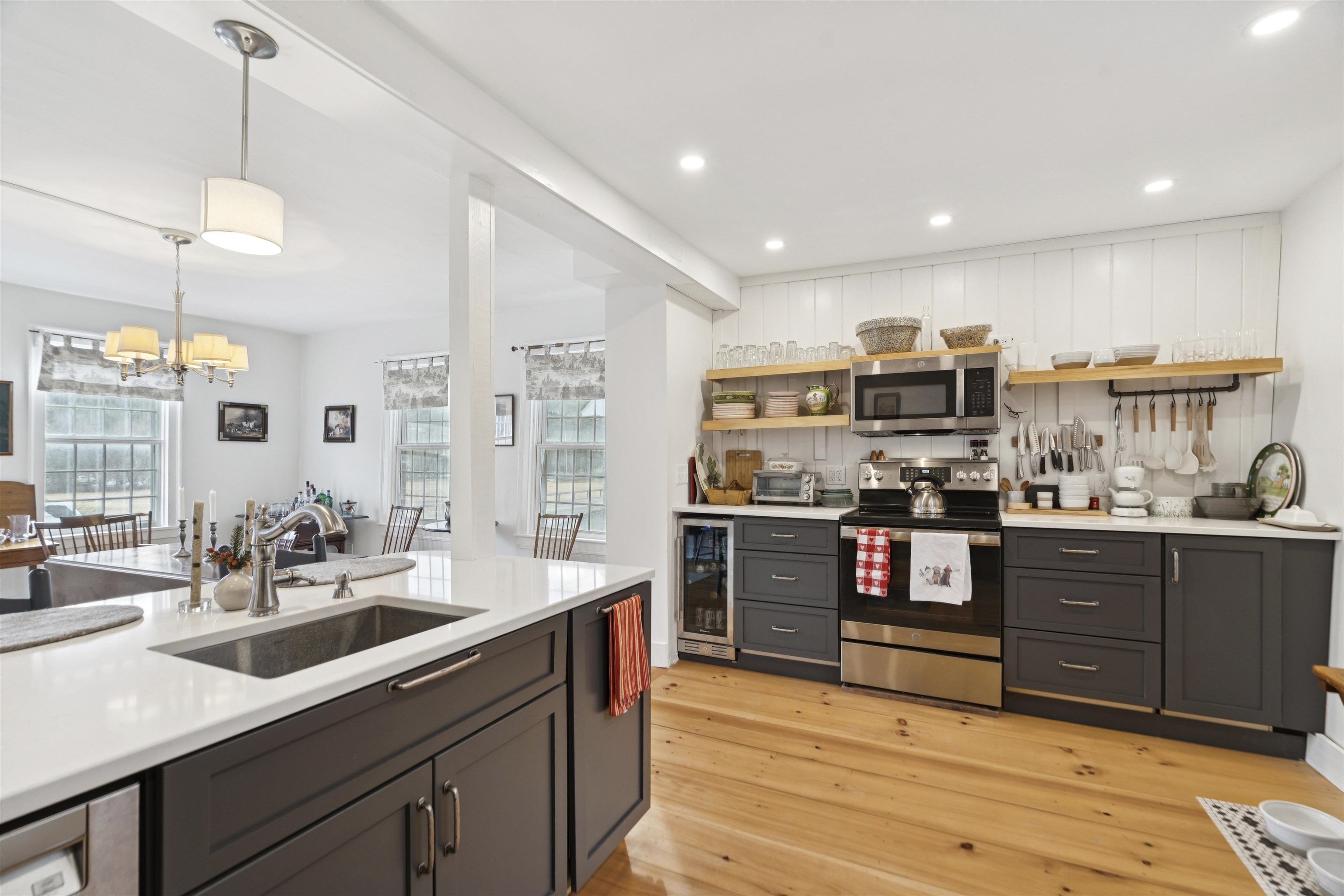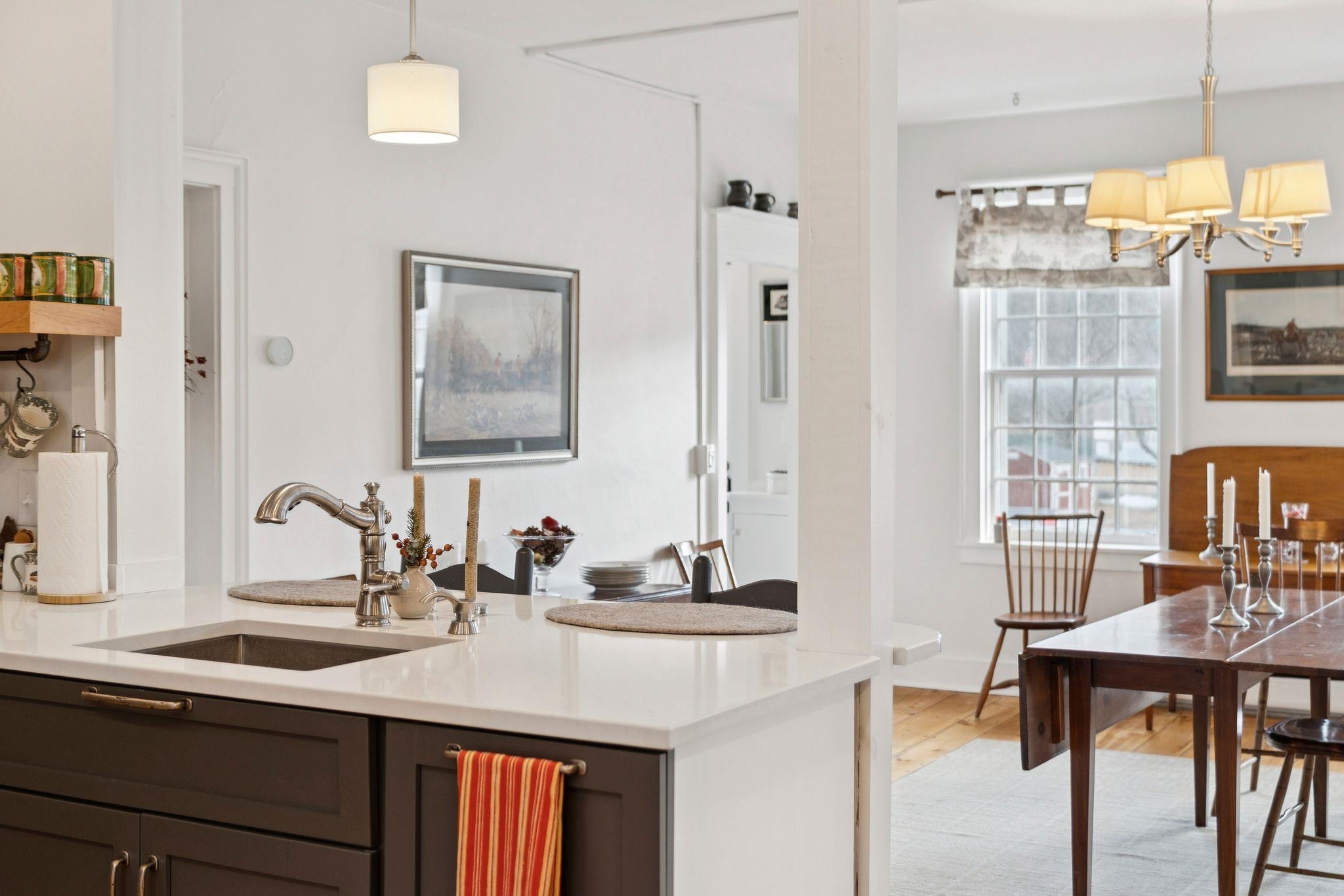 Welcome to this beautifully renovated residence in the vibrant heart of Woodstock Village. Enjoy unparalleled convenience with a short stroll to the Elementary School, Woodstock Inn, the picturesque Green, and an array of charming shops, restaurants, and bakeries that define village living. Nestled directly across from Vail Field, this home offers easy access to playgrounds, ball fields, and pickleball courts. The homeowners have meticulously updated the property, featuring a stunning new kitchen and a refreshed second-floor bath, blending modern comfort with timeless charm. Unwind on the covered porch with a favorite drink while soaking in the serene surroundings. The inviting living room has a cozy gas fireplace, perfect for cool evenings. The spacious dining area opens to the expanded kitchen, boasting elegant cabinetry, sleek quartz countertops, and top-quality appliances. Newly installed pine flooring adds sophistication throughout. With three spacious bedrooms and two updated bathrooms, each room is designed for comfort. A versatile sitting room off the primary bedroom is perfect as a playroom or quiet study. Additional features include a new boiler, new dining room windows, and upgraded wiring with 200 AMP service. The property also offers a two-stall garage with partially finished space above, presenting endless customization possibilities. Whether you're seeking a forever home or a peaceful retreat, this move-in-ready gem is a must-see!