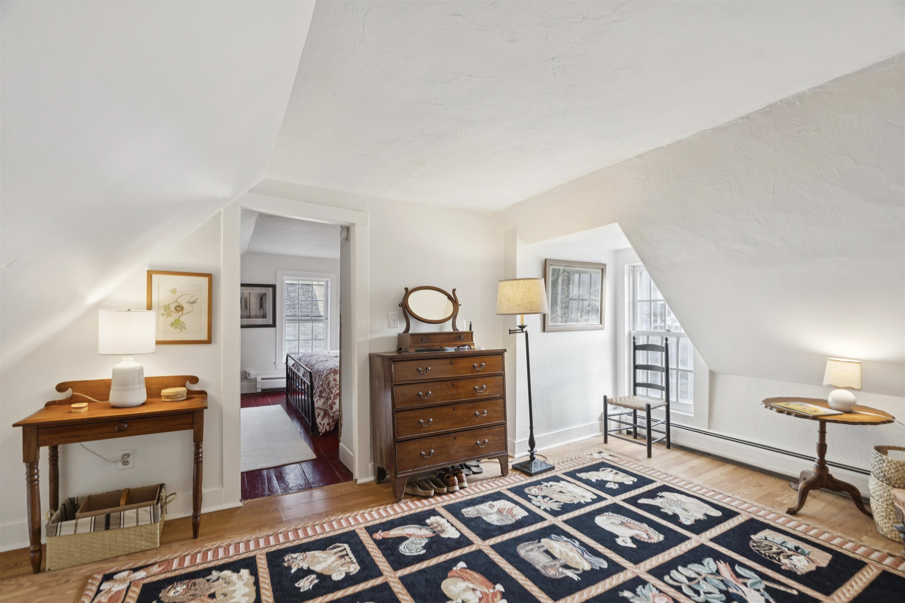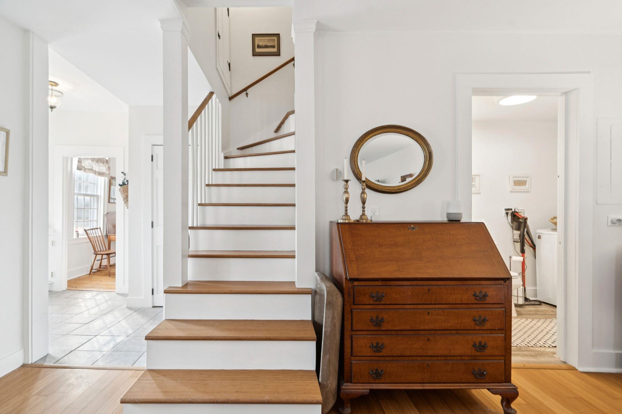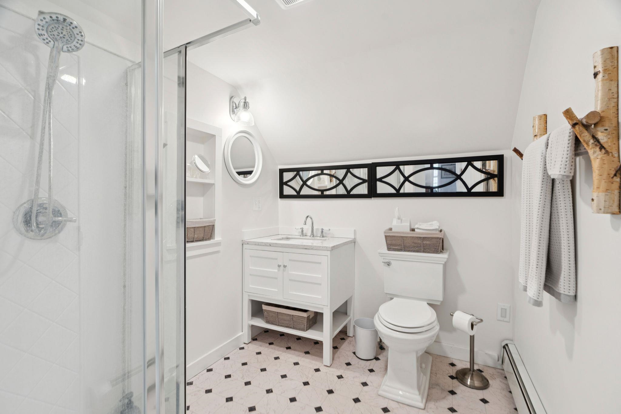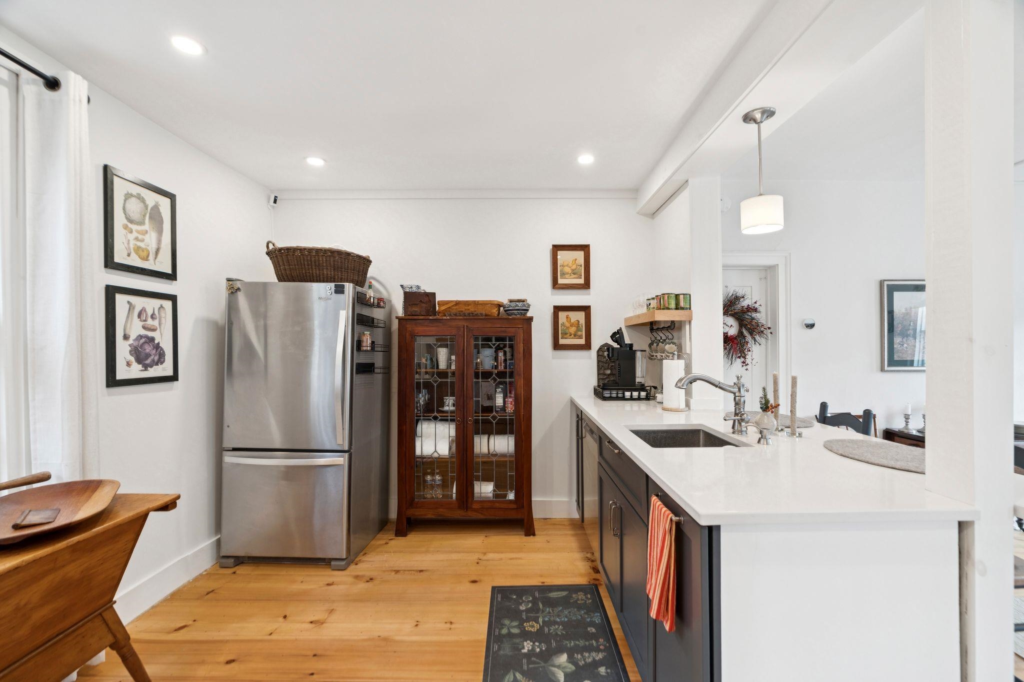 Welcome to this beautifully renovated residence in the vibrant heart of Woodstock Village. Enjoy unparalleled convenience with a short stroll to the Elementary School, Woodstock Inn, the picturesque Green, and an array of charming shops, restaurants, and bakeries that define village living. Nestled directly across from Vail Field, this home offers easy access to playgrounds, ball fields, and pickleball courts. The homeowners have meticulously updated the property, featuring a stunning new kitchen and a refreshed second-floor bath, blending modern comfort with timeless charm. Unwind on the covered porch with a favorite drink while soaking in the serene surroundings. The inviting living room has a cozy gas fireplace, perfect for cool evenings. The spacious dining area opens to the expanded kitchen, boasting elegant cabinetry, sleek quartz countertops, and top-quality appliances. Newly installed pine flooring adds sophistication throughout. With three spacious bedrooms and two updated bathrooms, each room is designed for comfort. A versatile sitting room off the primary bedroom is perfect as a playroom or quiet study. Additional features include a new boiler, new dining room windows, and upgraded wiring with 200 AMP service. The property also offers a two-stall garage with partially finished space above, presenting endless customization possibilities. Whether you're seeking a forever home or a peaceful retreat, this move-in-ready gem is a must-see!