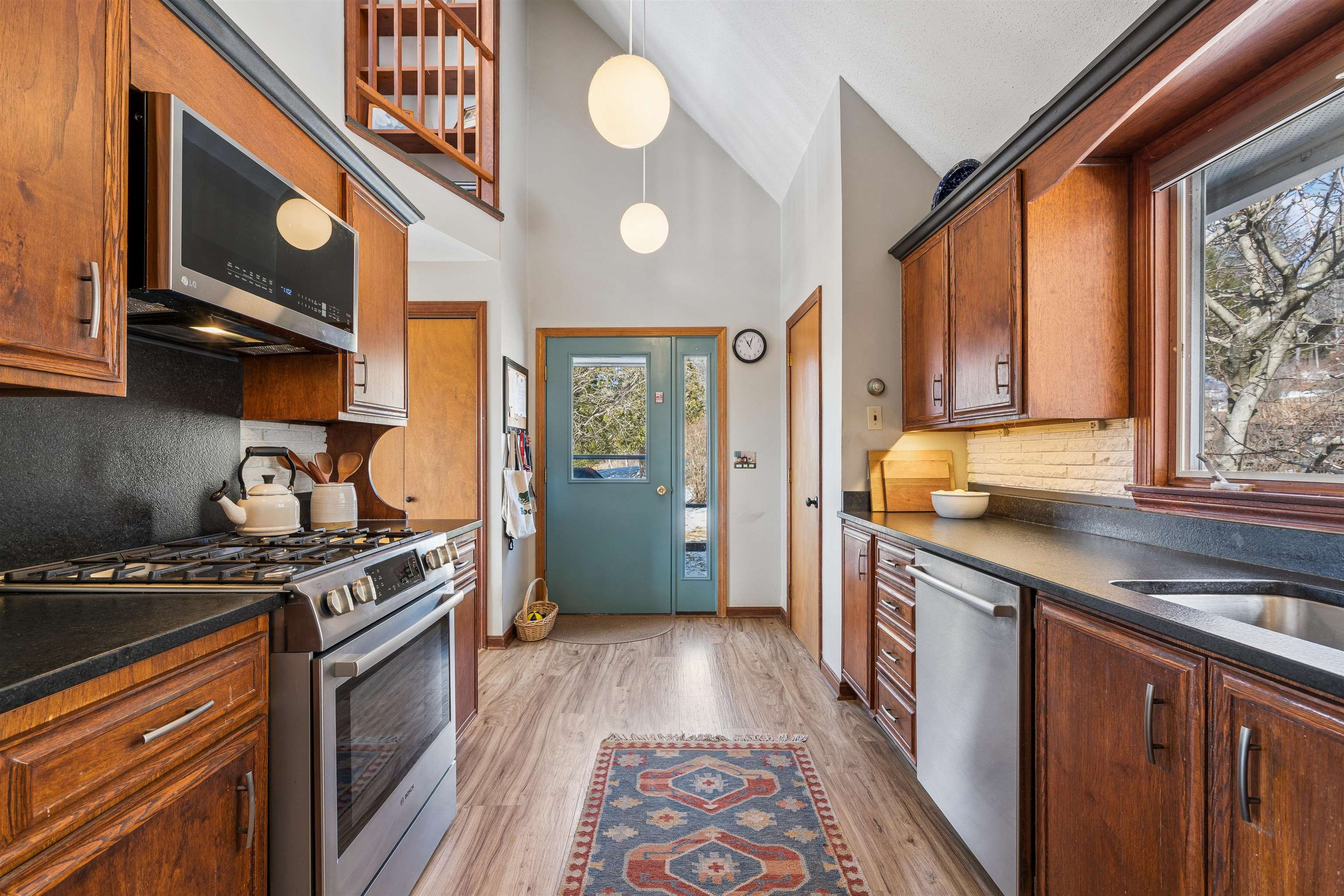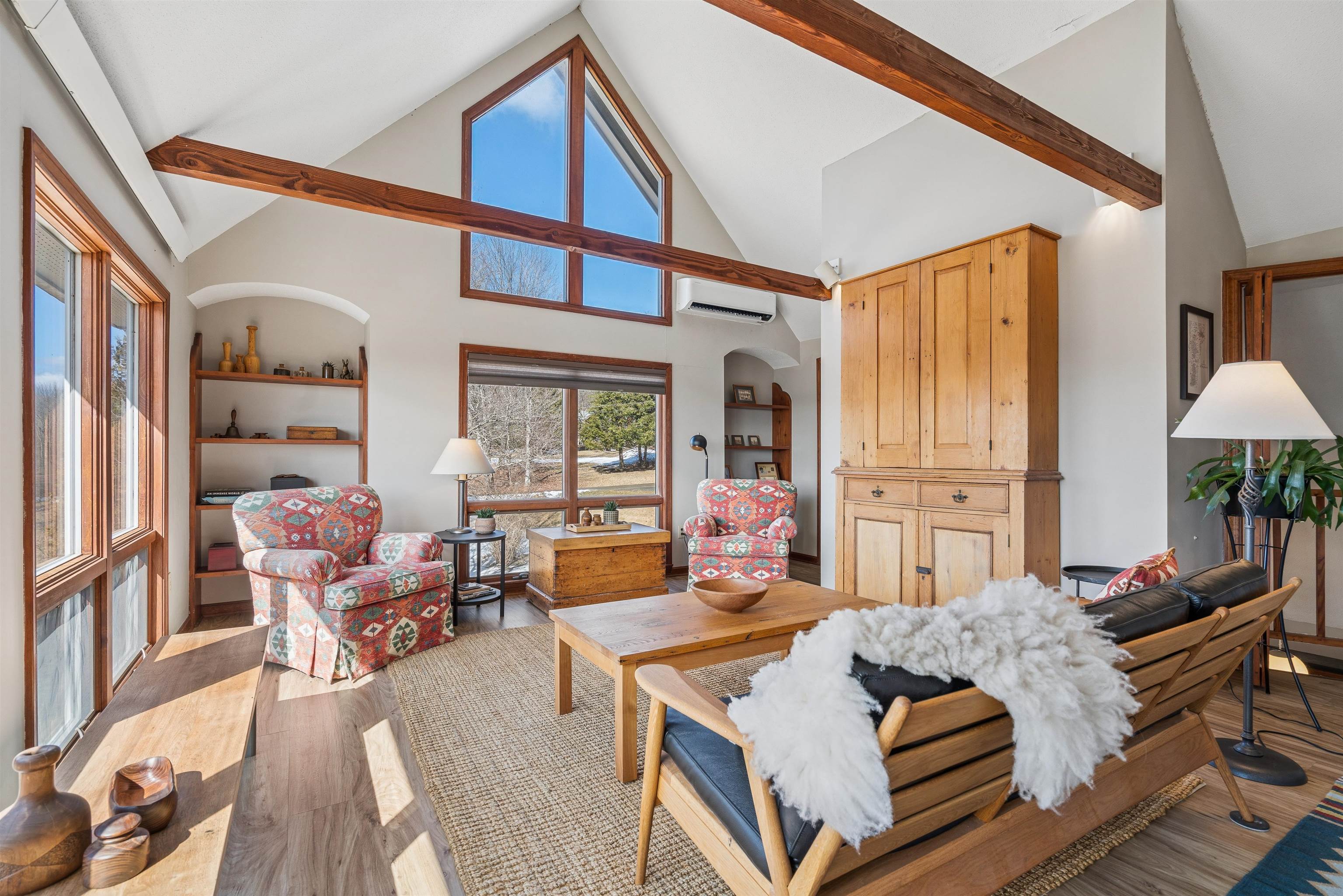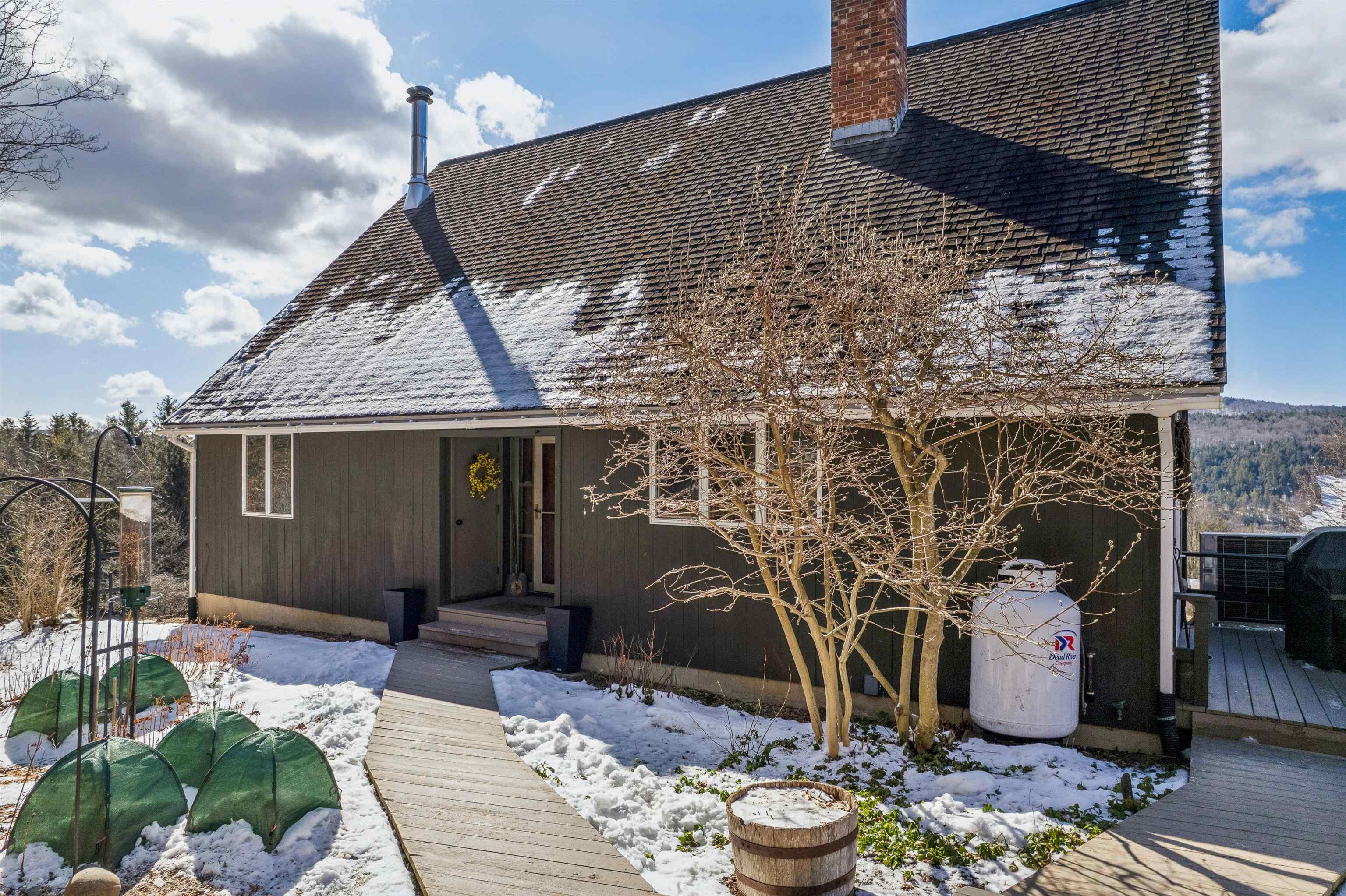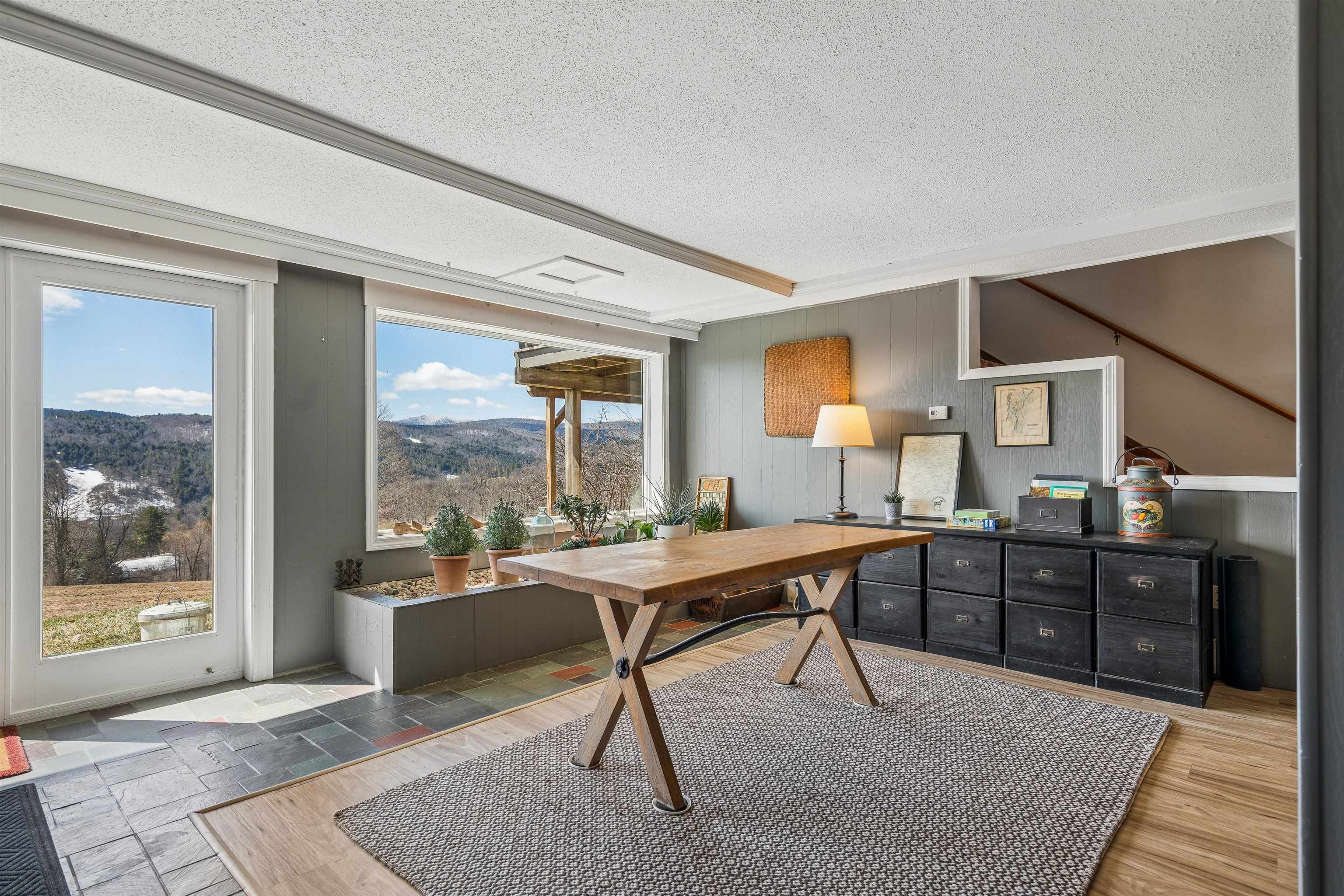 This is one of those rare properties that feels like a true home. You can tell from the layout as you come in that this was really thoughtfully designed. South facing provides so much natural night that overlooks both short and long range gorgeous mountain views. This is a place you’ll be genuinely proud to bring guests over to. There is an abundance of actual storage and whimsical character. The second floor living room has incredible vaulted ceilings with adorable Juliet windows peeking down into the kitchen. The functional laundry chute, working intercom and central vacuum just gives that extra level of fun. For those who work from home or have a daily practice, the dedicated yoga nook/office space offer a peaceful retreat. The living space extends into a bright, impeccably clean walkout basement that leads directly into the backyard, providing a seamless connection to the outdoors since this land backs up to the Randolph Town Forest. To ensure you’re covered no matter the season, the home features four distinct forms of heat: reliable oil hot water baseboards as the primary source, supplemented by efficient mini-splits for heat and air conditioning, a cozy propane fireplace, and a classic VT soapstone woodstove for those snowy nights. This is an exceptionally maintained property that doesn’t just offer a place to live; it tells a story and warmly invites you to be a part of it.