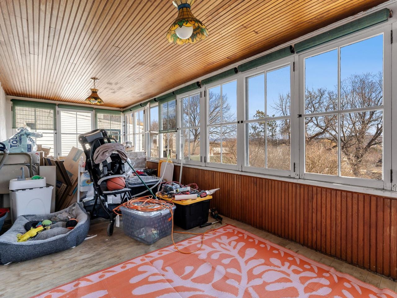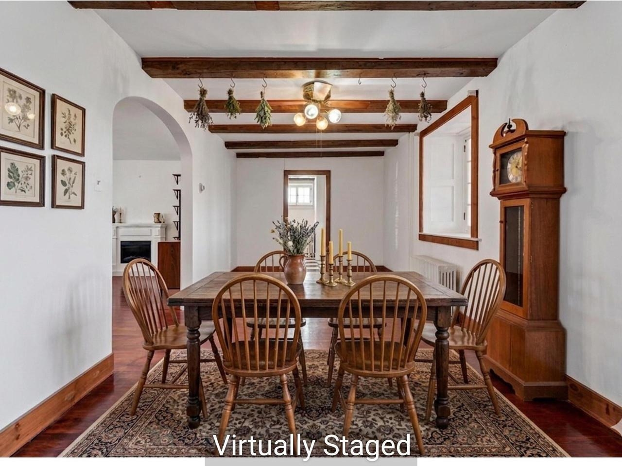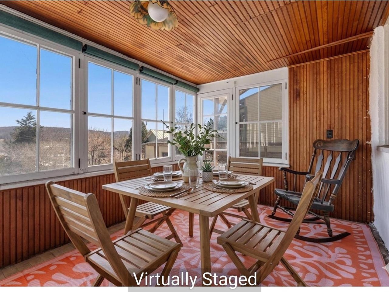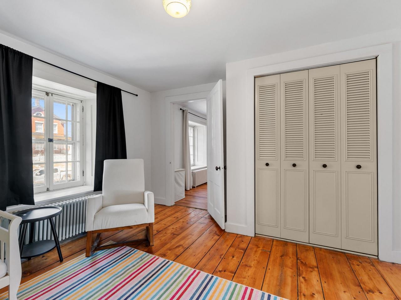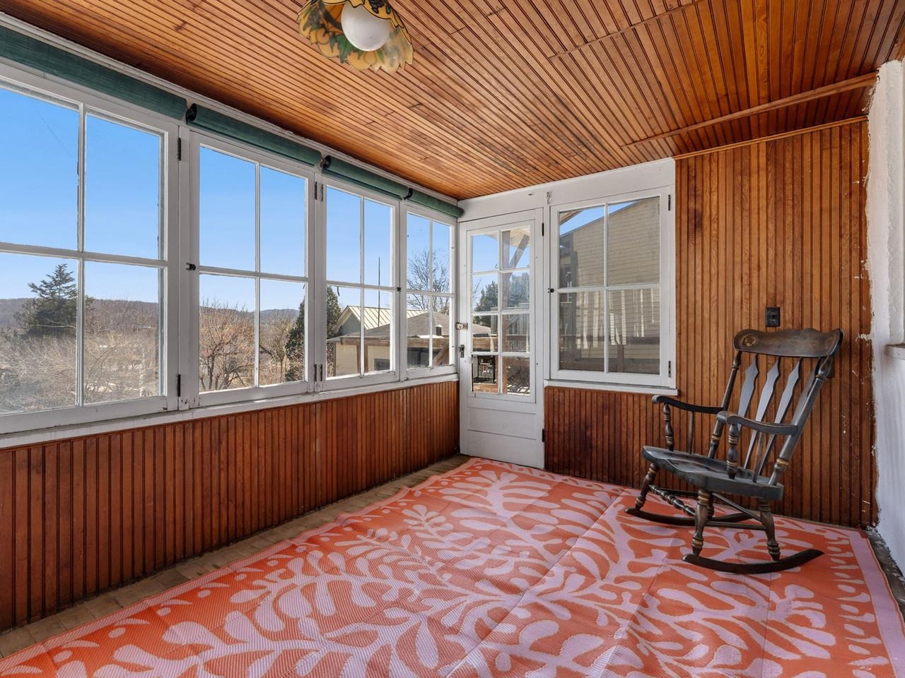 This beautifully preserved 1880s home sits right in the heart of Vergennes, offering the ultimate convenience just a stone's throw from local favorite restaurants and a literal front-row seat to the annual Memorial Day parade. Inside, you are greeted by the warmth of original woodworking, including striking exposed beams and hardwood floors that have been recently refinished to a brilliant shine. The main level features a spacious living room and a large formal dining room that flows seamlessly into an eat-in kitchen complete with an island, as well as a convenient first-floor half bath and laundry. Upstairs, the second level hosts two bedrooms and a full bathroom, along with two versatile bonus rooms that are perfect for dedicated office spaces or playrooms. The outdoor living options are equally impressive, featuring a private balcony area, a charming three-season porch, and a generous deck designed for grilling while taking in elevated views of the city. Practicality meets historical charm in the basement, where tall ceilings and walk-out doors provide excellent potential for a garage or extensive additional storage, all complemented by a fresh coat of paint throughout the home that makes this historic gem move-in ready.