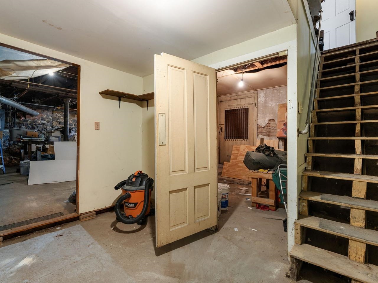 - Concrete, Concrete Floor, Daylight, Full, Interior Stairs, Storage Space, Interior Access, Exterior Access, Basement Stairs