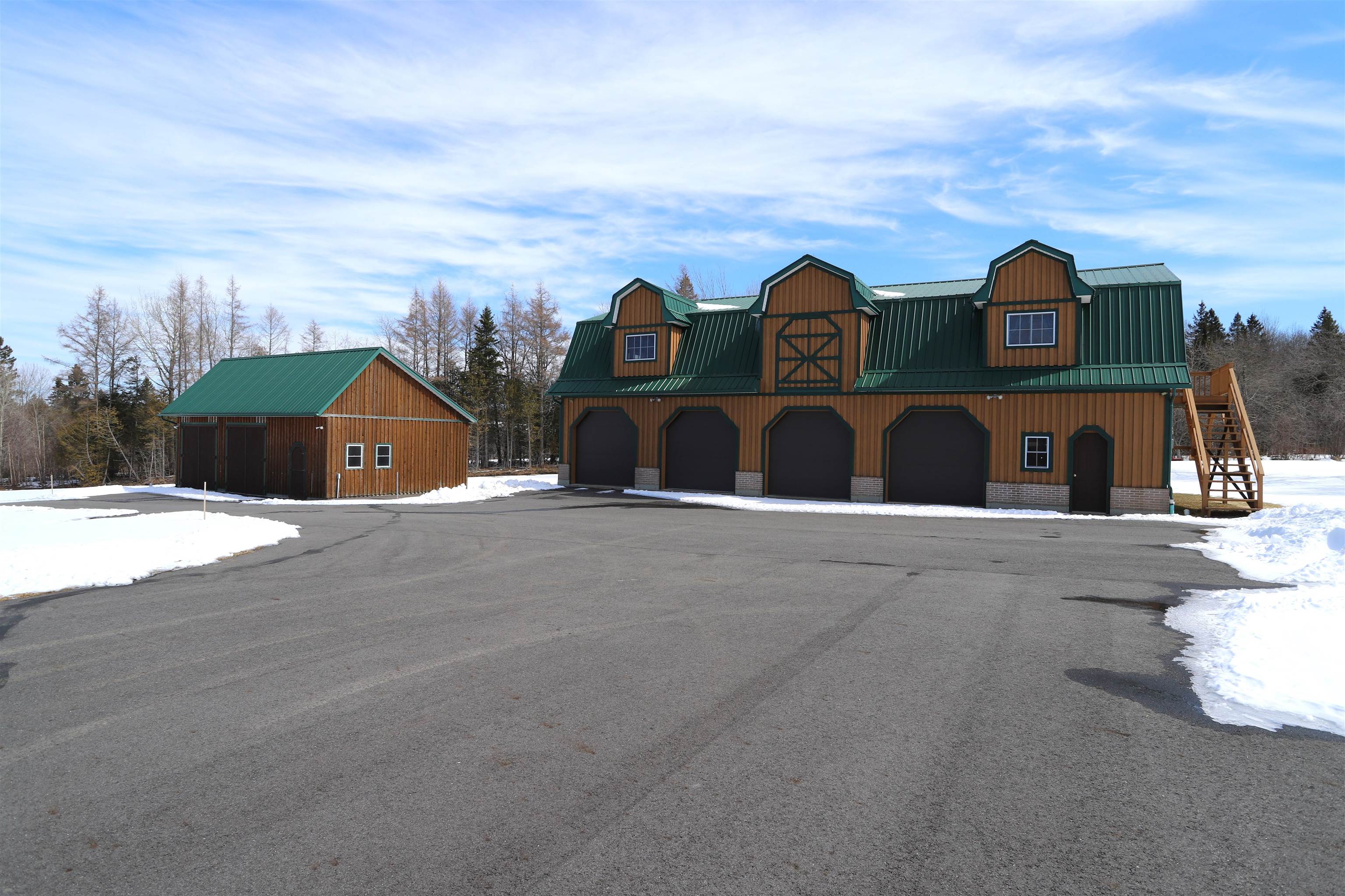 Striking post-and-beam log home set on 65+ acres of a beautiful mix of open and wooded land, complete with an oversized 4-bay detached garage, and workshop. Built in 2022 and finished in 2023, this thoughtfully designed property offers 3 bedrooms, 3 bathrooms, a loft, and an attached 2-bay heated garage. The main level features a functional mudroom/laundry area connecting the garage to the home, leading into an open-concept kitchen, dining, and living space ideal for everyday living and entertaining. The primary suite is also located on the main level and includes a walk-in closet and a tiled shower. Upstairs, you’ll find two additional bedrooms, a full bathroom, and a versatile loft area overlooking the main living space. Radiant heat powered by a propane boiler, along with a propane stove in the living room, ensures year-round comfort. Additional highlights include 200-amp electrical service, a shared drilled well, and a private septic system. Enjoy long-range views from the covered porch overlooking a spring-fed pond (approximately 6–8 feet deep). The land offers exceptional usability, with approximately 20 acres of open field that is easily accessible—perfect for recreation, farming, or animals. Above the detached garage, a heated and finished space provides a kitchen, bathroom, and office area, offering excellent potential for guest quarters, workspace, or additional living space. Outdoor enthusiasts will appreciate direct access to the VAST and VASA trail systems right from the property. Schedule your private showing today and experience everything this home has to offer.