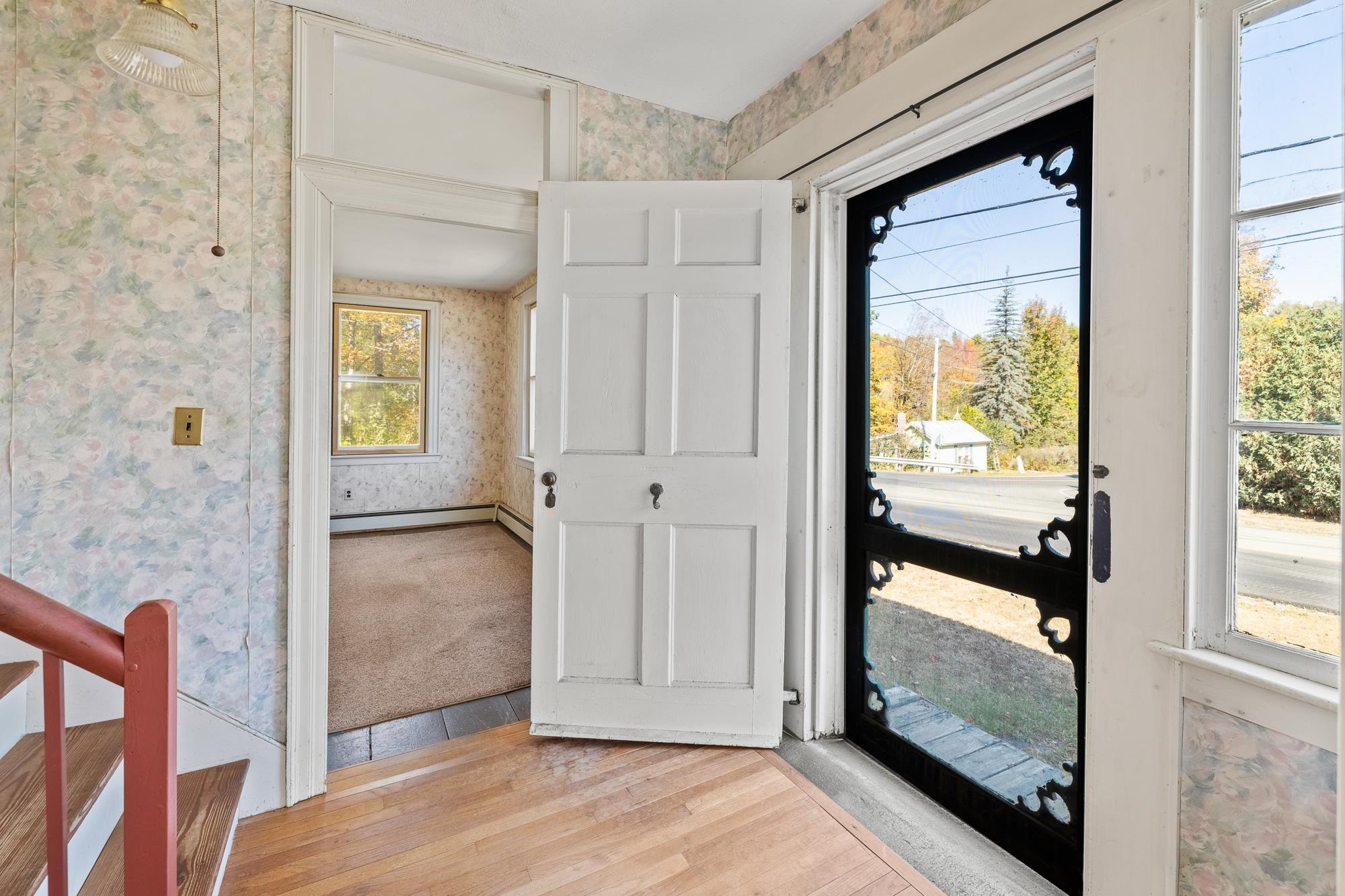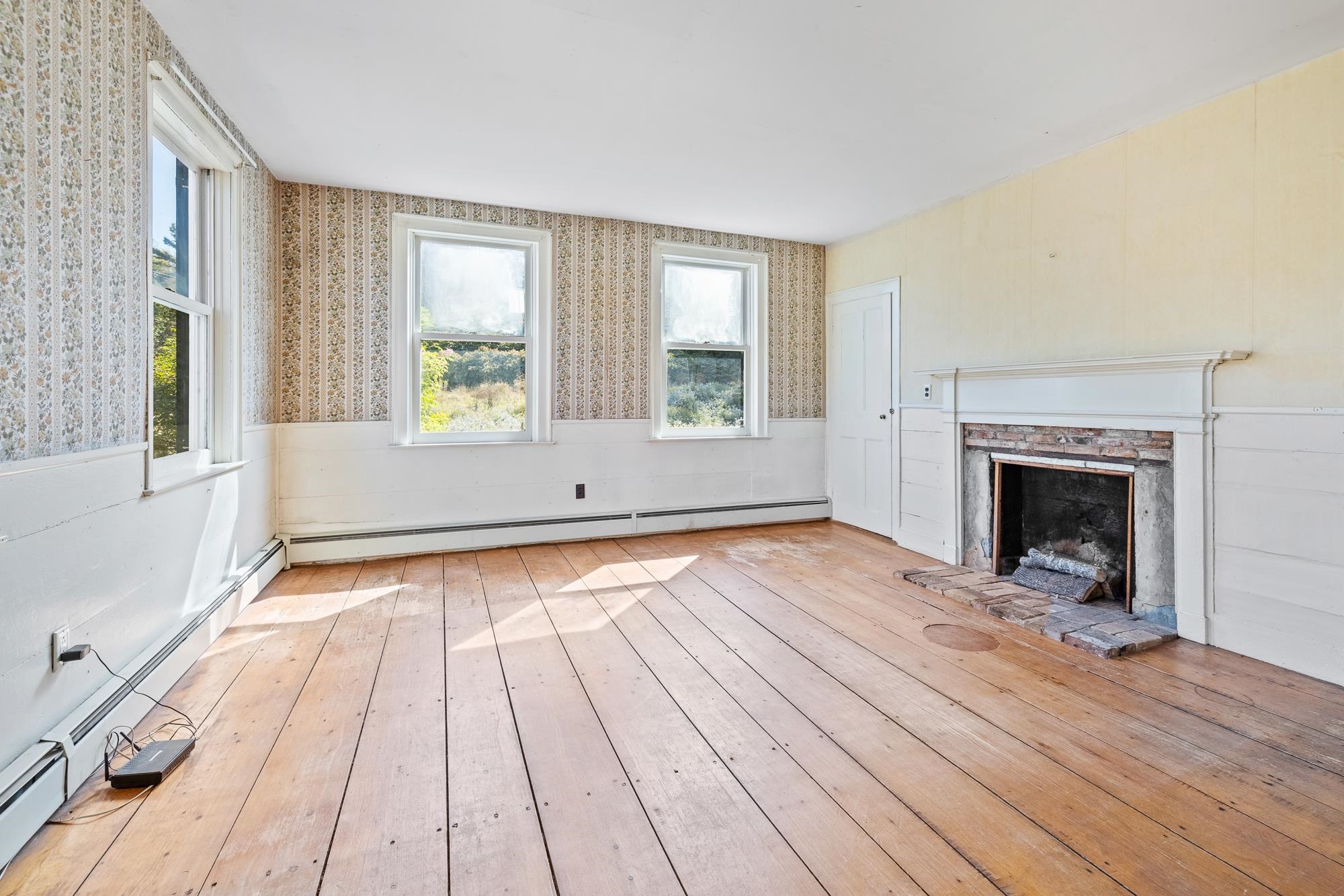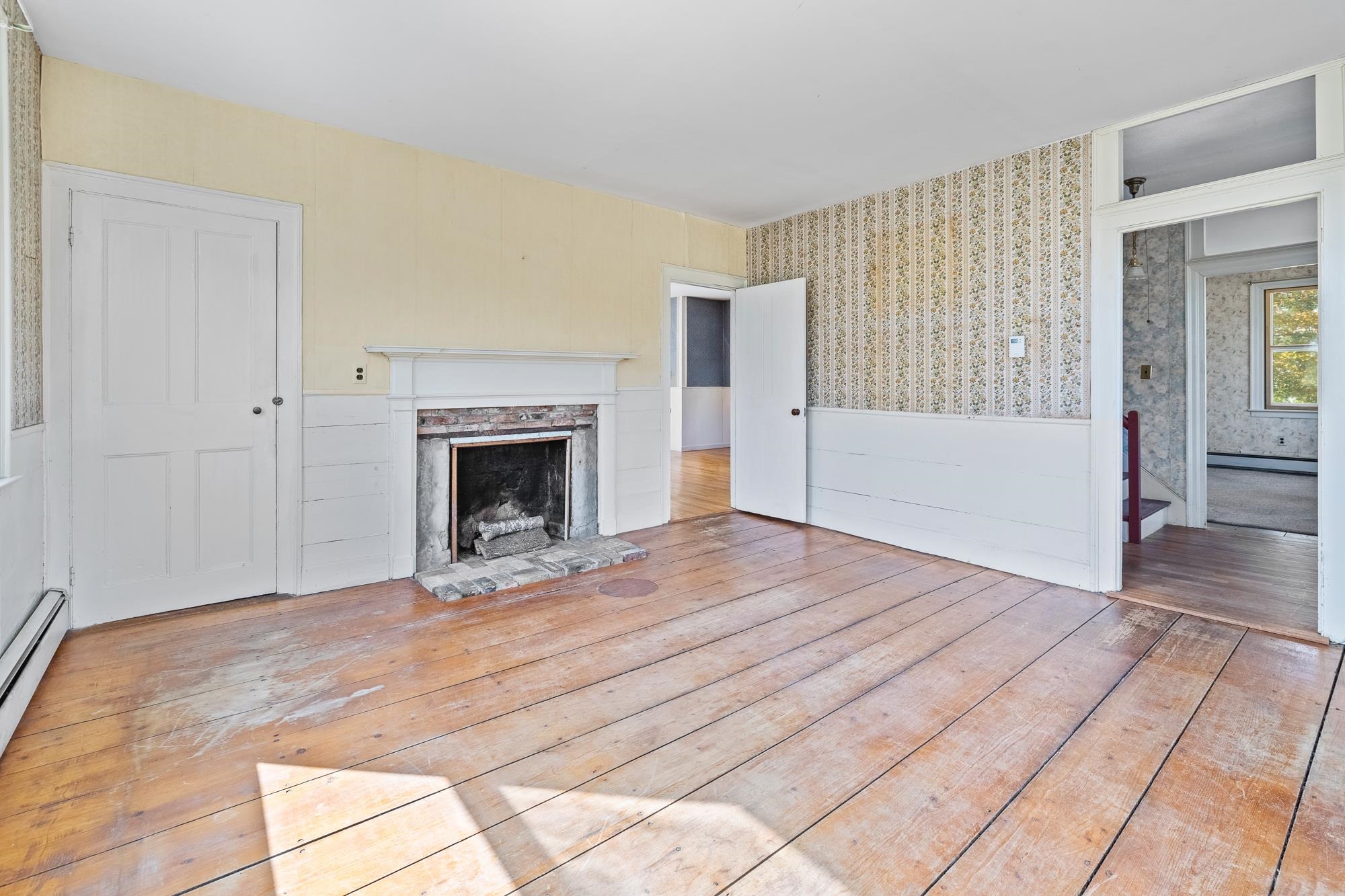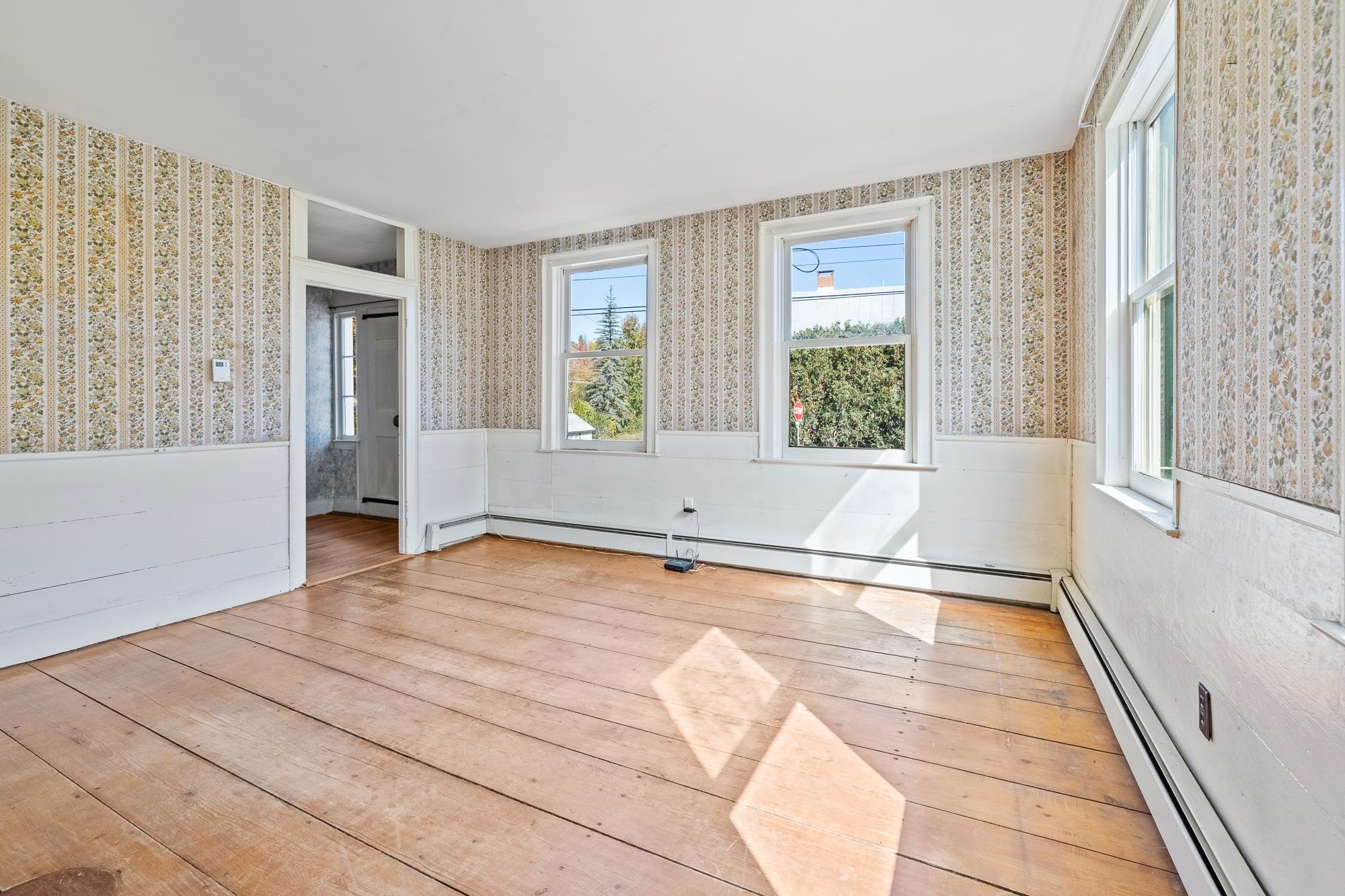 Vintage Vermont! Located in the lovely South Strafford village, this classic 1800s cape style farmhouse is ready to be brought back to its original glory. First floor offers formal dining room and living room with fireplaces, large eat-in kitchen, 3/4 bathroom with laundry and a seasonal bonus room. Upstairs has 2-3 bedroom options or a nice office/study and a full bathroom. Hardwood floors throughout, amazing natural light, SO much charm, detached garage, barn/workshop space and a lovely flat yard. Located in the heart of the village - with Strafford General Store (formally Coburns'), The Newton School, Murray Recreation field and other amenities just steps away!