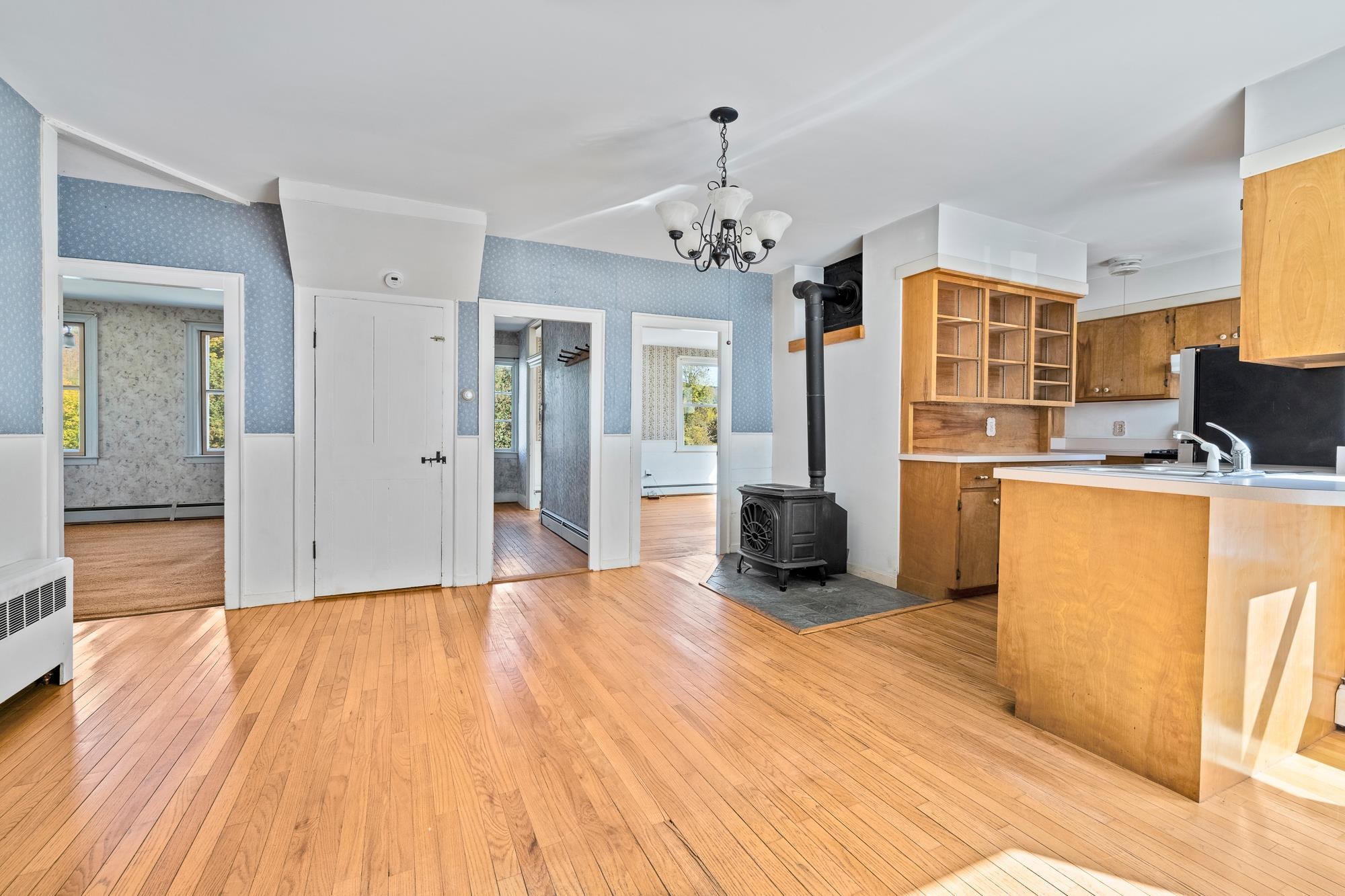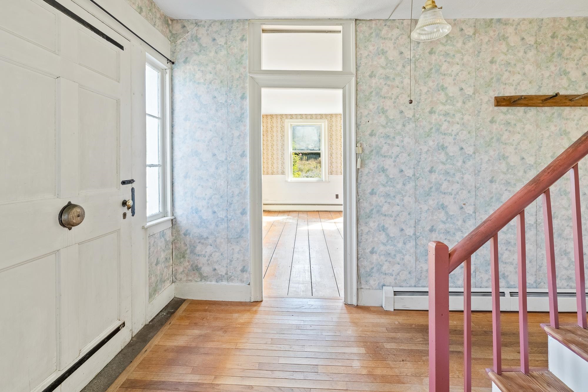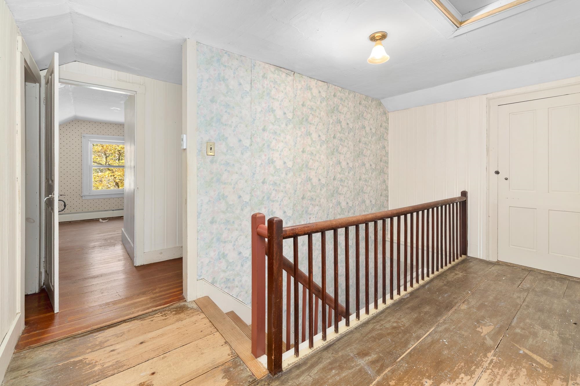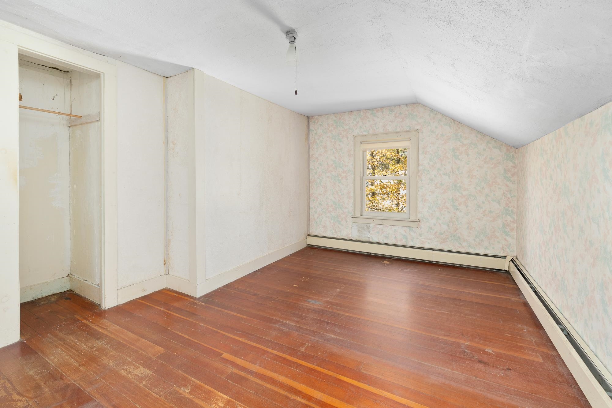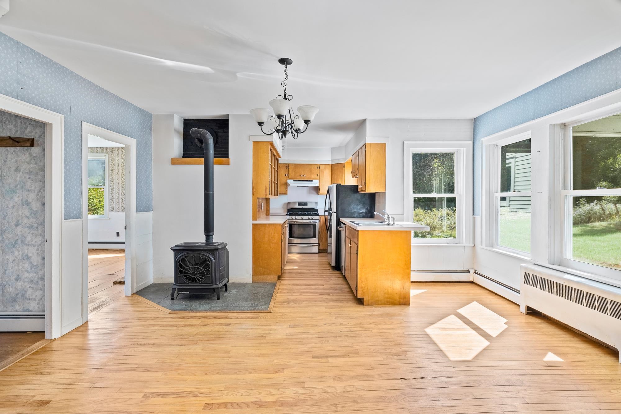 Vintage Vermont! Located in the lovely South Strafford village, this classic 1800s cape style farmhouse is ready to be brought back to its original glory. First floor offers formal dining room and living room with fireplaces, large eat-in kitchen, 3/4 bathroom with laundry and a seasonal bonus room. Upstairs has 2-3 bedroom options or a nice office/study and a full bathroom. Hardwood floors throughout, amazing natural light, SO much charm, detached garage, barn/workshop space and a lovely flat yard. Located in the heart of the village - with Strafford General Store (formally Coburns'), The Newton School, Murray Recreation field and other amenities just steps away!