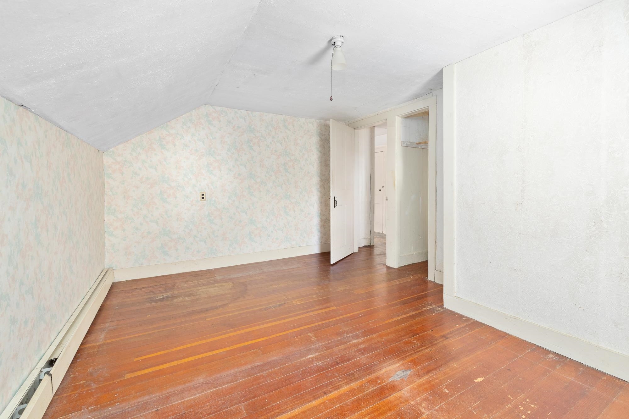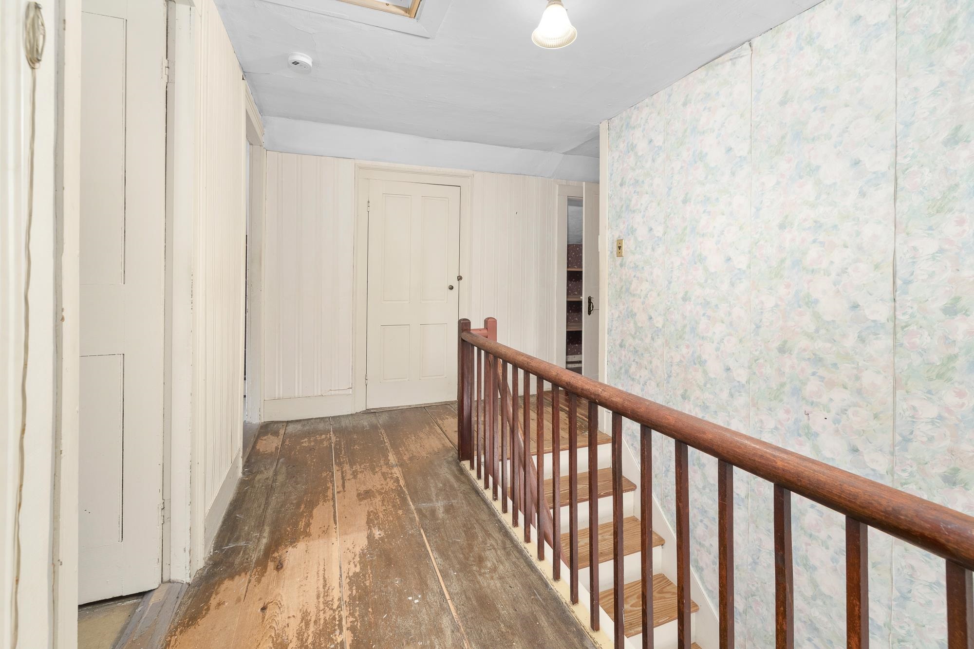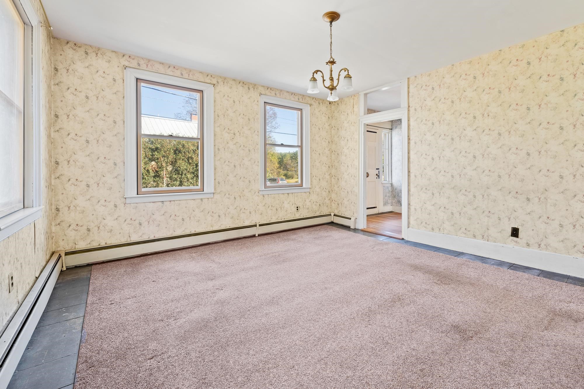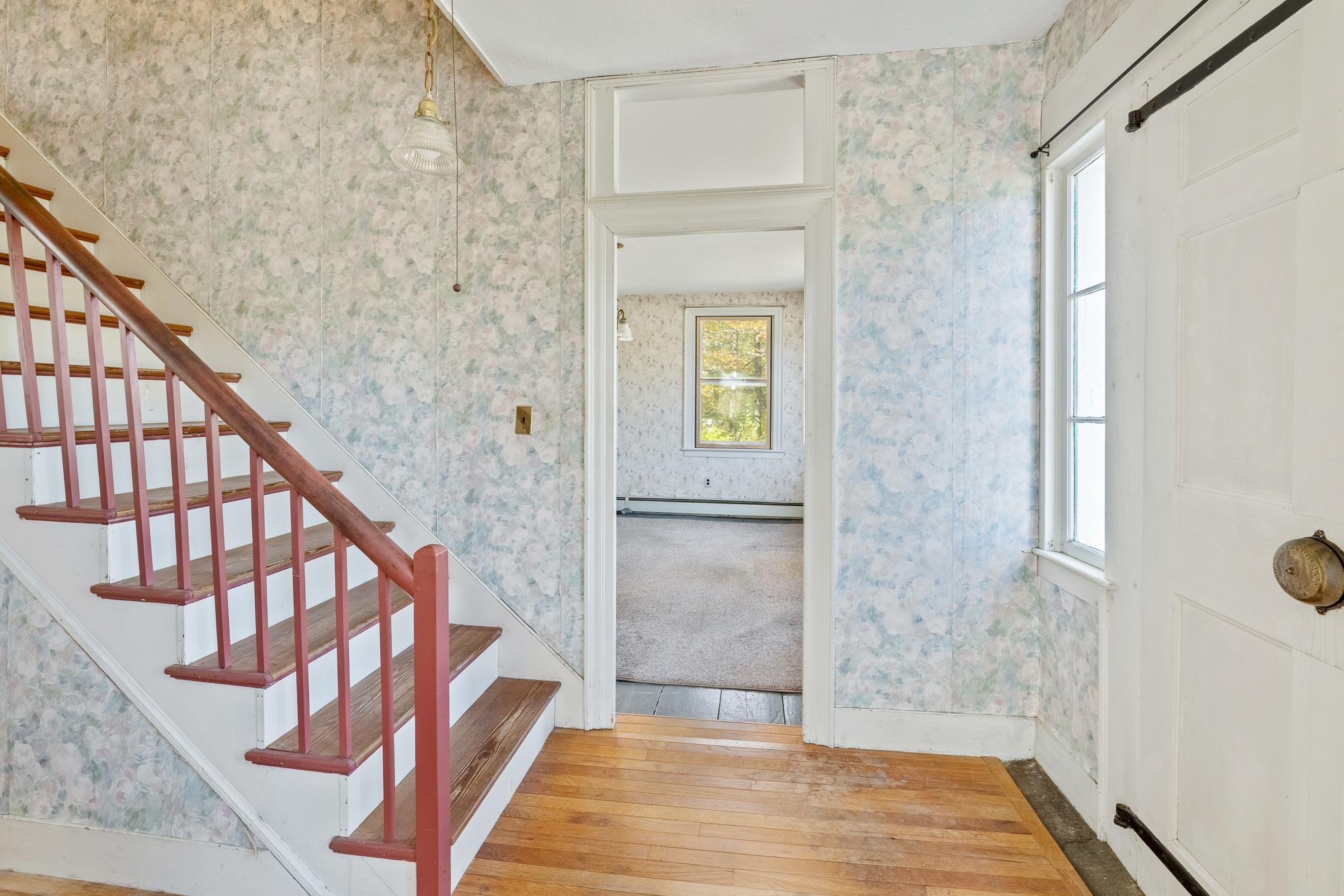Vintage Vermont! Located in the lovely South Strafford village, this classic 1800s cape style farmhouse is ready to be brought back to its original glory. First floor offers formal dining room and living room with fireplaces, large eat-in kitchen, 3/4 bathroom with laundry and a seasonal bonus room. Upstairs has 2-3 bedroom options or a nice office/study and a full bathroom. Hardwood floors throughout, amazing natural light, SO much charm, detached garage, barn/workshop space and a lovely flat yard. Located in the heart of the village - with Strafford General Store (formally Coburns'), The Newton School, Murray Recreation field and other amenities just steps away!