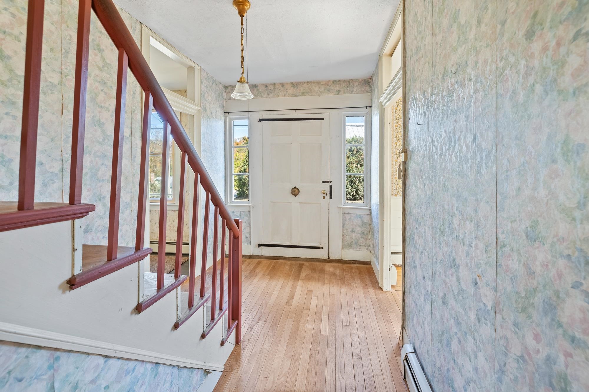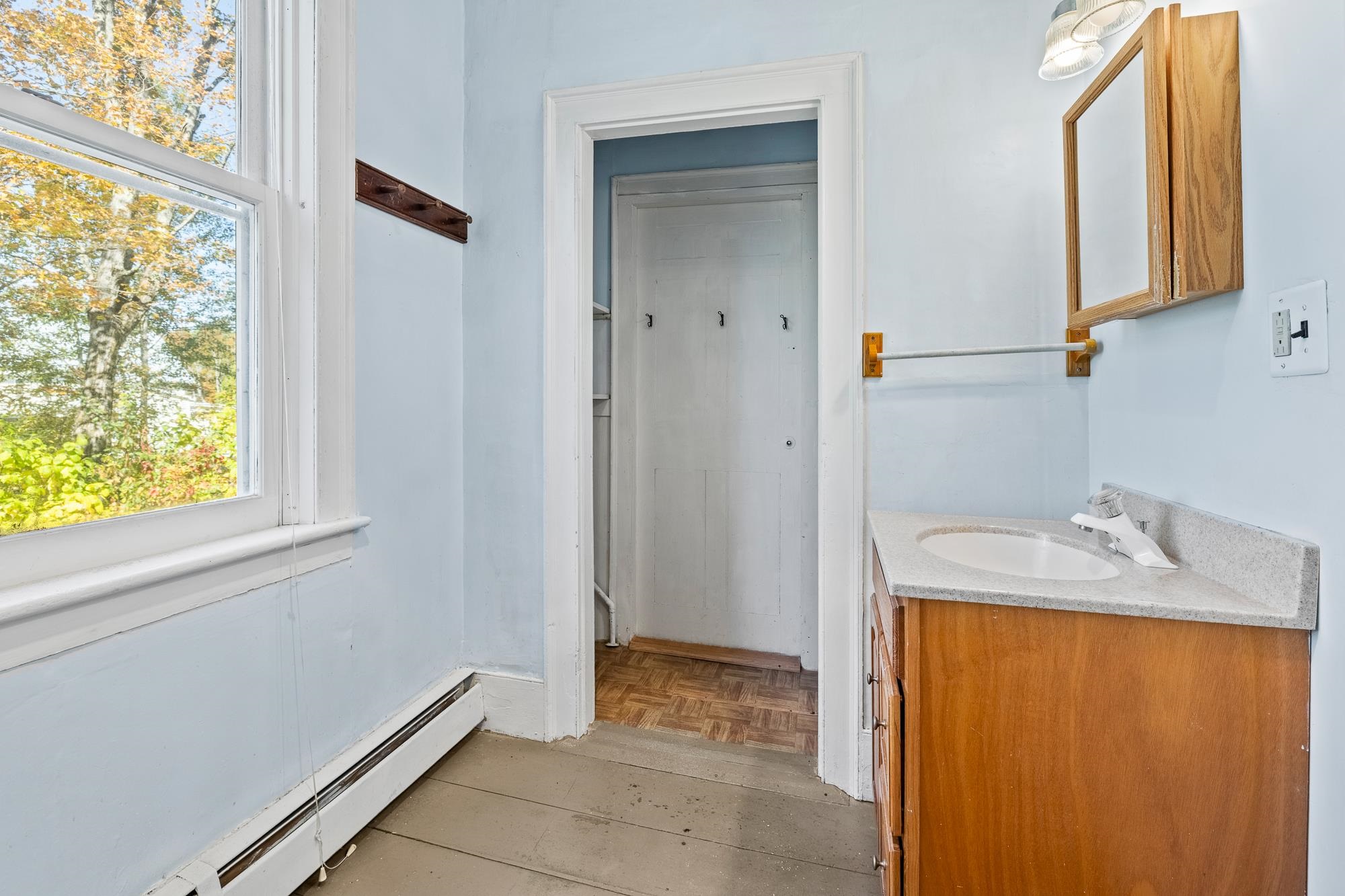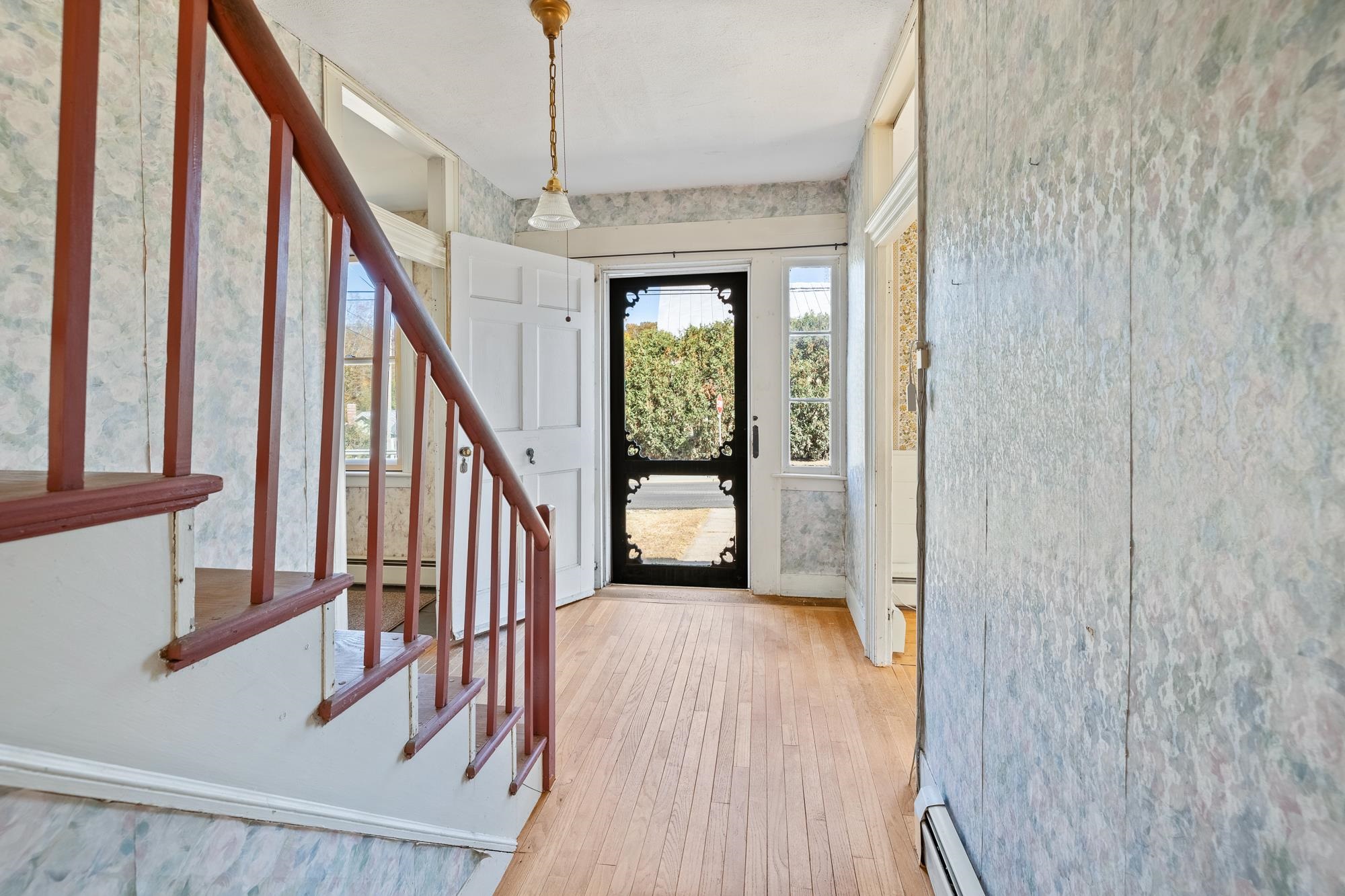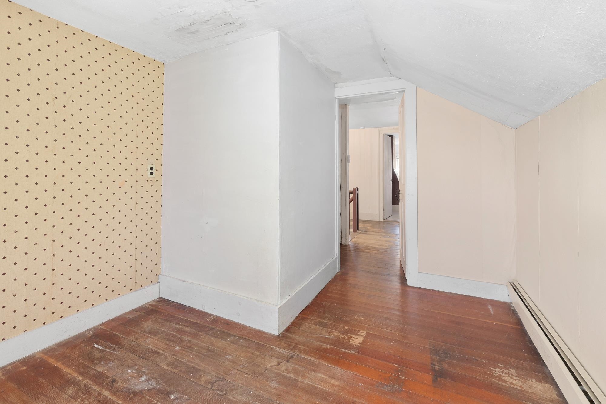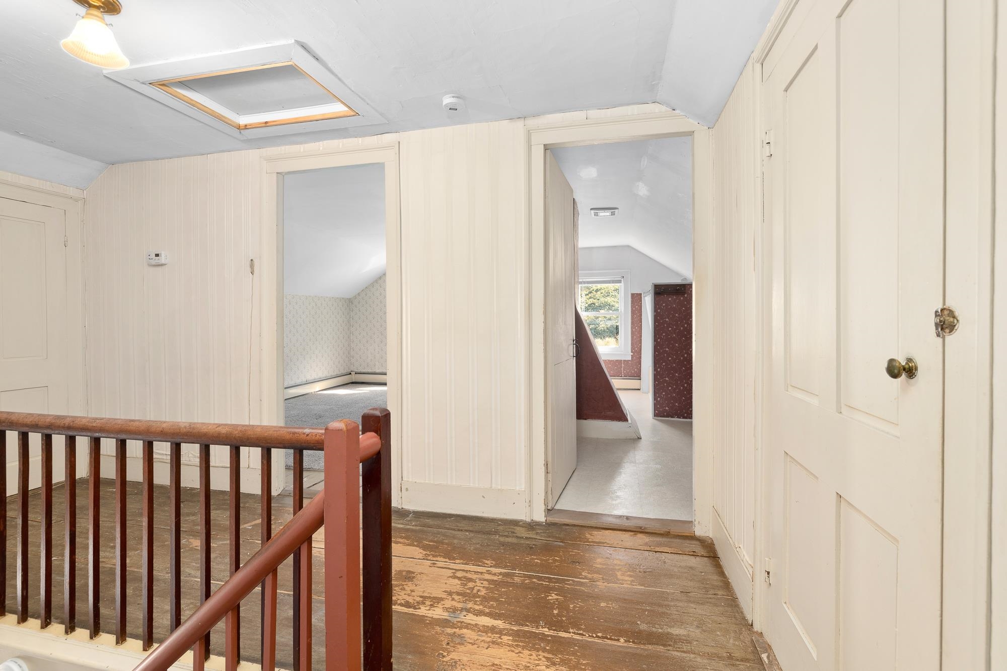 Vintage Vermont! Located in the lovely South Strafford village, this classic 1800s cape style farmhouse is ready to be brought back to its original glory. First floor offers formal dining room and living room with fireplaces, large eat-in kitchen, 3/4 bathroom with laundry and a seasonal bonus room. Upstairs has 2-3 bedroom options or a nice office/study and a full bathroom. Hardwood floors throughout, amazing natural light, SO much charm, detached garage, barn/workshop space and a lovely flat yard. Located in the heart of the village - with Strafford General Store (formally Coburns'), The Newton School, Murray Recreation field and other amenities just steps away!