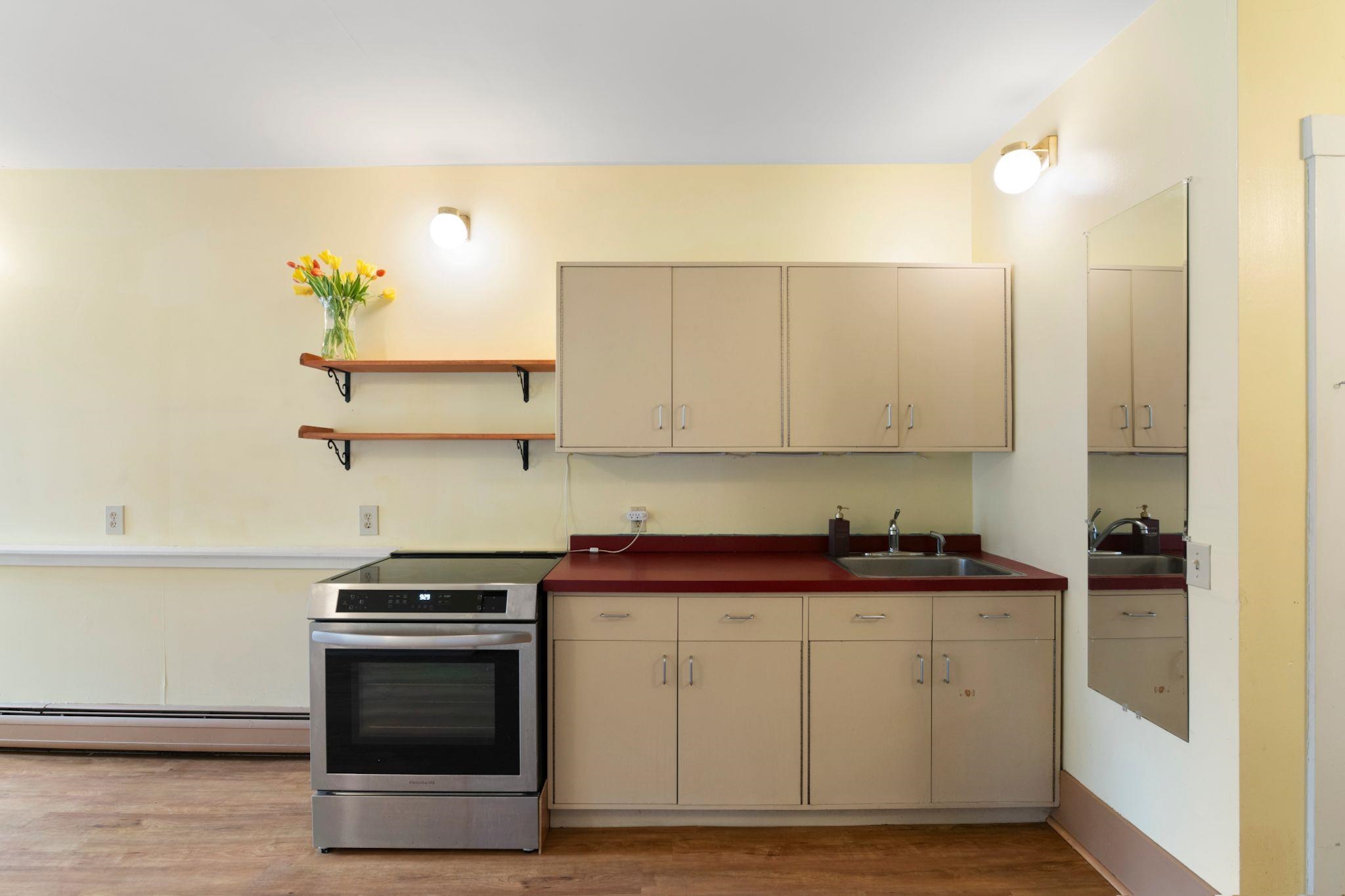 Welcome to the effortless existence of condominium life with the rare addition of uniqueness. How nice to own a home while splitting the expenses with two other condo owners. Park in your driveway and follow a pretty stone path to your first-floor sanctuary. This efficient 592 sq ft space offers an open kitchen, dining area with a washer and dryer, living room, one bedroom, and a full bath. Share the lovely gardens and enjoy your spacious covered porch. It is heated and air-conditioned with a highly efficient, state-of-the-art heat pump, ensuring comfort in every season. The location is ideal, offering close proximity to several access points for the retreat trails, including an extensive system of hiking trails, with the closest at the nearby Chestnut Reservoir. Very short walk to downtown. The home owners fee is $170.00/month. Showings begin Saturday, April 4th by appointment.