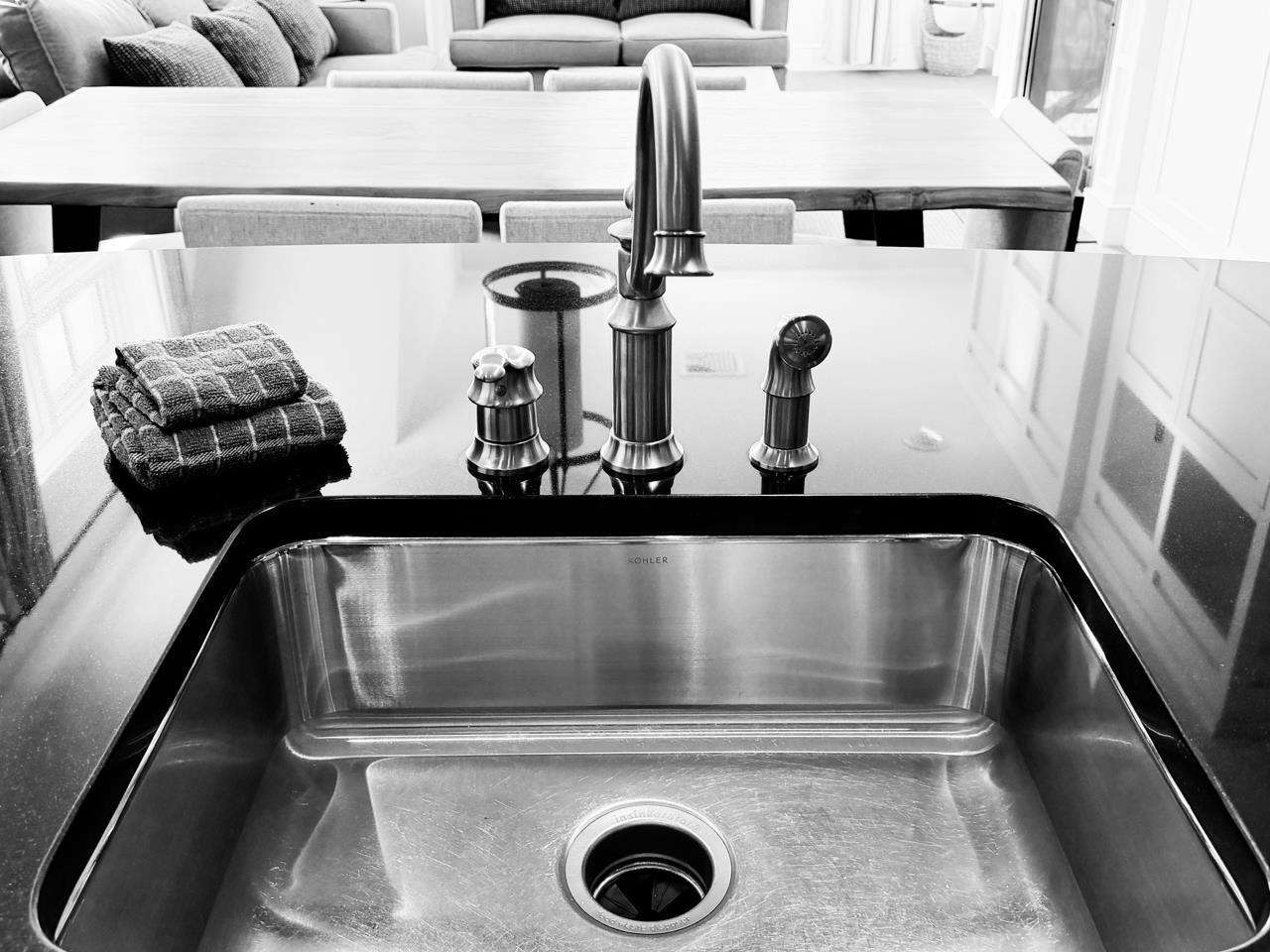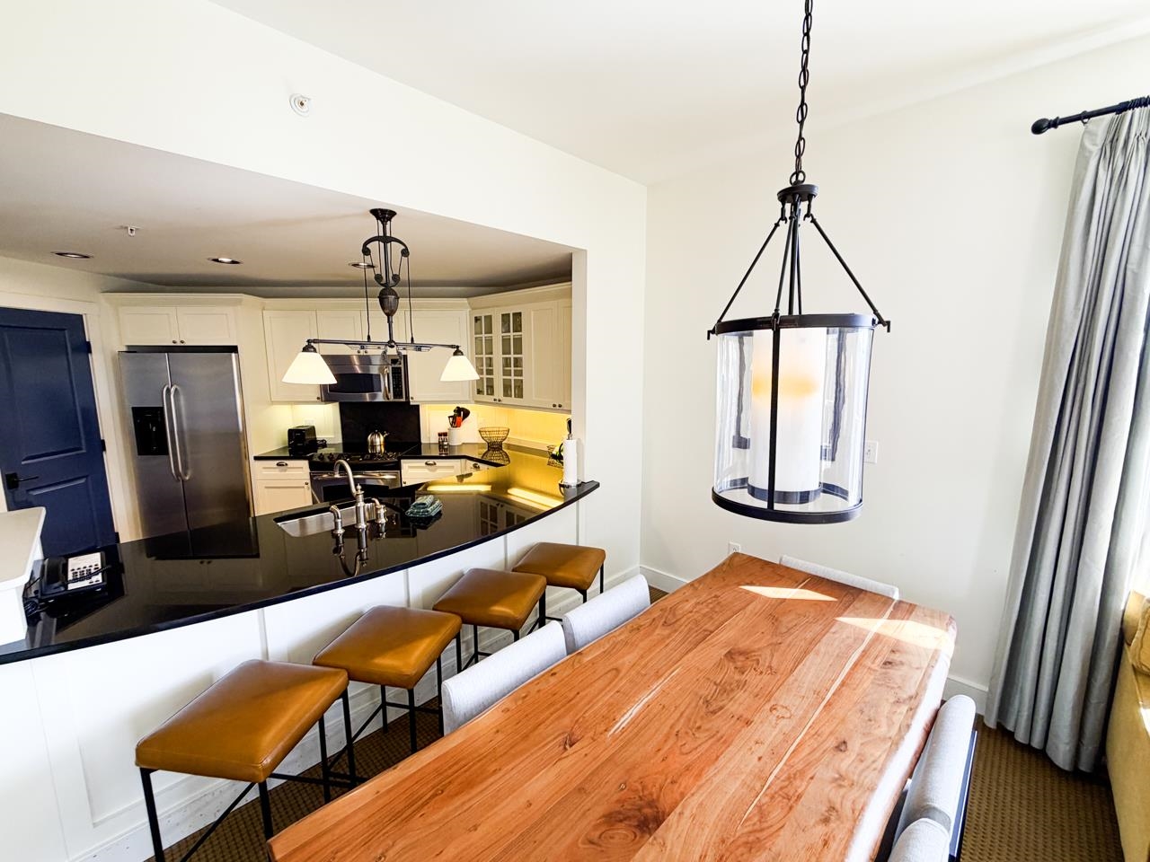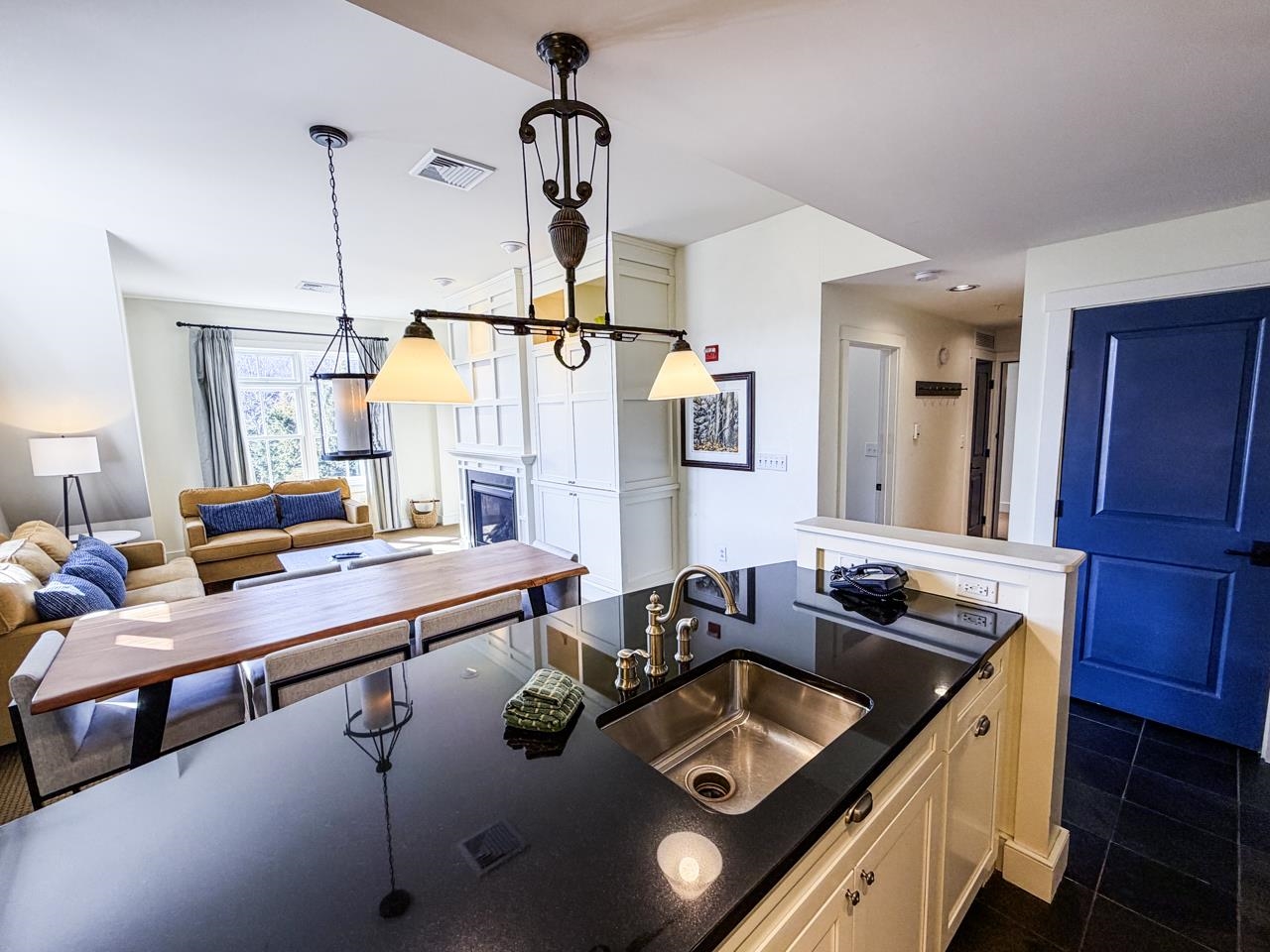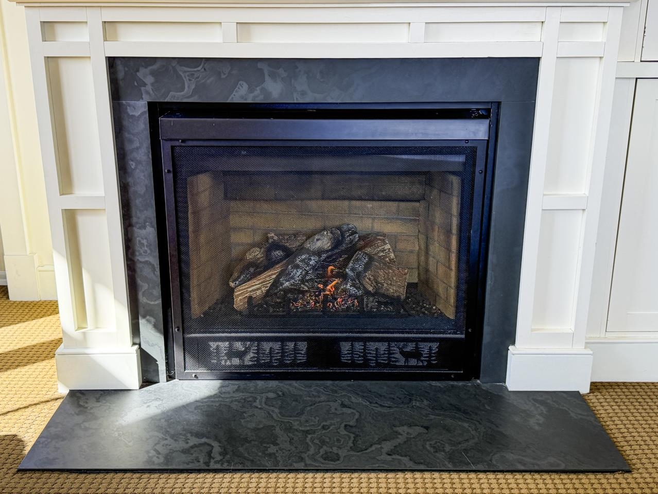 - Blinds, Dining Area, Draperies, Gas Fireplace, Furnished, Kitchen/Dining, Kitchen/Living, Primary BR w/ BA, Natural Light, Whirlpool Tub, Window Treatment