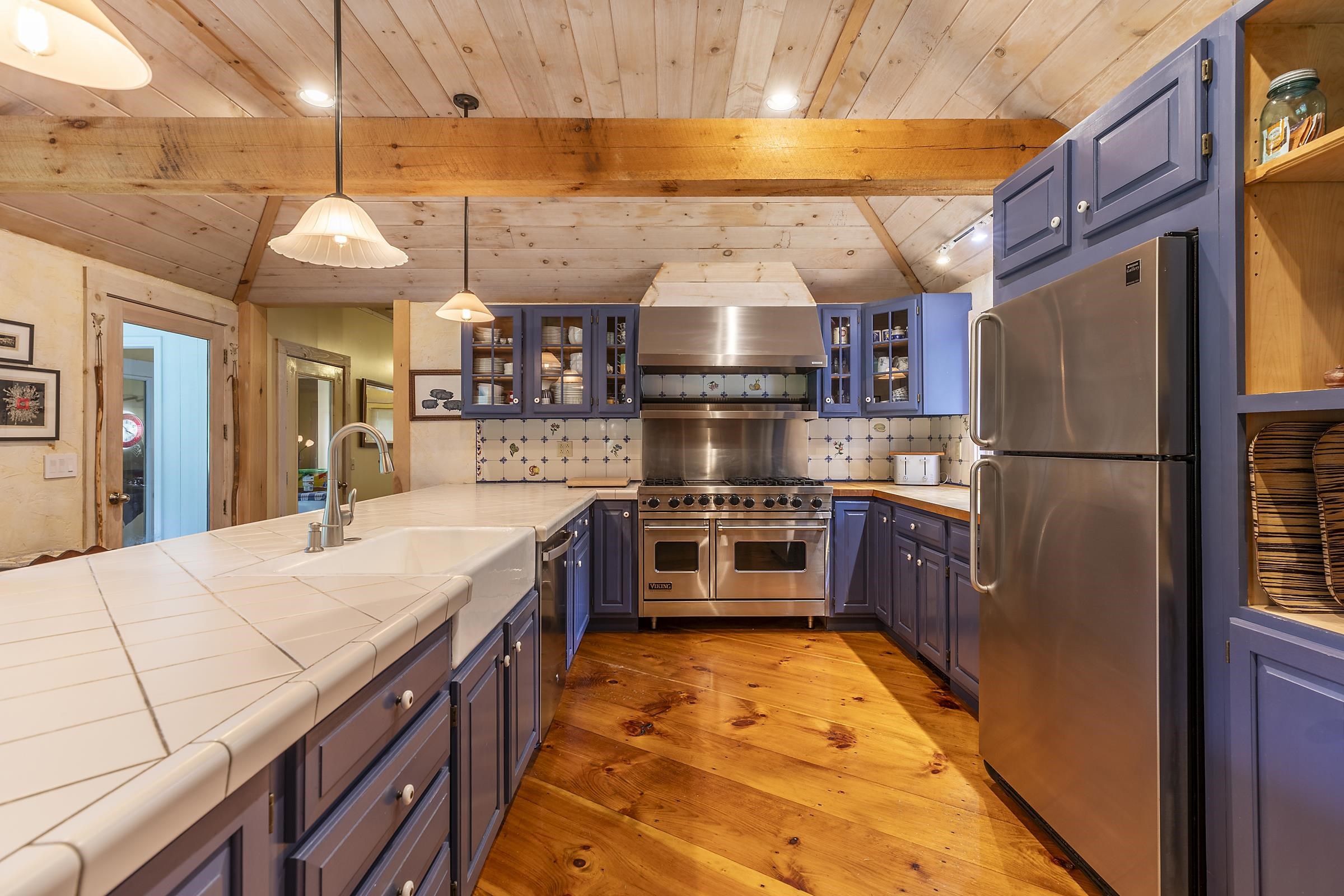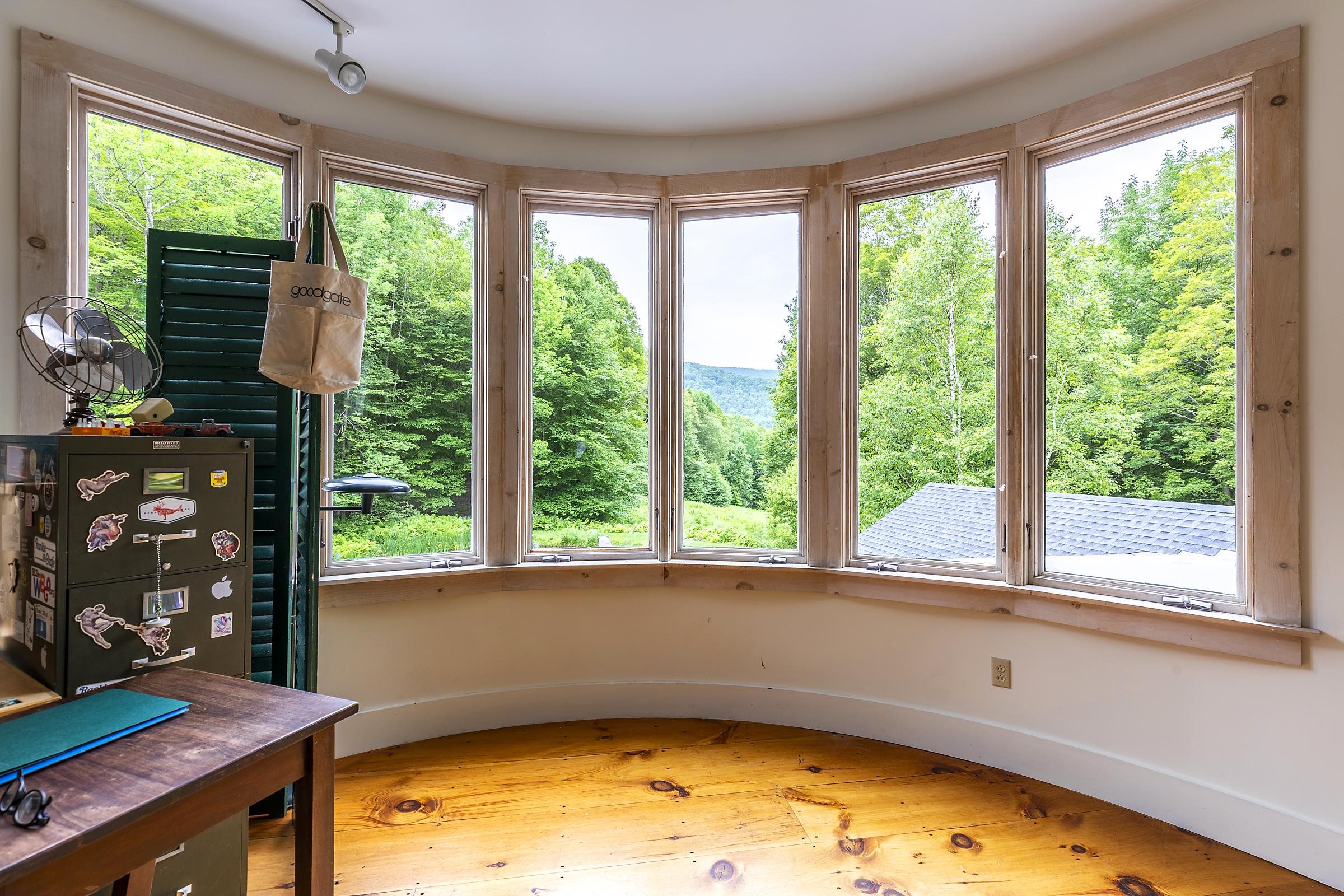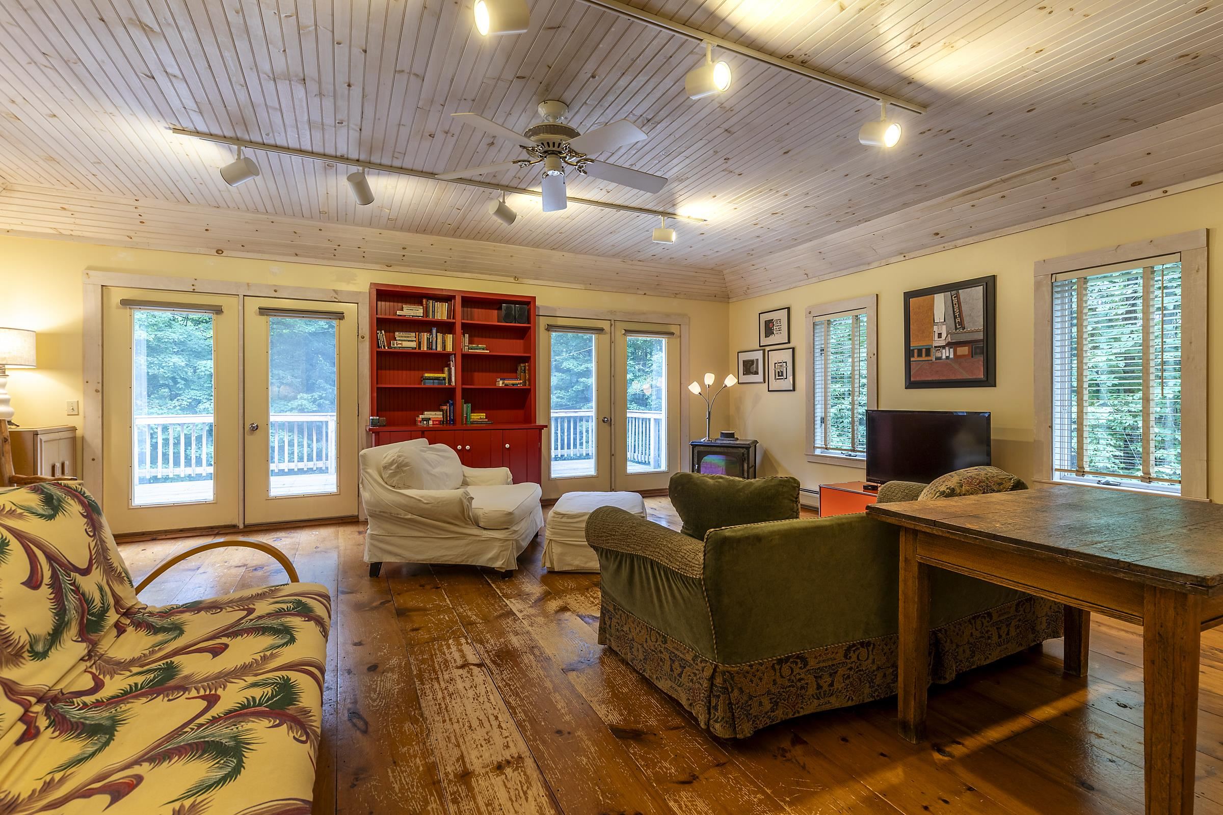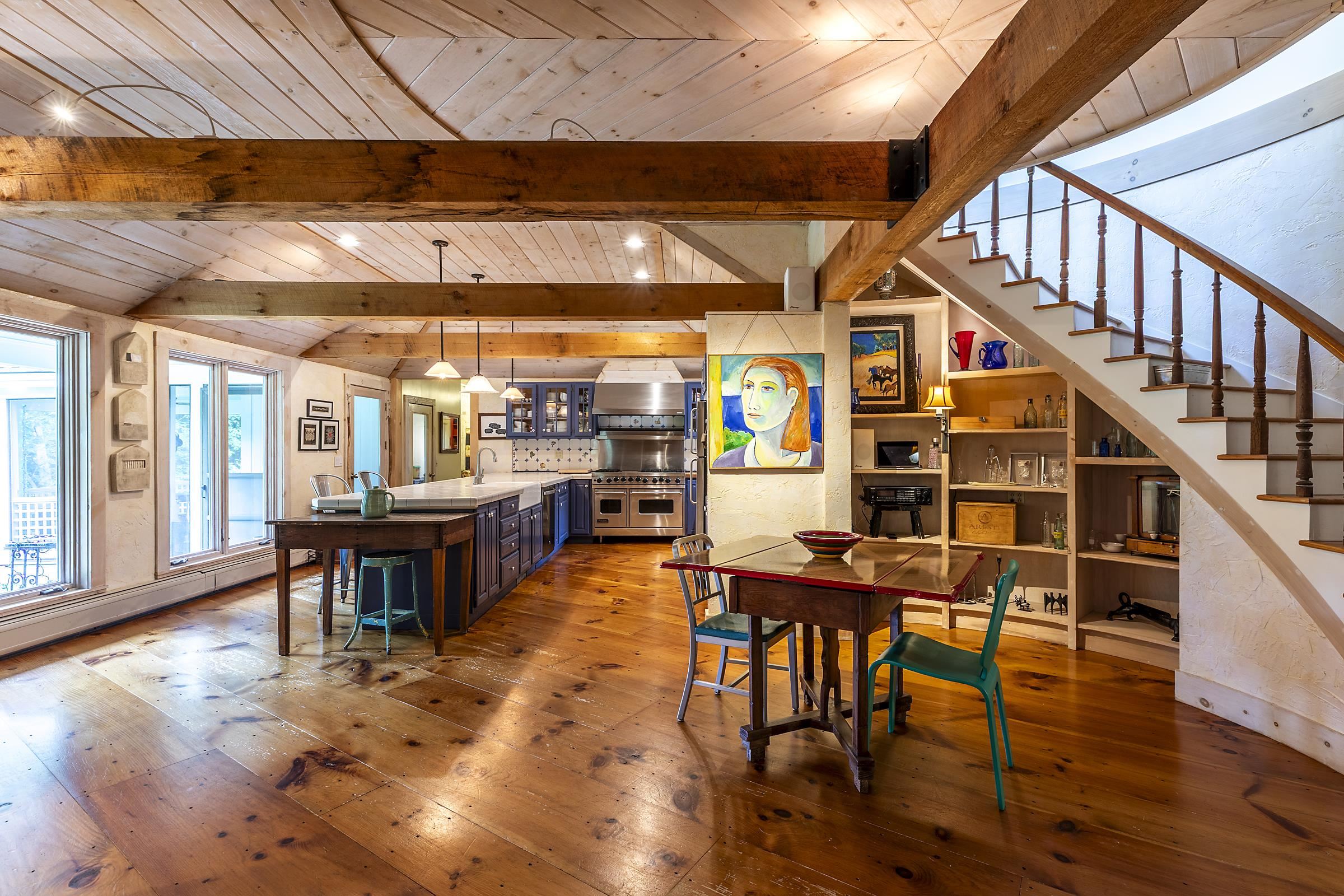 Take a drive up Nichols Hill Road to Fern Hill and head to the very top of the long bending driveway to find a serene, picturesque artist’s retreat 3 minutes from historic Dorset Village. Refreshingly private, quiet and secluded, drenched in natural light. With broad mountain vistas of Mother Myrick and Merck Forest, the top of the property backs gently into a beautiful private forest. The entire property has been carefully curated to encourage wildlife, a rewilding effort in place for 9 years, toxin and poison free. The large, pristine, spring fed swimming pond is the year round home to approximately 50+ healthy colorful Koi and overlooks a soft meadow bordered by old growth forest habitat, much to the delight of birds, butterflies, dragonflies, bees and abundant wildlife. The house is large, eclectic and rustic with a lodge feeling. A simple open concept design with lots of room and a farmhouse kitchen. Abundant windows throughout invite in and embrace the changing light and glistening view all day long. Distressed wide-plank floors, repurposed barn wood walls and beams, natural wood tray ceilings, curving wooden bookshelves and a curving staircase that leads to a half moon studio filled with natural light and sweeping views. Off the farmhouse kitchen find the very substantial screen porch and long sitting porch overlooking the gorgeous, vibrant, spring fed pond which reflects the changing light and soft scenery all day long. Natural beauty and peace, completely private and yet so close to everything.