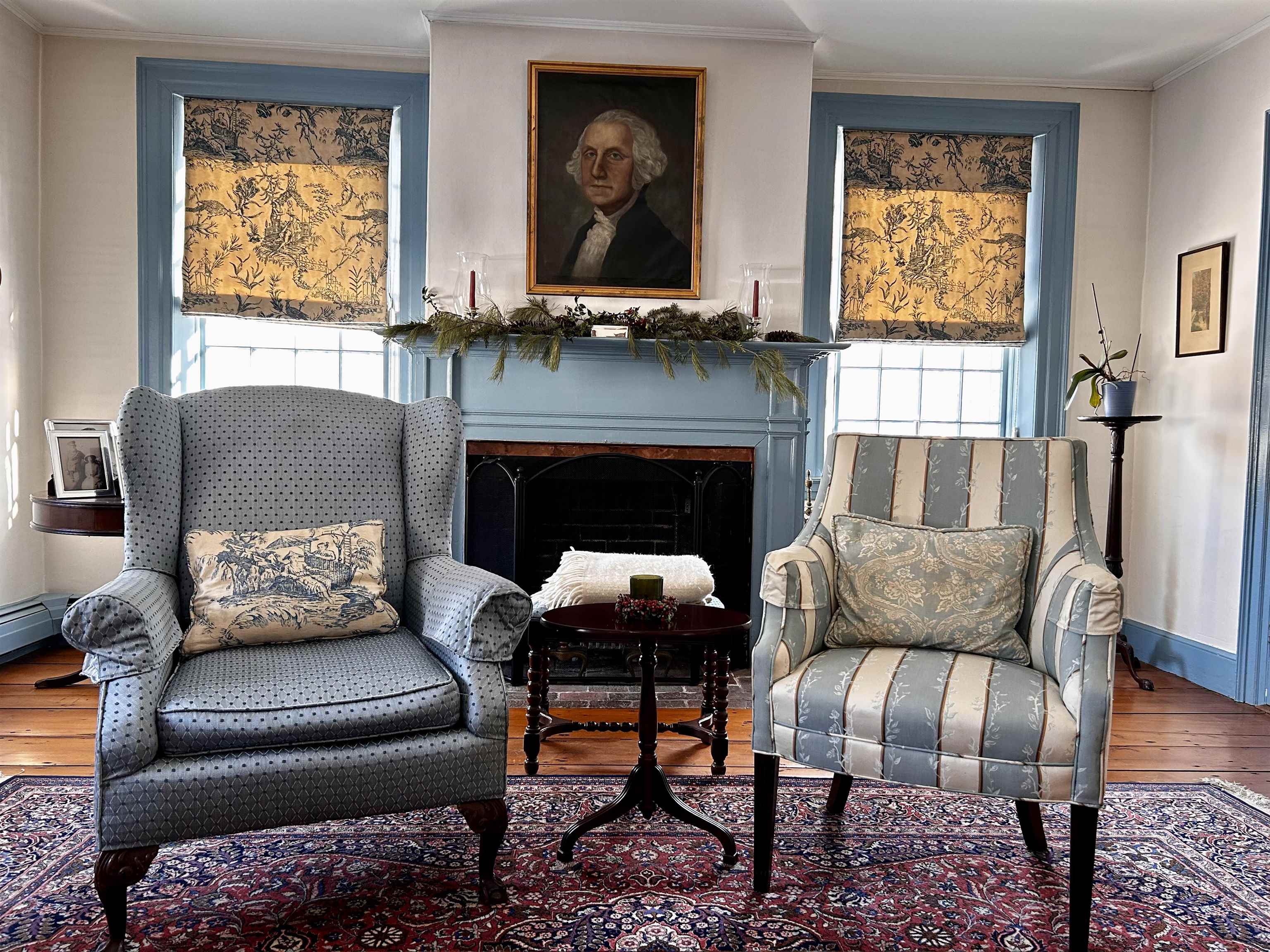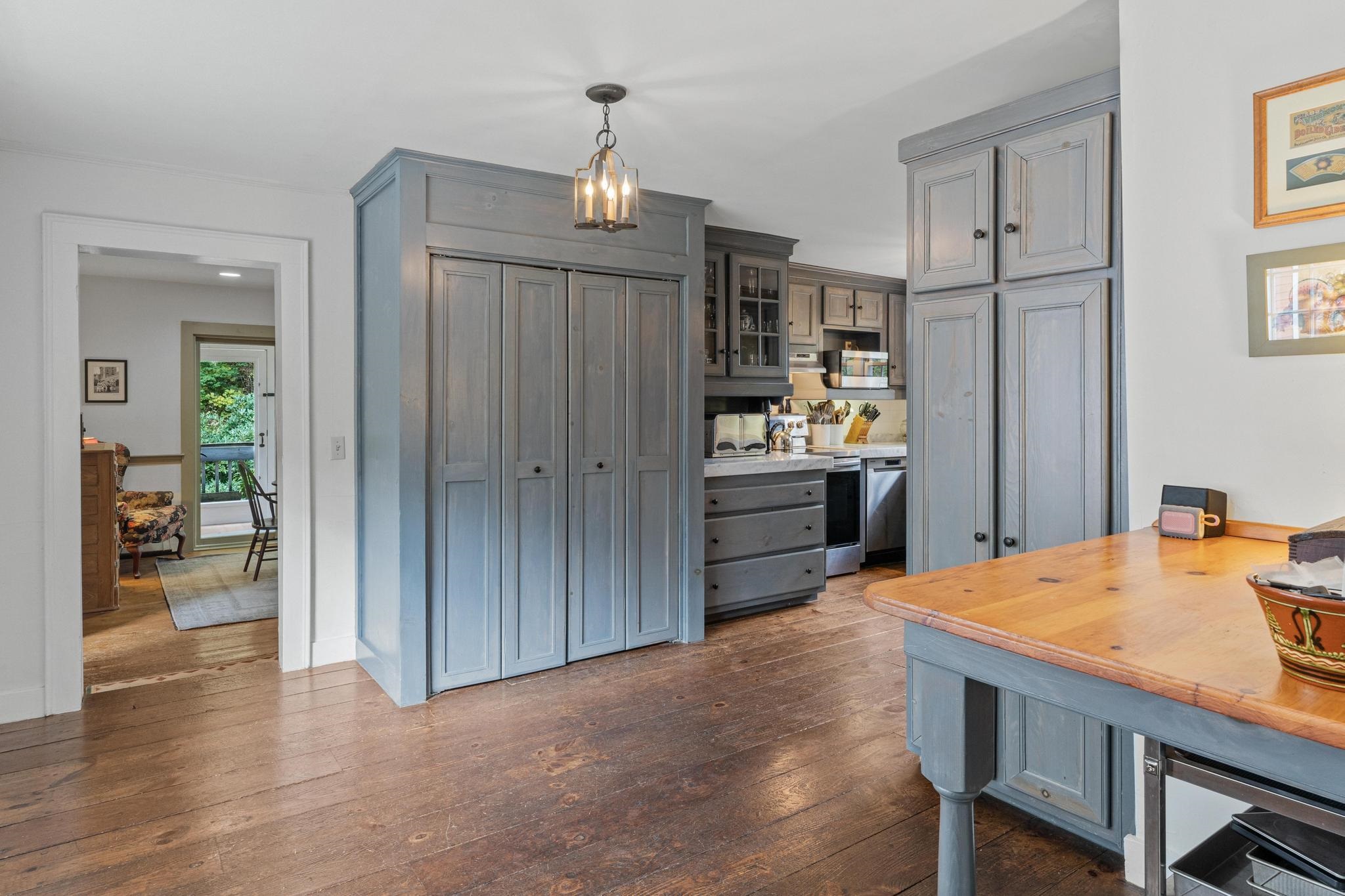 The Woolley House, located at 587 Route 121 East and built around 1818, is a rare and remarkably preserved 2.5 story brick residence in the Federal style. This home, originally constructed for early woolen mill owner John Woolley, features a side-hall layout, blind-arch entryway, and fanlight transom. Original details are beautifully preserved throughout, including four elegant Regency fireplaces, an original central cooking hearth with an iron crane and 2 concealed baking ovens, wide pine floorboards, classic 12-over-12 windows, and a charming hand-crank doorbell that evokes its historic past. A tasteful modern addition expands the living space with a custom marble kitchen, a formal dining room, and three private office suites with outdoor access ideal for remote work or creative pursuits. Upstairs, the home features four comfortable bedrooms, two updated bathrooms, a lounge and a finished loft with a cozy library retreat. Outside, the home is surrounded by mature perennial gardens and one of Windham County’s most admired curated Hosta collections, offering a peaceful oasis in every season. With its architectural significance, modern functionality, and ample space to live, work, and explore, the Woolley House is a truly timeless property in the heart of historic Grafton. The property is part of the Mechanicsville Historic District in Grafton, Vermont. A well-preserved 19th-century hamlet recognized for its architectural, community planning, and industrial significance. The district includes 10 contributing historic homes, all built before 1860, and this designation places the Woolley House on the National Register of Historic Places.