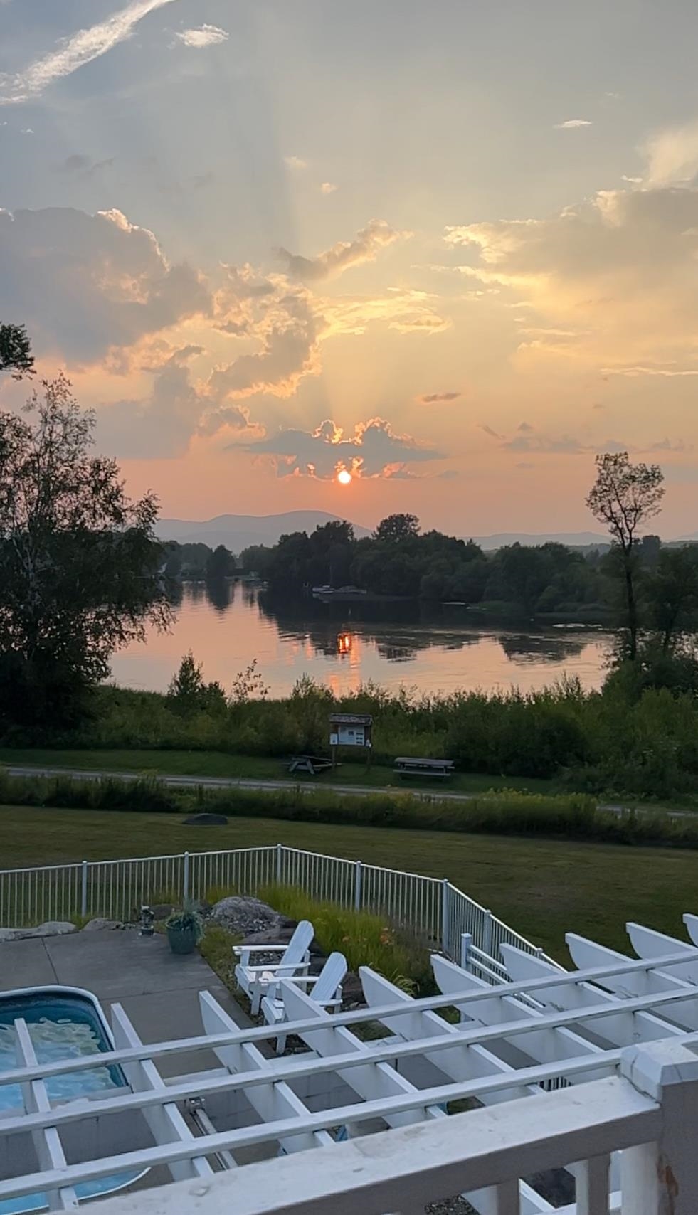 Set along the shores of Lake Memphremagog in Derby, this bright and thoughtfully designed home offers a rare combination of quality craftsmanship, recreation, and scenic beauty. Built in 2009, the property sits on 1.29 acres with direct access to the recreational path right from your backyard—connecting you to the Memphremagog Trails, Bluffside Farm, Eagle Point Wildlife Refuge, and Lake Memphremagog. Inside, the home features a warm and inviting layout with maple hardwood and travertine floors, solid wood doors, and detailed custom finishes throughout. The kitchen is well-equipped with cherry cabinetry, stainless appliances, and a generous island that flows seamlessly into the dining and living areas. Large glass doors capture sweeping lake and mountain views while filling the space with natural light. Designed with gathering in mind, the outdoor living area includes a spacious deck, pergola, and an in-ground pool with cabana—ideal for relaxing or entertaining. Enjoy shared lake access with 50 feet of frontage (leased with a neighboring property owner), complete with a dock. The main level also includes a welcoming foyer, formal dining, sitting room with gas fireplace, and a mudroom off the heated two-car garage. Upstairs, the primary suite offers a spa-like bath and private balcony positioned perfectly for sunset views. Additional bedrooms provide ample space for guests, including multiple en suite options. A finished third level creates a great retreat, office or lounge space. The full basement offers excellent potential for expansion, with partially finished walls and open space ideal for a gym, recreation room, or future theater. If you are looking for an easy move, furnishings are negotiable (see list of available items). Property is located just a short drive to Jay Peak Resort and near VAST and VASA Trails, and Newport Country Club so here is your opportunity to enjoy lake living with year-round recreation.