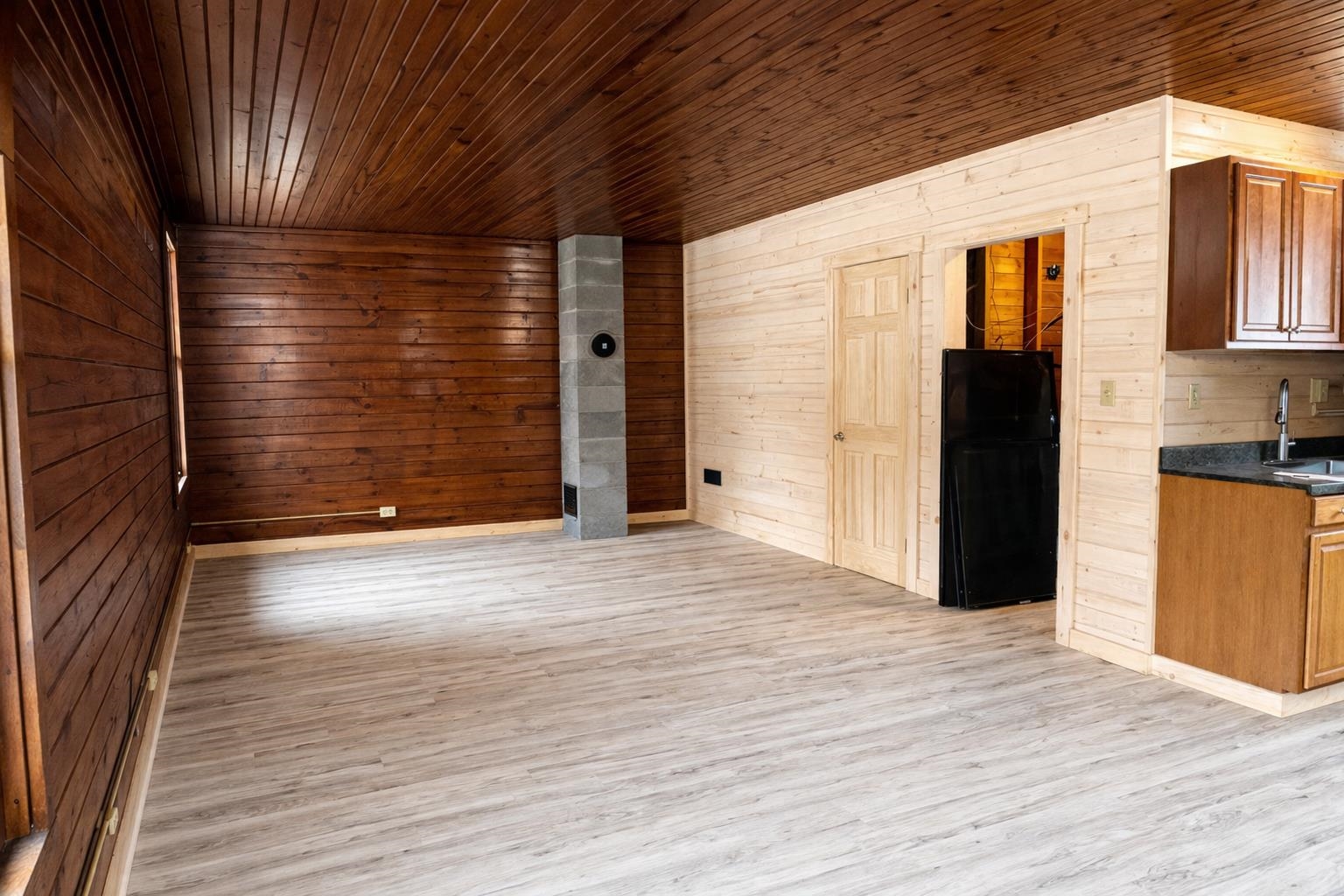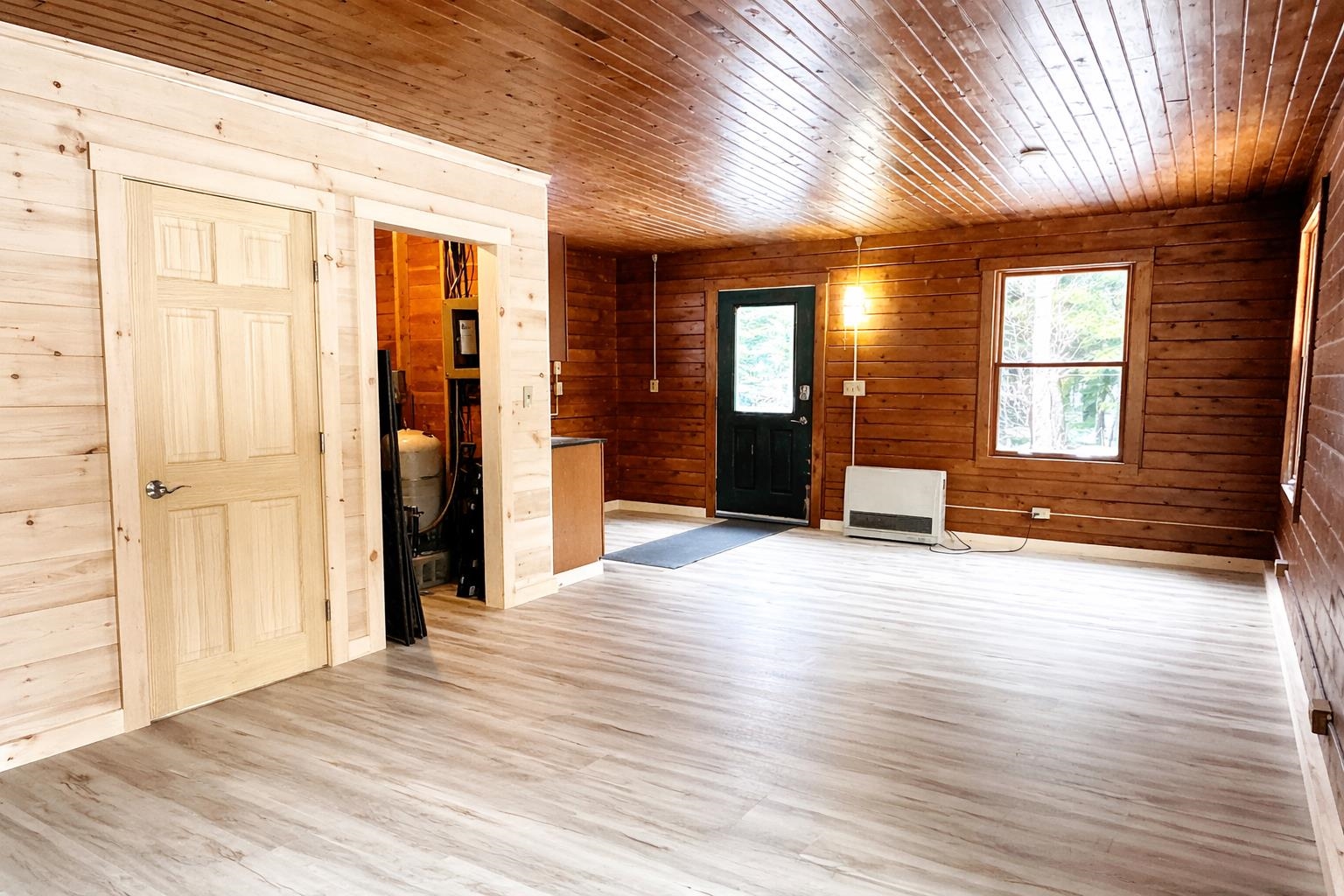 Welcome to this distinctive cabin nestled in Newark, Vermont, offering exceptional privacy and a tranquil natural setting. This single-level residence with no stairs features an open-concept layout that provides flexibility for a variety of configurations. The kitchen includes a sink and gas stove hookup, while a Rinnai heater supplies warmth, complemented by an additional hookup for a wood stove to accommodate alternative heating preferences. The home is serviced by 100-amp electrical, includes laundry hookups, and features an electric hot water heater. Rich natural finishes and thoughtfully installed shiplap enhance the interior, creating visual depth and character throughout. A full bathroom with a convenient step-in tub adds comfort and accessibility. Ideally positioned for those who appreciate outdoor recreation and scenic surroundings, the property is located near Newark Pond, expanding its year-round appeal. Whether pursuing an investment opportunity, a seasonal retreat with rental potential, or a serene primary residence, this offering presents versatility and enduring charm. Listing Agent is related to Seller.