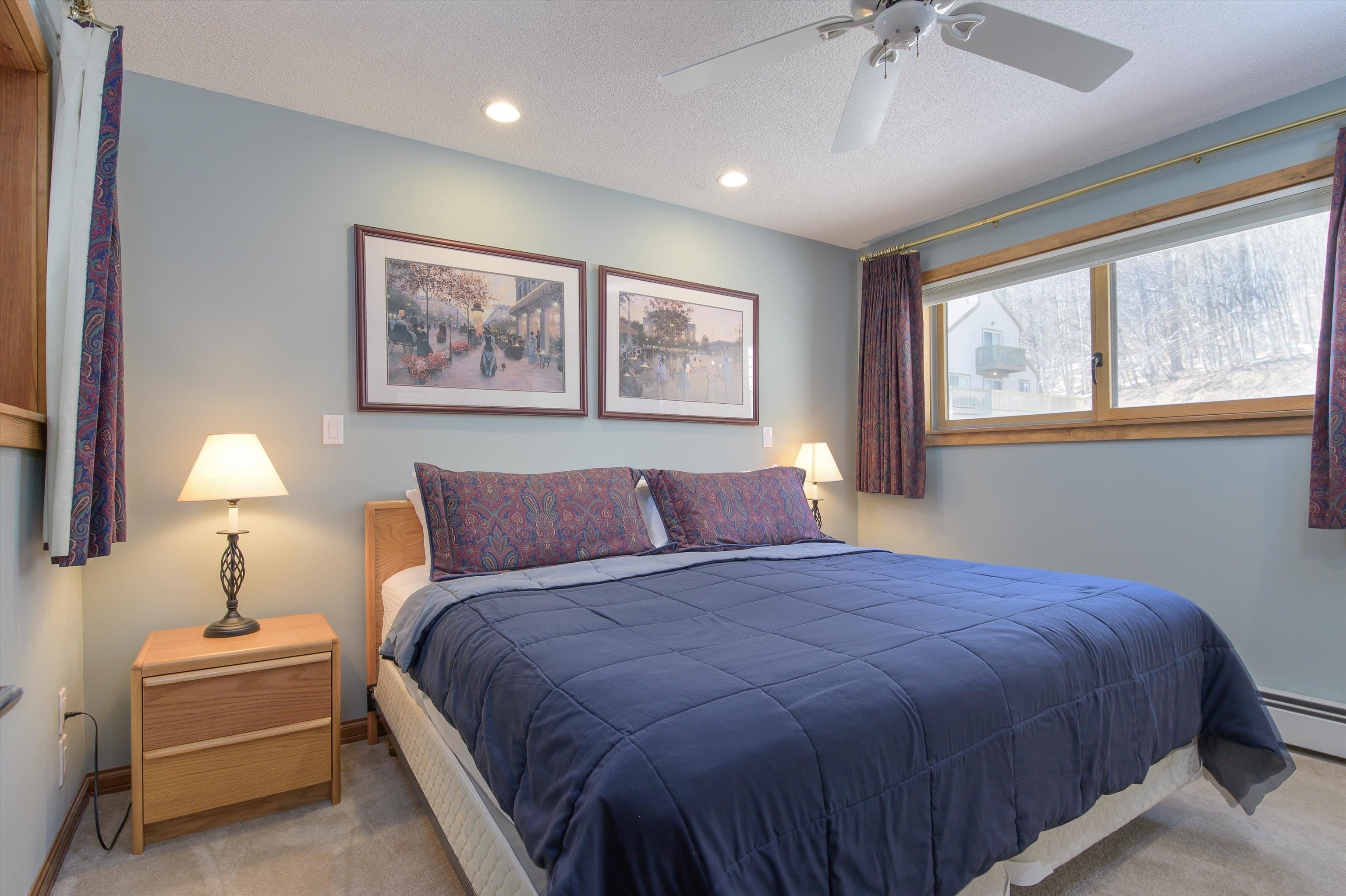Direct slopeside 3-bedroom plus family room townhome with numerous updates. Wonderful mountain location abuts Okemo State Forest and offers outstanding views. Expanded mudroom with built-ins leads out to private exterior ski closet and ski slopes. Kitchen updates include stainless steel appliances, tile floor and backsplash, and wood cabinetry. Open living room/dining room design with cathedral ceiling is centered by a woodburning fireplace and accesses a covered deck with substantial easterly views overlooking the village of Ludlow, the Black River Valley, and the mountains of New Hampshire. Primary suite includes updated skylit three-quarter bath with wood cabinetry, quartz countertop, and tile floor and backsplash. Two additional bedrooms and a family room occupy the ground level and include a full bath and a three-quarter bath. The three-quarter bath was added to the original floor plan and includes updated laundry with full size washer and dryer. Additional features include wood accent paneling, updated windows and sliders, and specialty lighting.