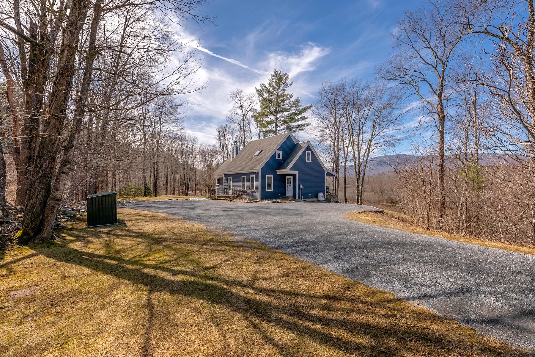 Come take a look at this charming Cape-style home set on nearly 4 acres, offering river frontage and beautiful mountain views. Bring your fishing pole or a canoe and head down to the river or relax and enjoy the sunshine on your own private beach as the water flows by. Inside, the home features an open-concept living and dining area, along with a first-floor primary suite for added convenience. Upstairs, you’ll find two additional bedrooms and a full bathroom. The finished basement provides a versatile multipurpose room and a dedicated office space—perfect for working from home or extra living area. Step outside to enjoy the covered deck during warm summer months, ideal for gathering with family and friends. The property also includes a small storage shed for your outdoor equipment. Sold furnished. All measurements are approximate.
